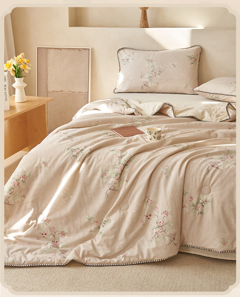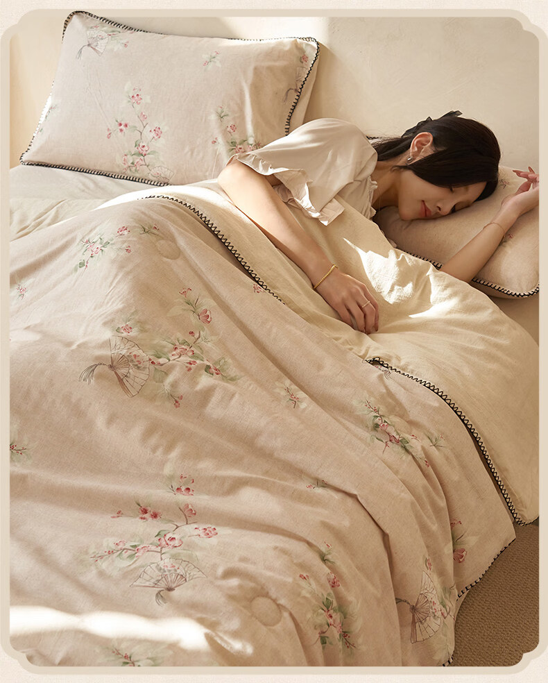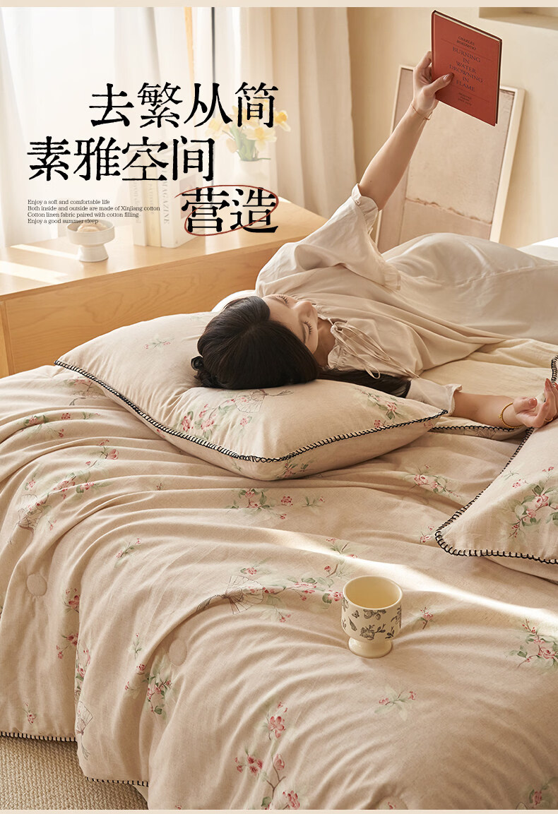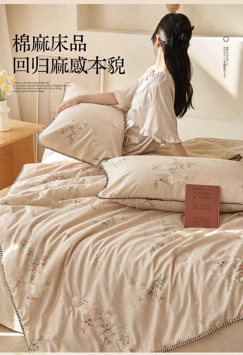 阿尔皮纳袋鼠棉麻棉花被子夏凉被纯棉全棉可机洗薄被芯宿舍空调被被褥四件套 花田【A类棉麻面料亲肤裸睡】 150x200cm【100%新疆棉花填充】