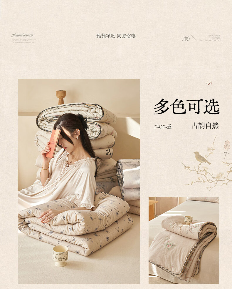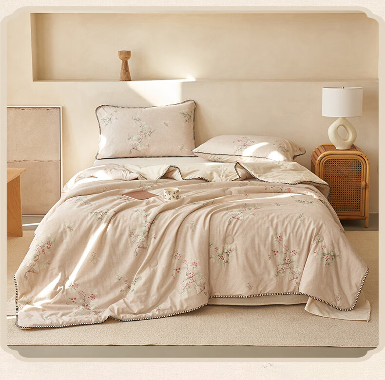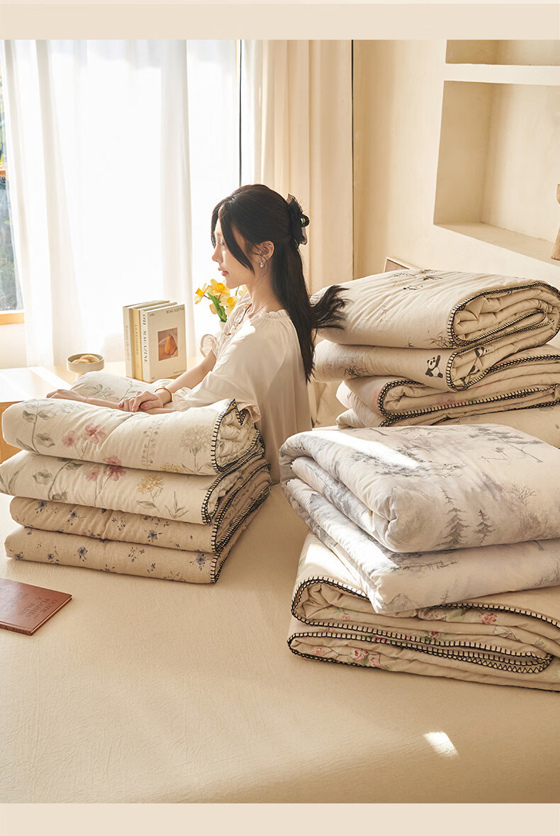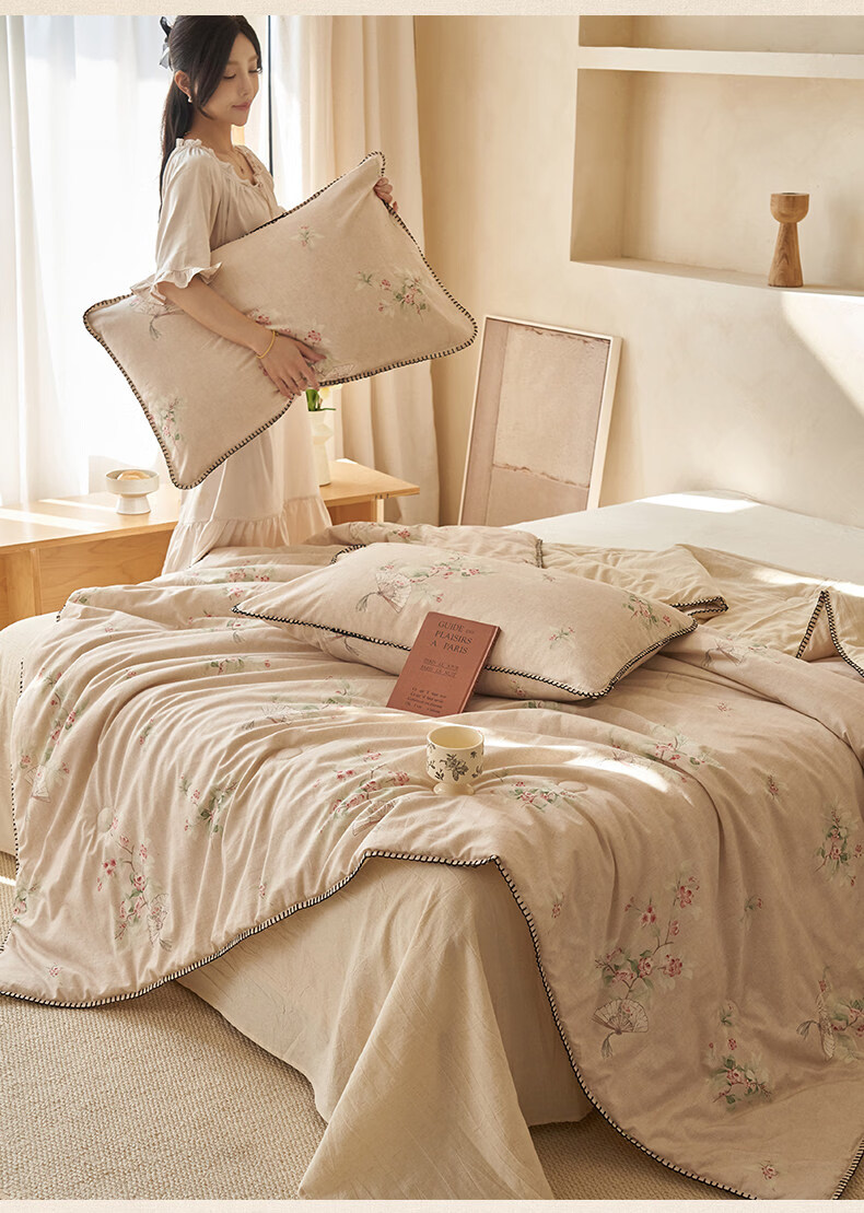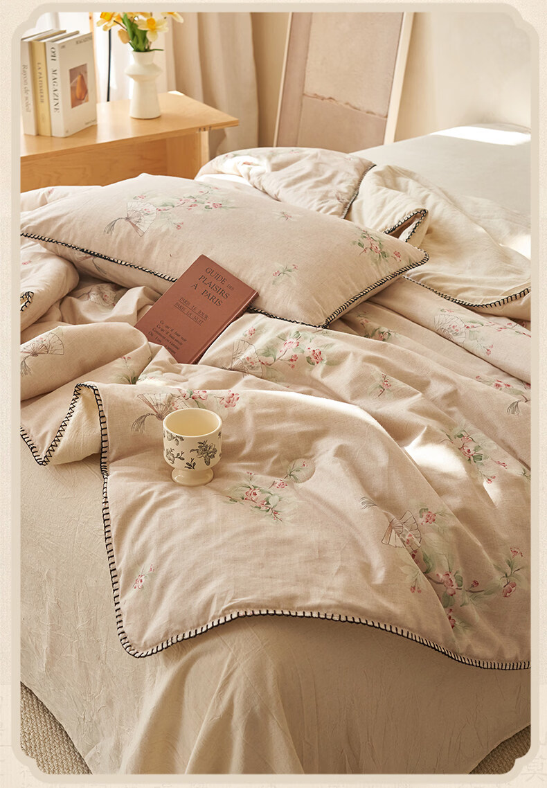 阿尔皮纳袋鼠棉麻棉花被子夏凉被纯棉全棉可机洗薄被芯宿舍空调被被褥四件套 花田【A类棉麻面料亲肤裸睡】 150x200cm【100%新疆棉花填充】