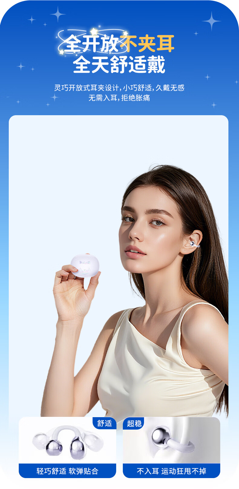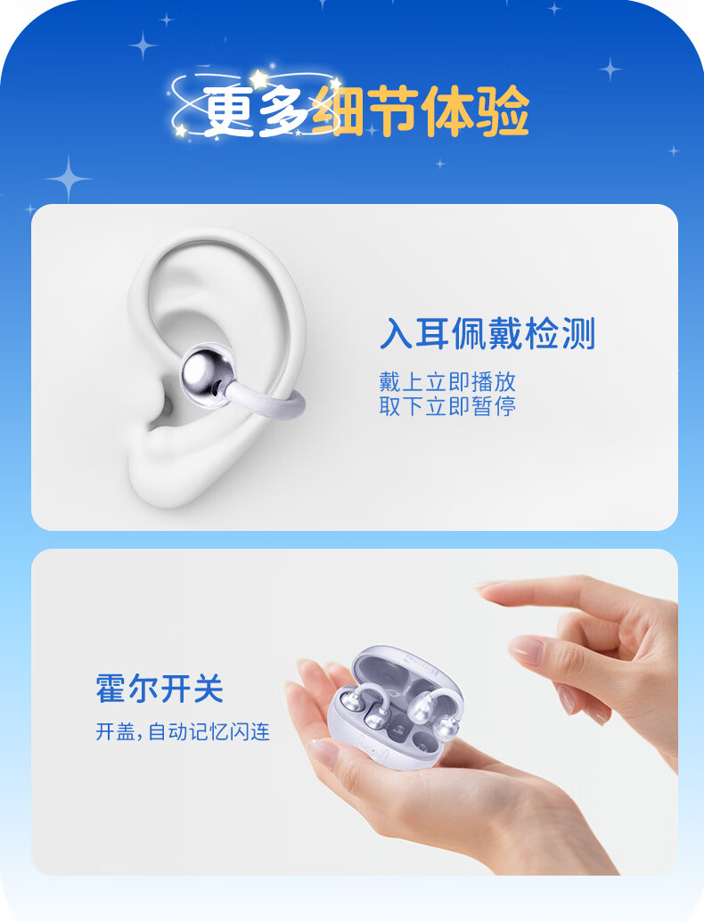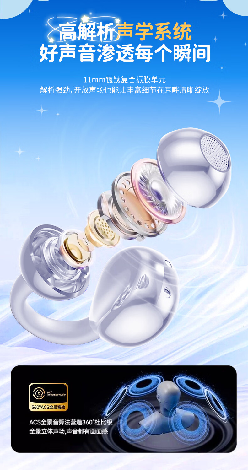 音贝奇新款ClipAir无线蓝牙耳机AI翻译耳夹式气骨传导概念开放式耳机不入耳运动挂耳式