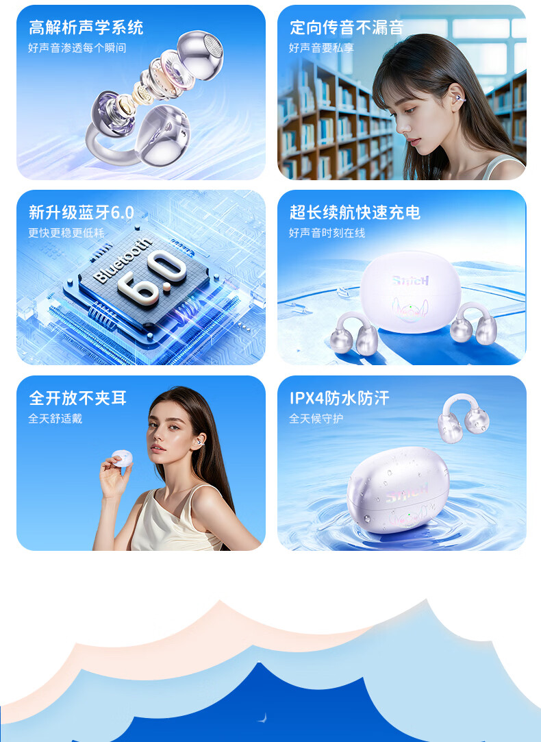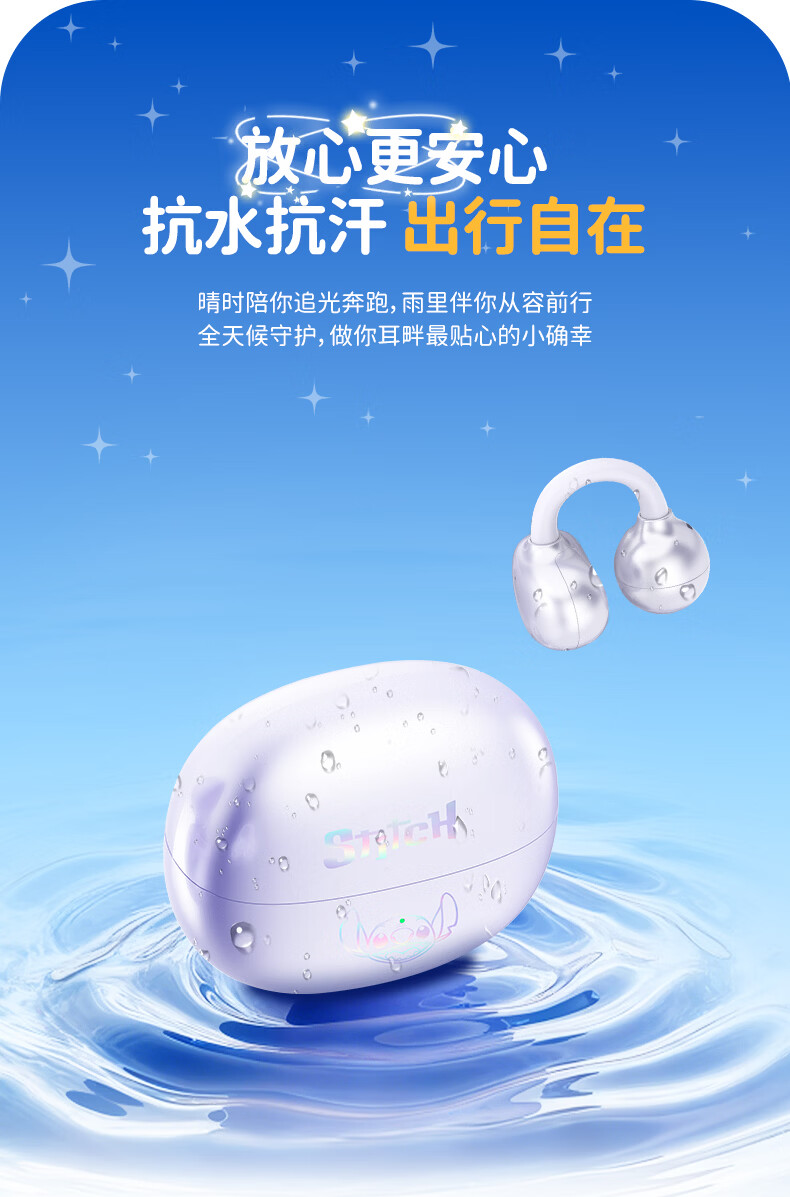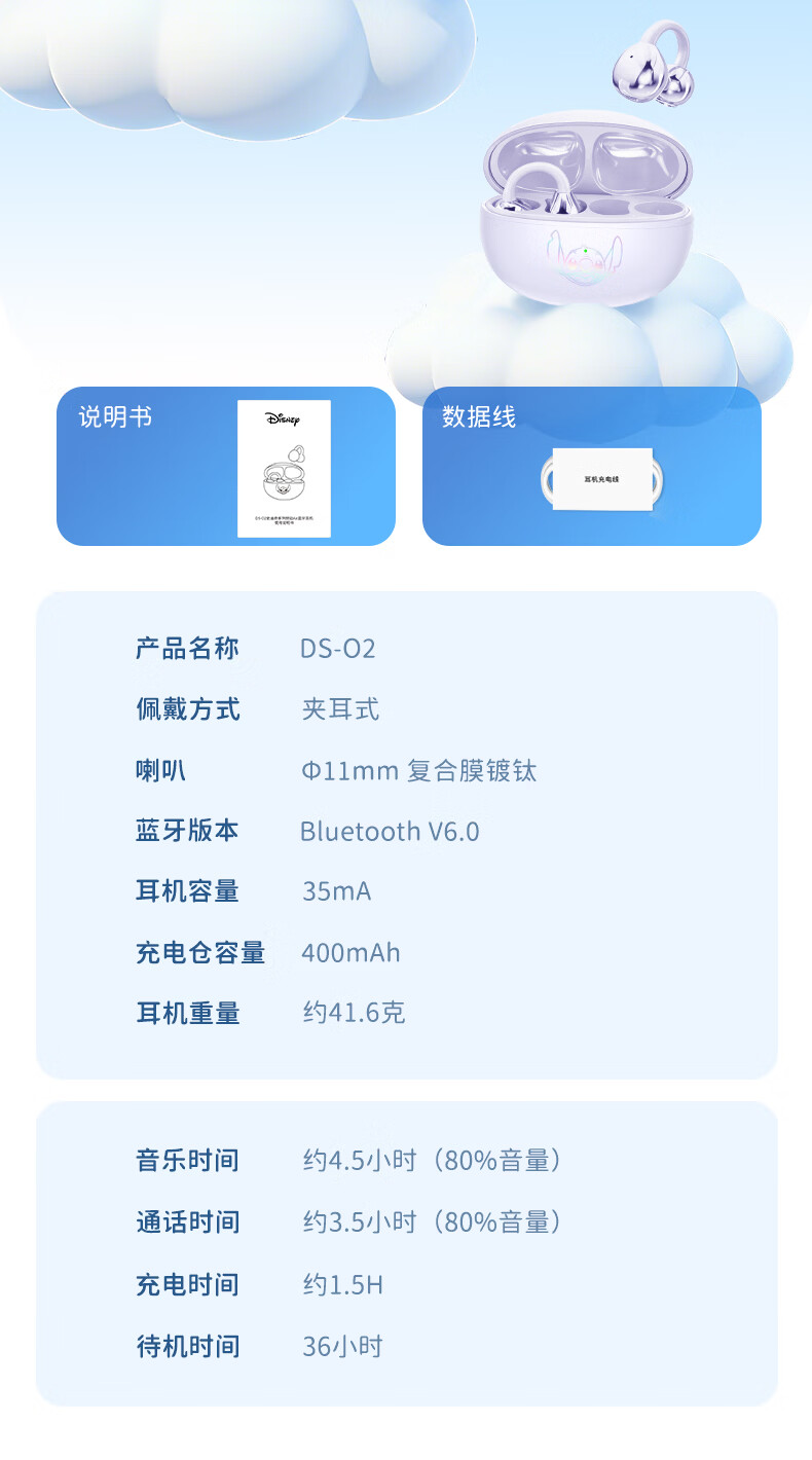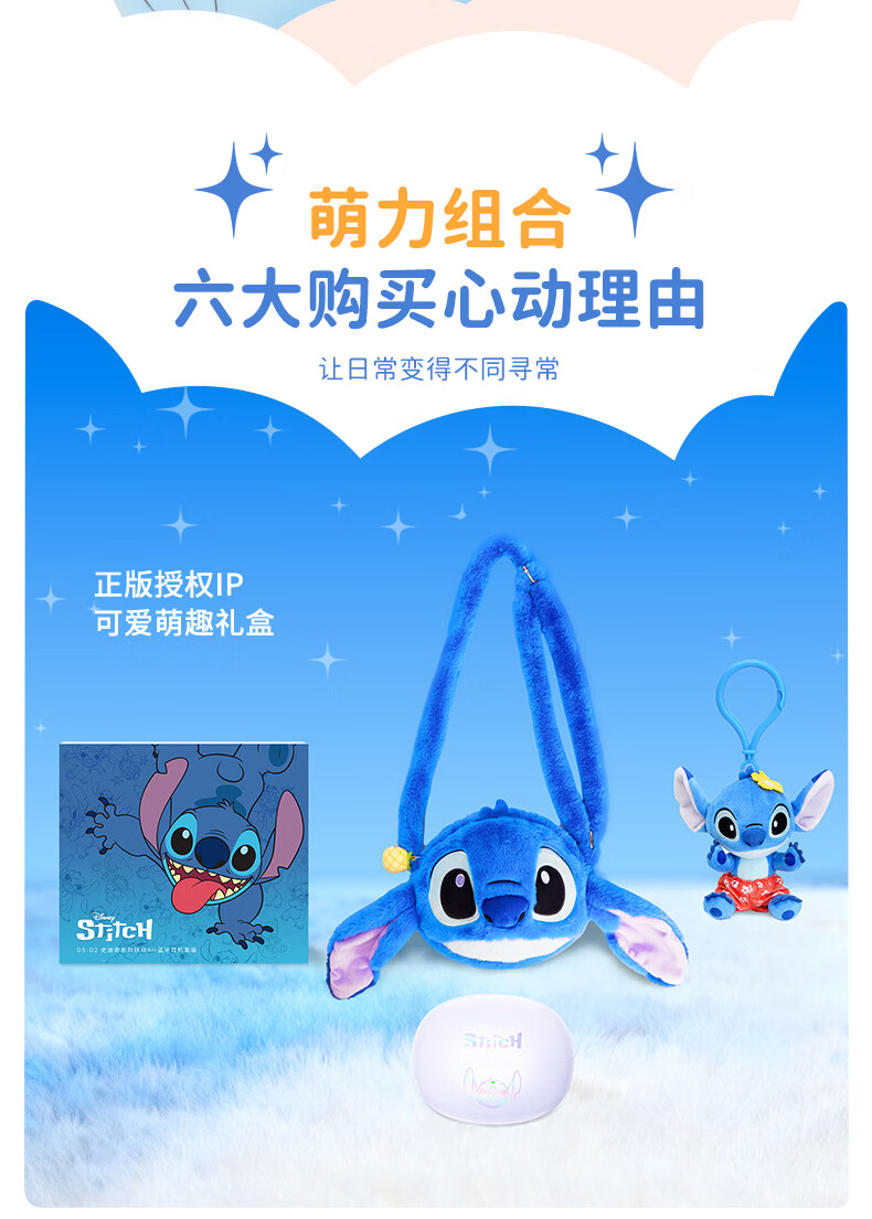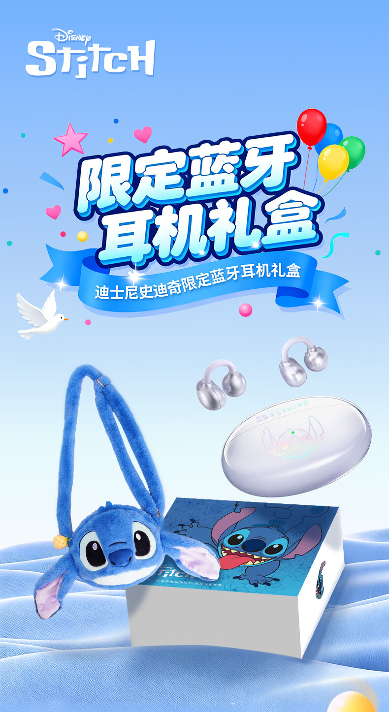 迪士尼(Disney)史迪奇无线蓝牙耳机限定礼盒 耳夹式耳机降噪超长续航超强音质可爱送男女生节日生日礼物 正版授权