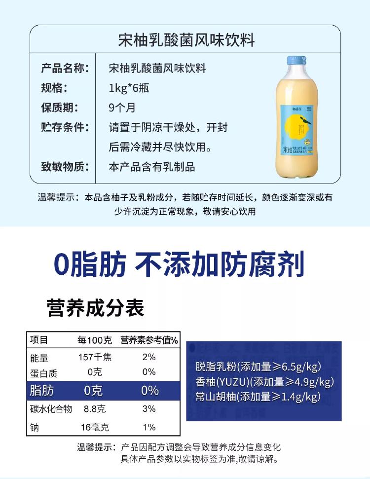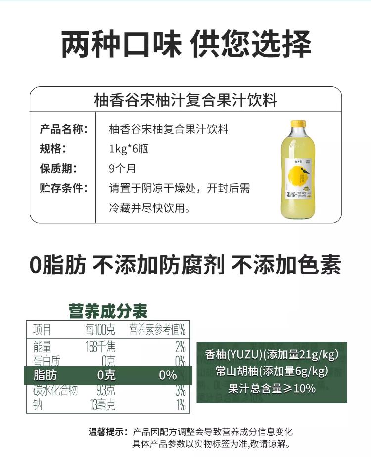 柚香谷宋柚汁双柚汁复合果汁饮料1kg*6瓶