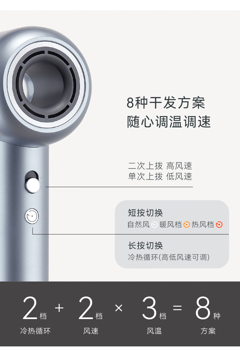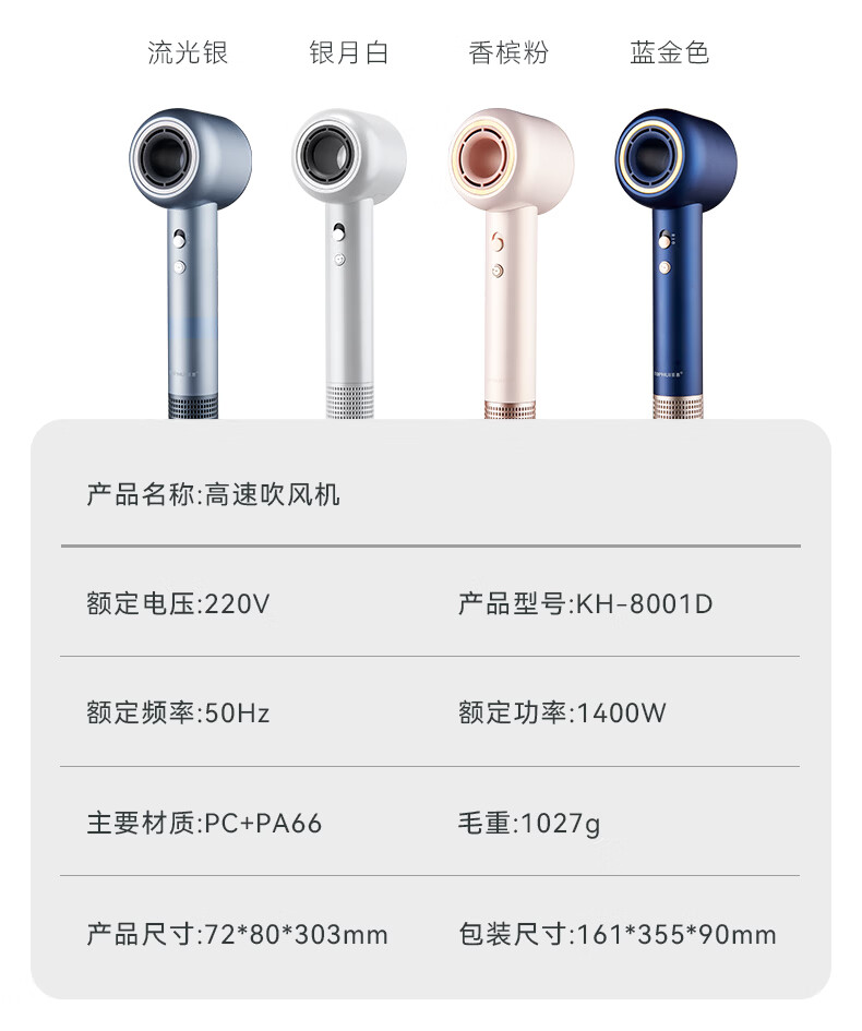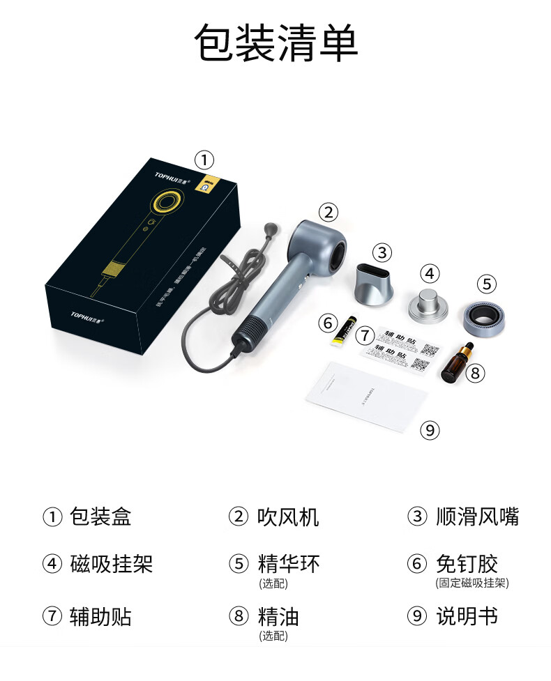 TOPHUI顶惠高速吹风机家用电吹风筒8亿负离子护发大功率风力冷热速干智能恒温养发护发礼盒装 新款 节日礼物 【高级款8001D-香槟粉】8亿负离子,11万转