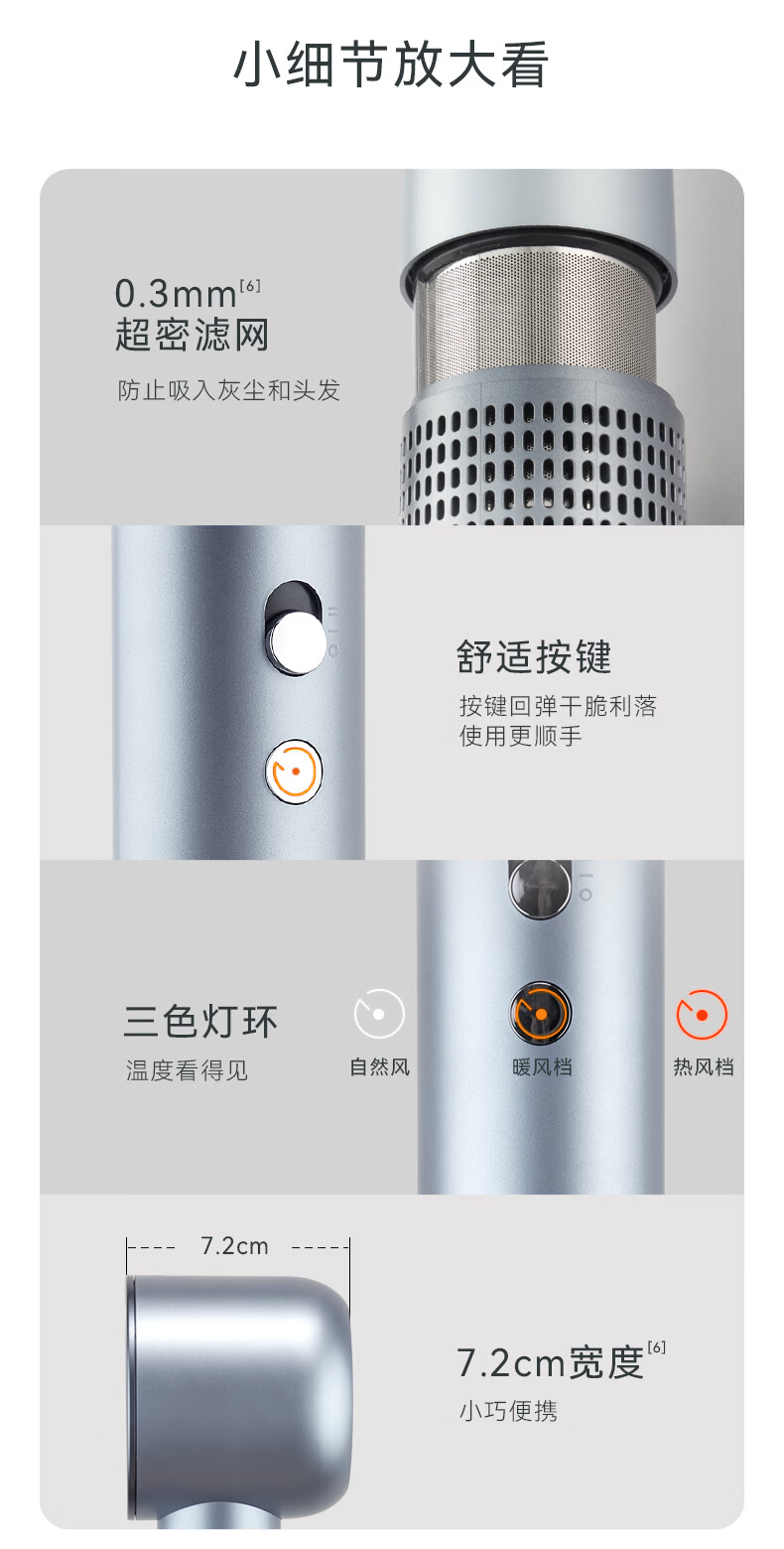 小米白系列吹风机静音发廊负离子护发家用大功率不伤发宿舍电吹风 渐变粉【1800W】大风力+双层隔热