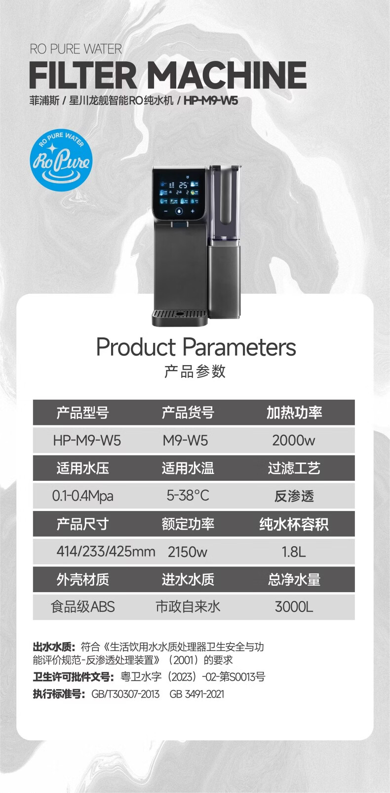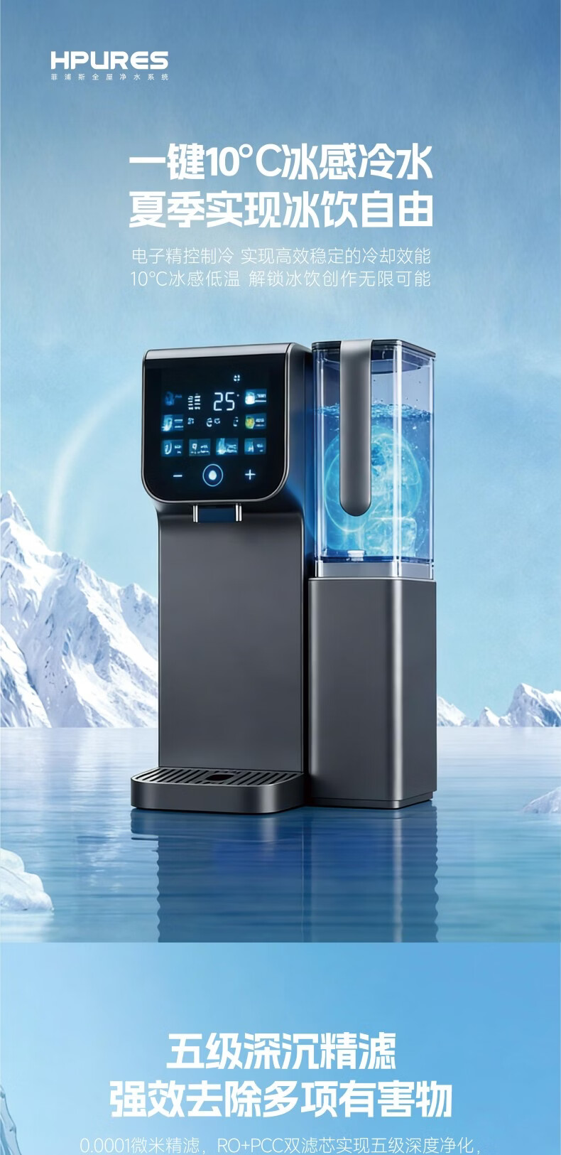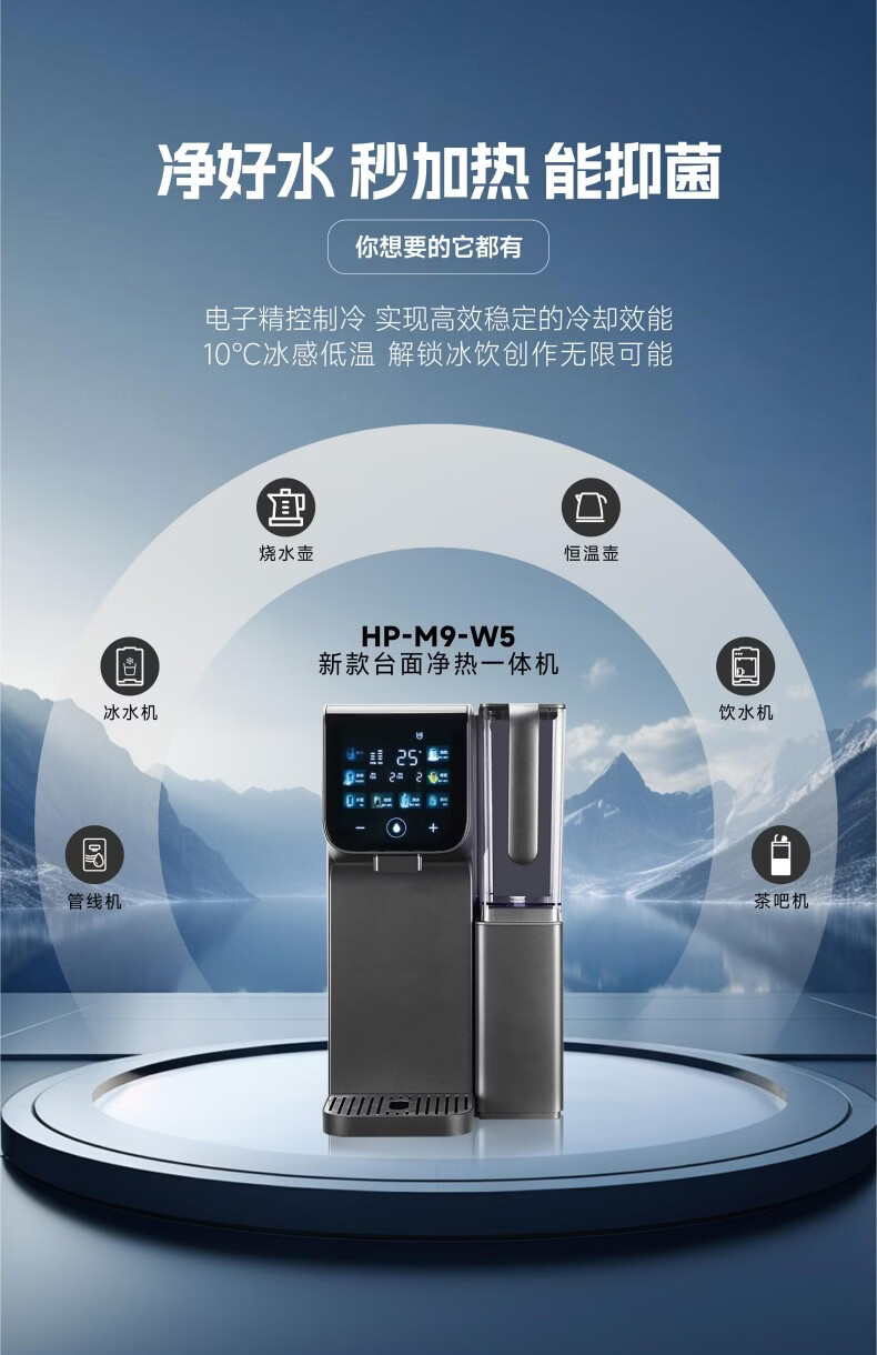 菲浦斯(HPURES)德国进口家用即热净饮一体机加热制冷反渗透台式免安装净水机家用净水器桌面直饮0阻垢母婴级用水 【W5尊享版】送微纳米气泡美容仪