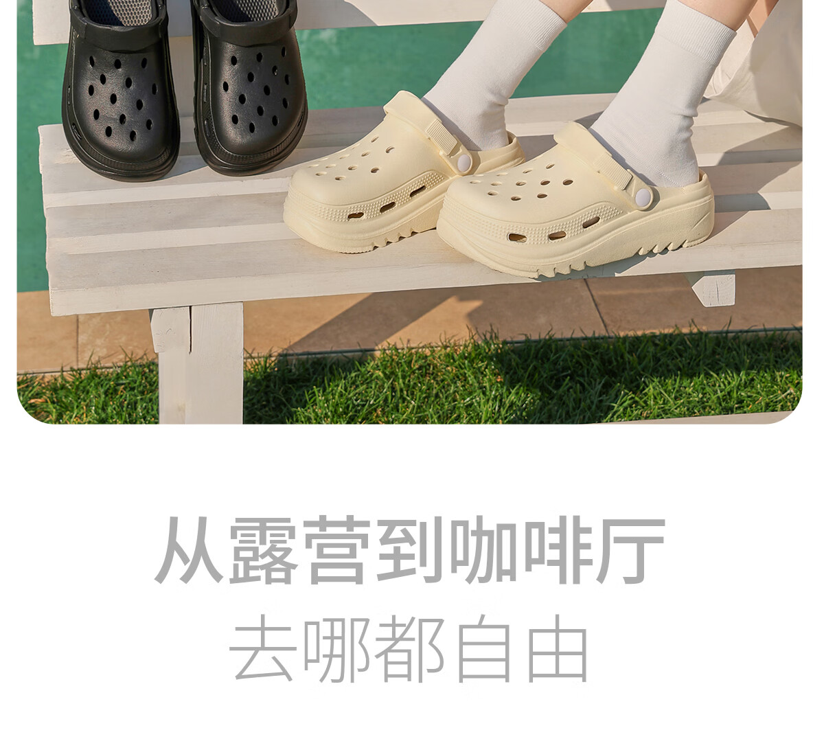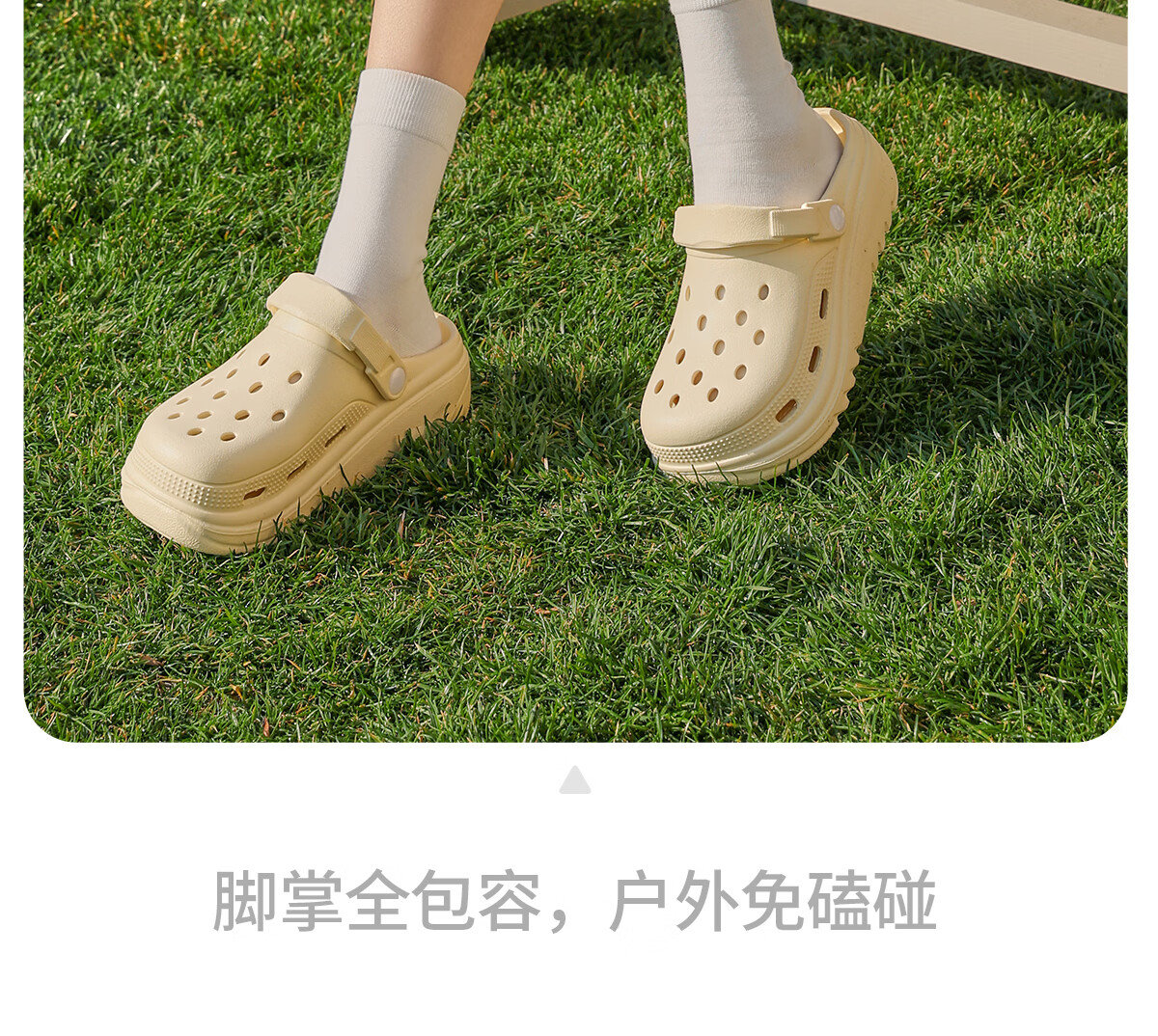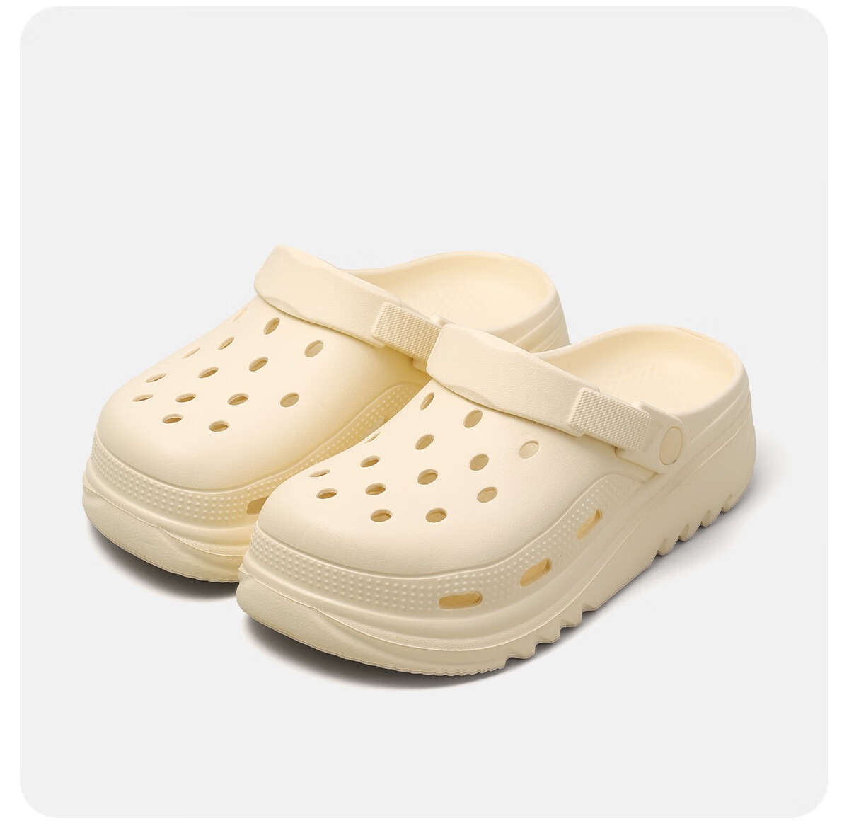 名创优品(MINISO)洞洞鞋女款夏季eva防滑防臭沙滩鞋增高凉拖鞋女户外穿情侣款 白色+趣味零食 40-41