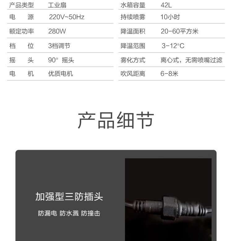华生(Wahson) 工业扇/落地扇/电风扇/大风量工厂车间喷雾电扇/商用降温加湿冷风扇 加湿降温商业推荐FL-65D(纯铜电机)
