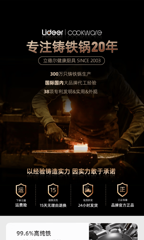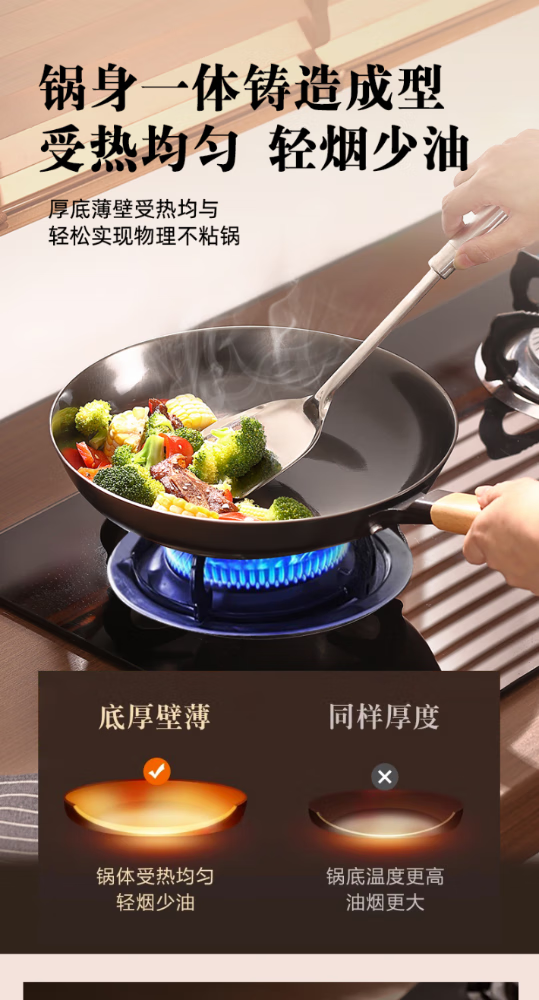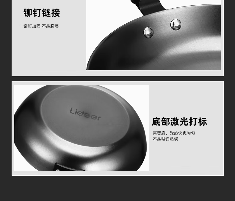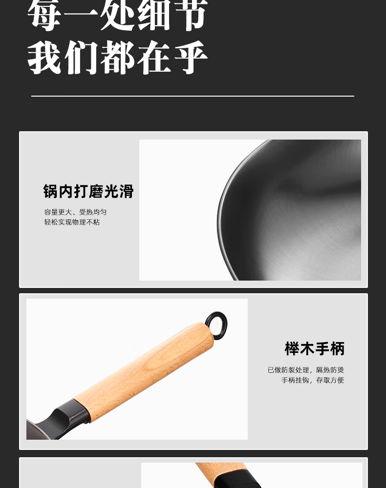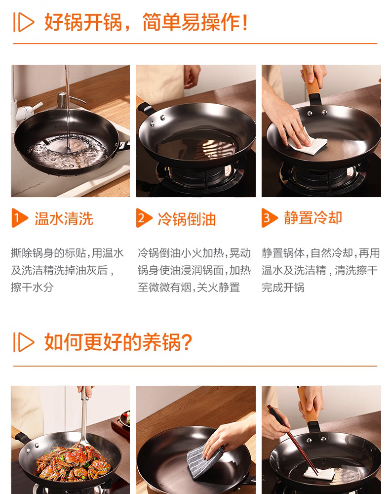 章状元手工铁锅圆底炒锅无涂层炒菜锅燃气灶家用熟铁锅精铁防锈防穿孔 超轻铁锅+盖子铲子 32cm