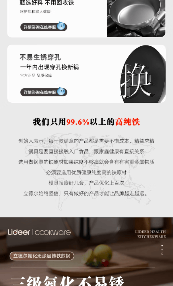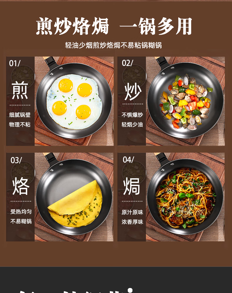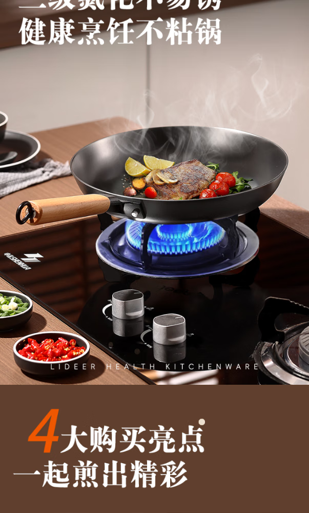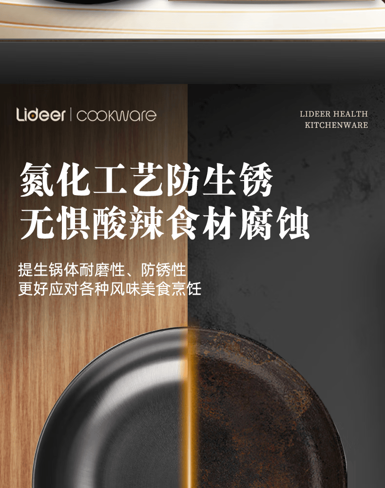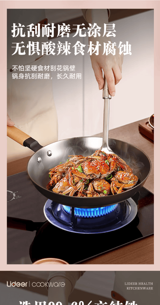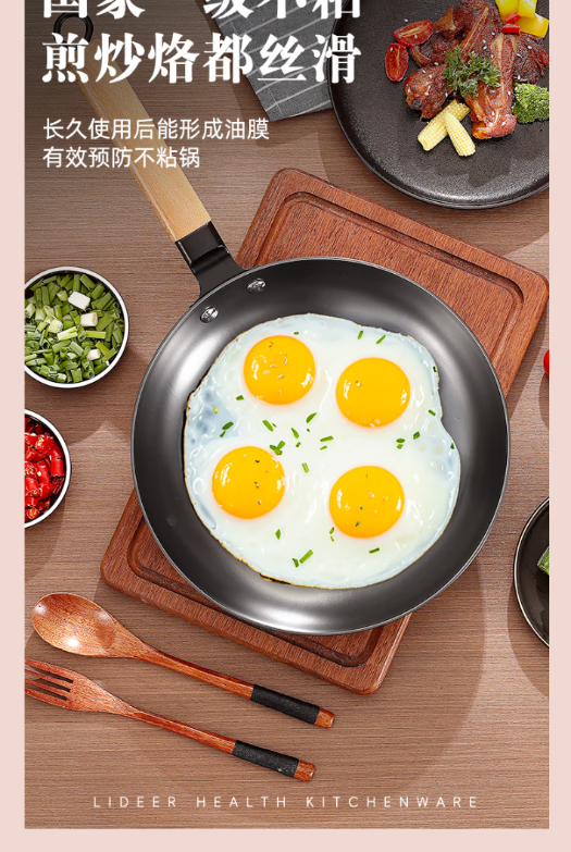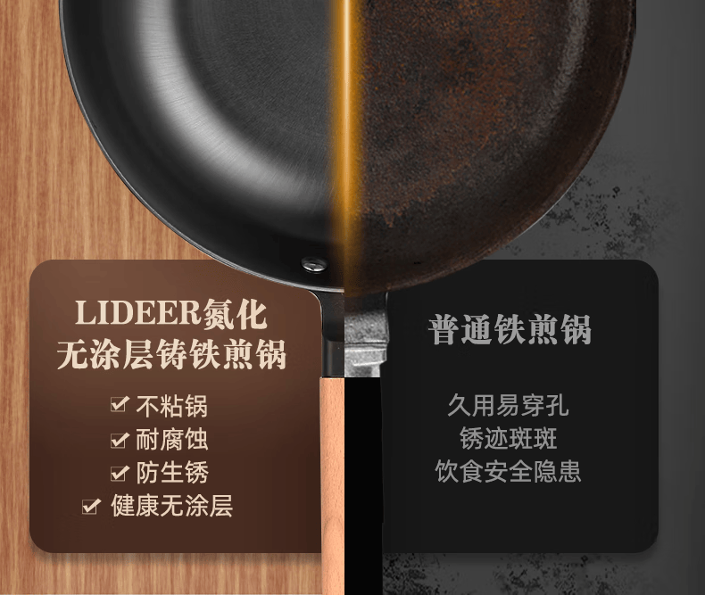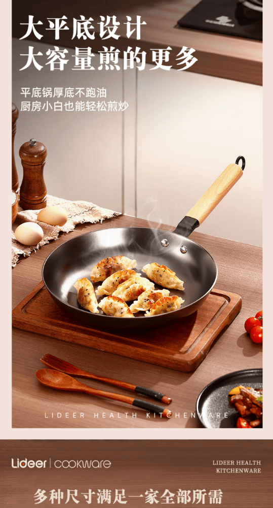 LIDEER COOKWARE平底铸铁生铁锅无涂层不易粘煎蛋锅窒氮化电磁炉锅牛排煎锅 【氮化轻量铸铁平底锅】无盖 20cm