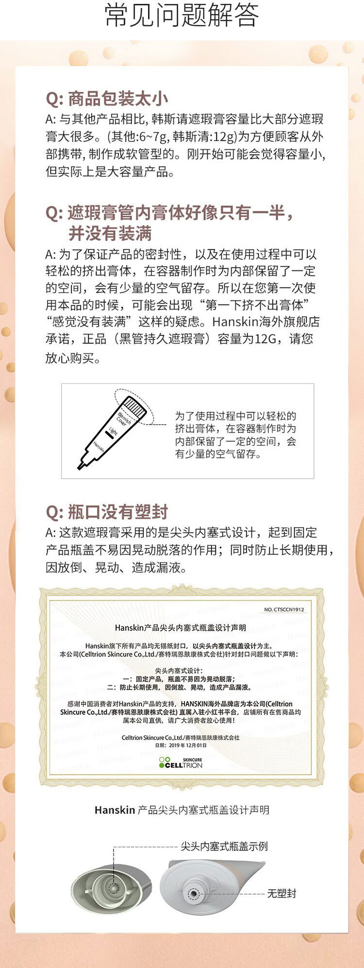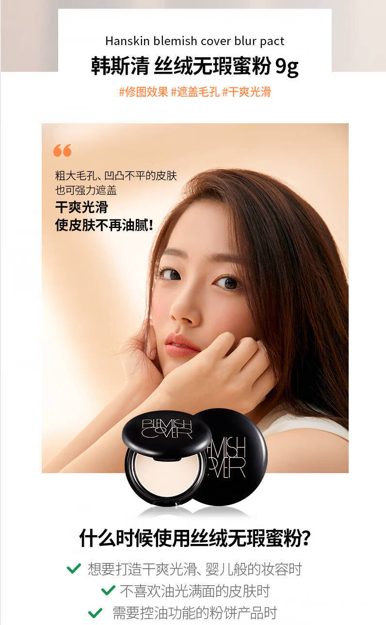 韩斯清(HANSKIN)韩国Hanskin韩斯清遮瑕膏脸部斑点遮瑕液痘印黑眼圈修容笔蜜粉 丝绒无瑕控油蜜粉(通用肤色)