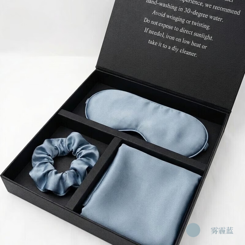 赫亚真丝礼盒套装桑蚕丝高端精致母亲节送礼妈妈女友商务领导老婆 礼盒装三件(银灰色) 枕套+眼罩+发圈