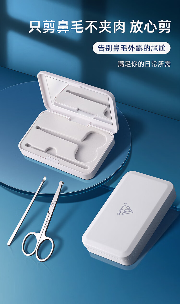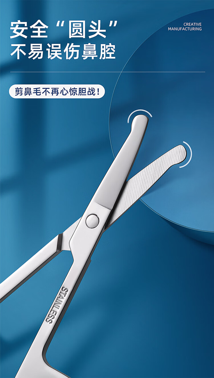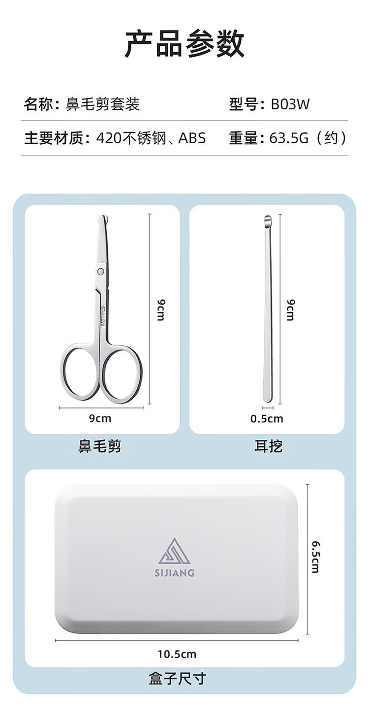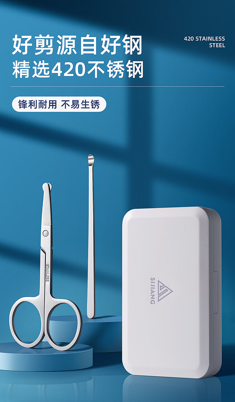 sijiang斯匠鼻毛剪刀圆头男士鼻毛修剪器不锈钢手动修鼻毛胡子家用2件套