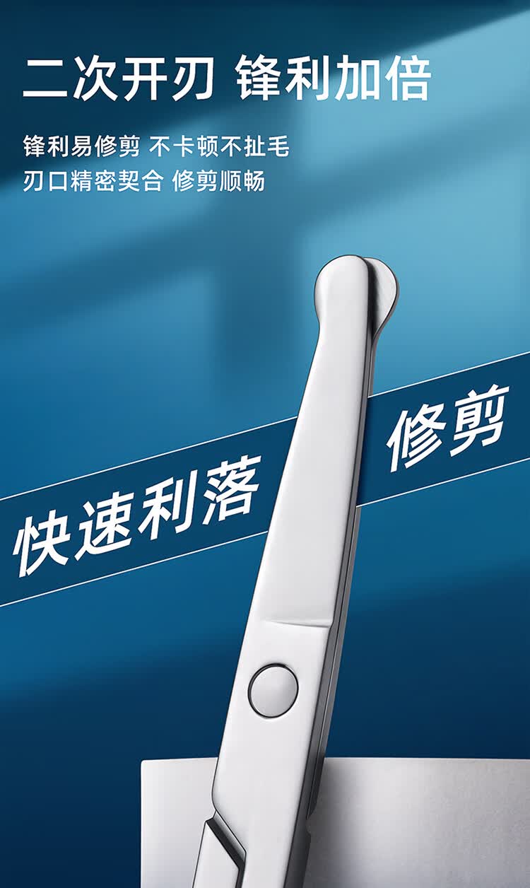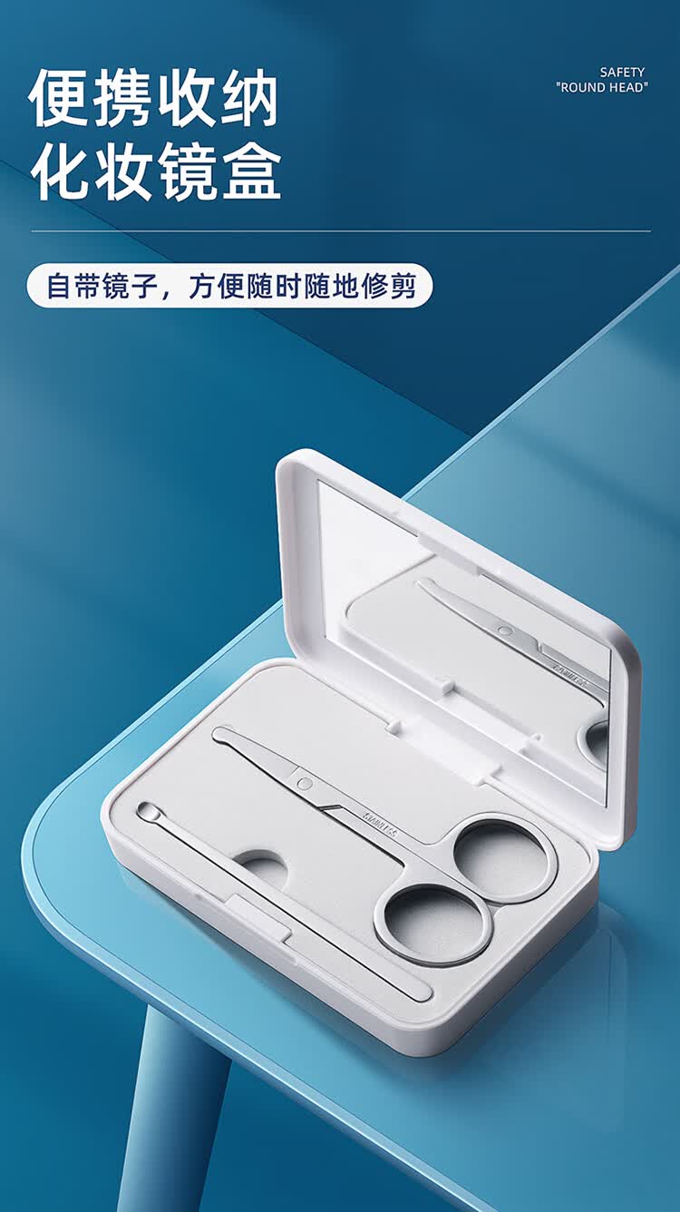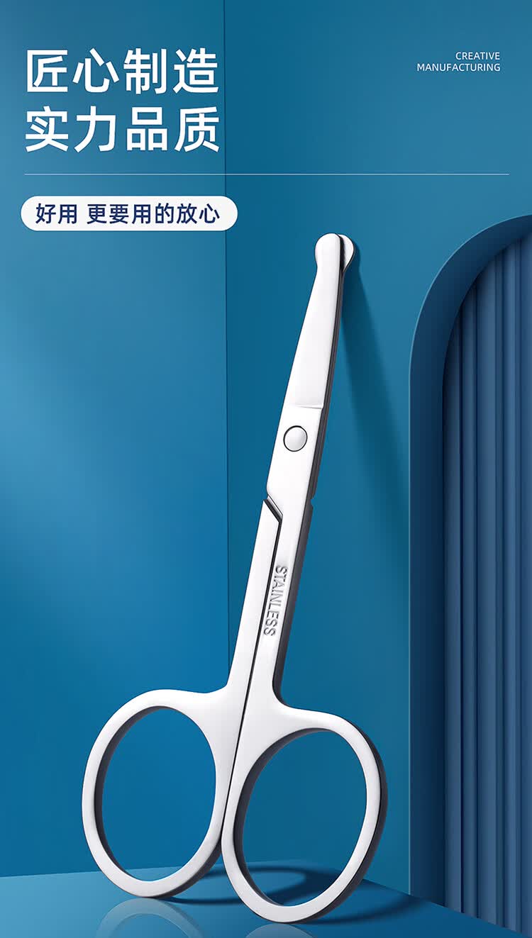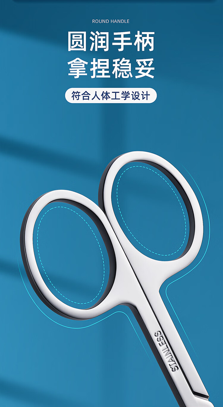 sijiang斯匠鼻毛剪刀圆头男士鼻毛修剪器不锈钢手动修鼻毛胡子家用2件套
