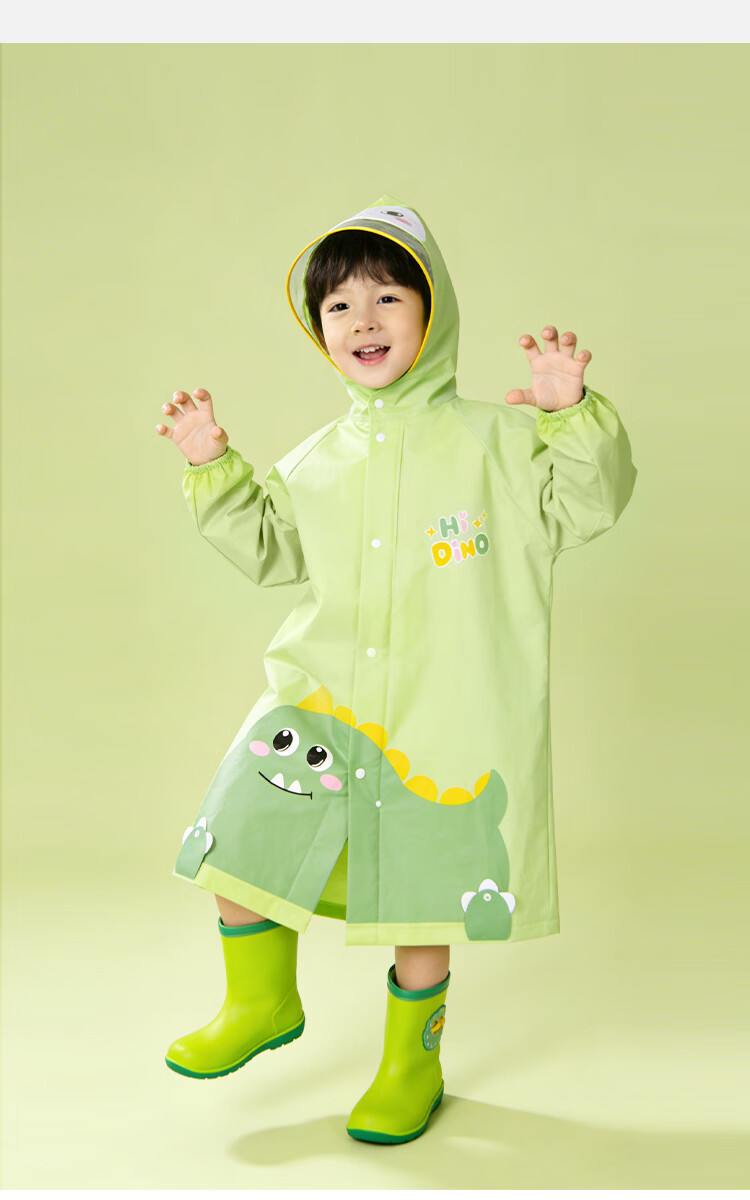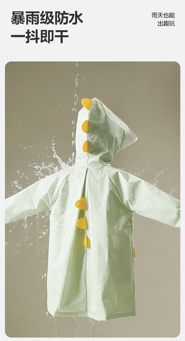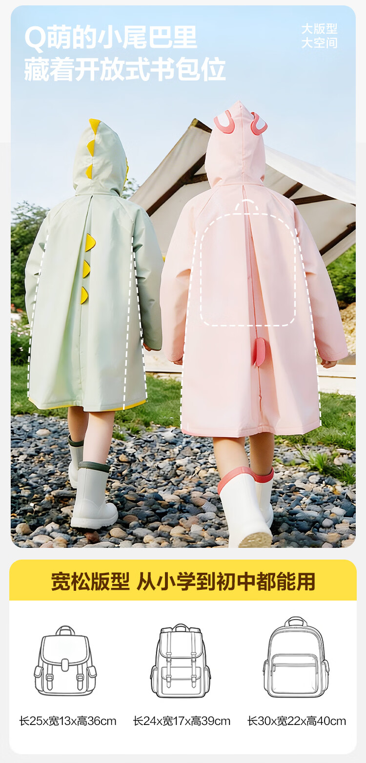 得力(deli)儿童雨衣中小学生上学专用带书包位防暴雨披加长全身 恐龙XL码
