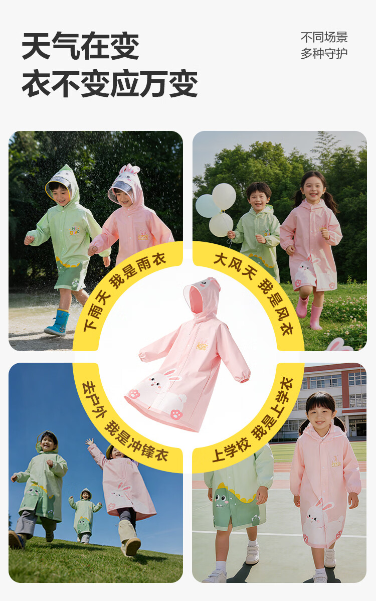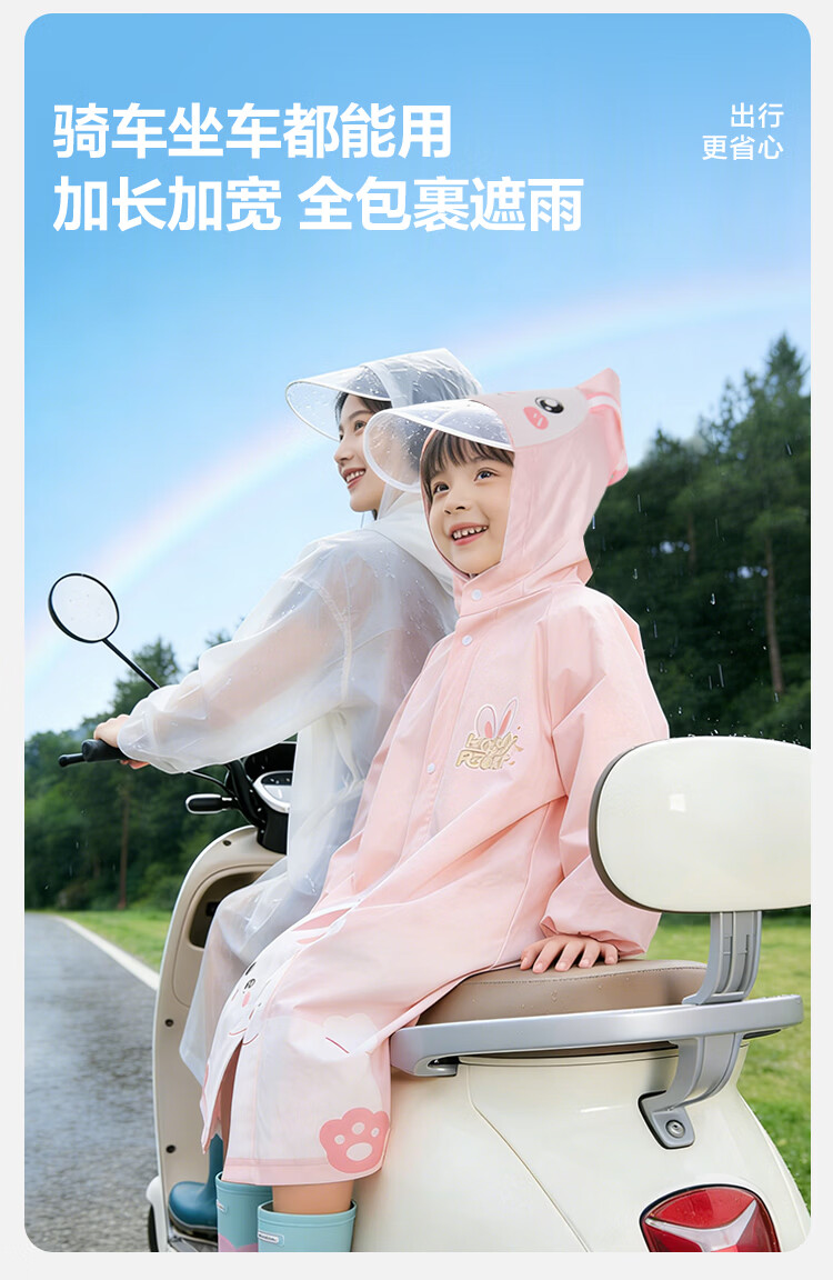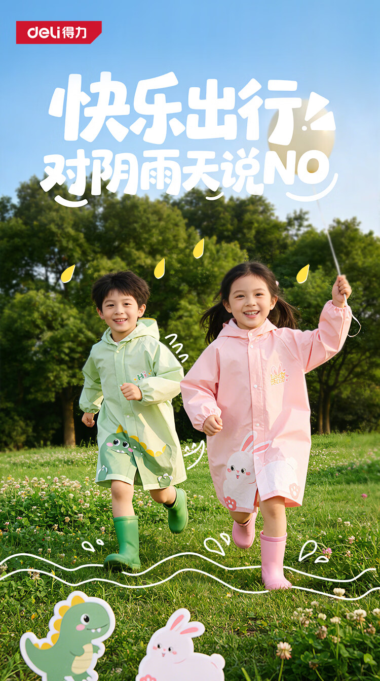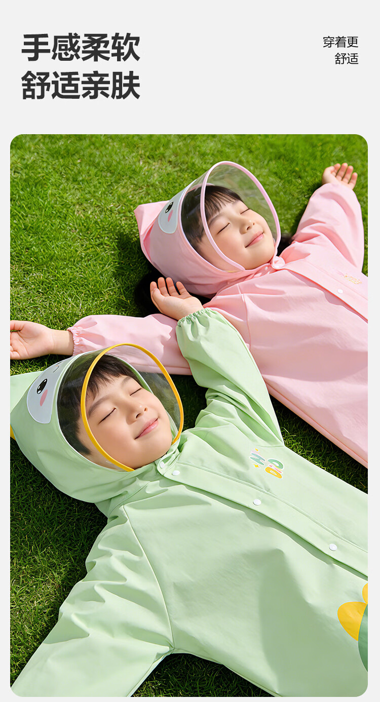 得力(deli)儿童雨衣中小学生上学专用带书包位防暴雨披加长全身 恐龙XL码
