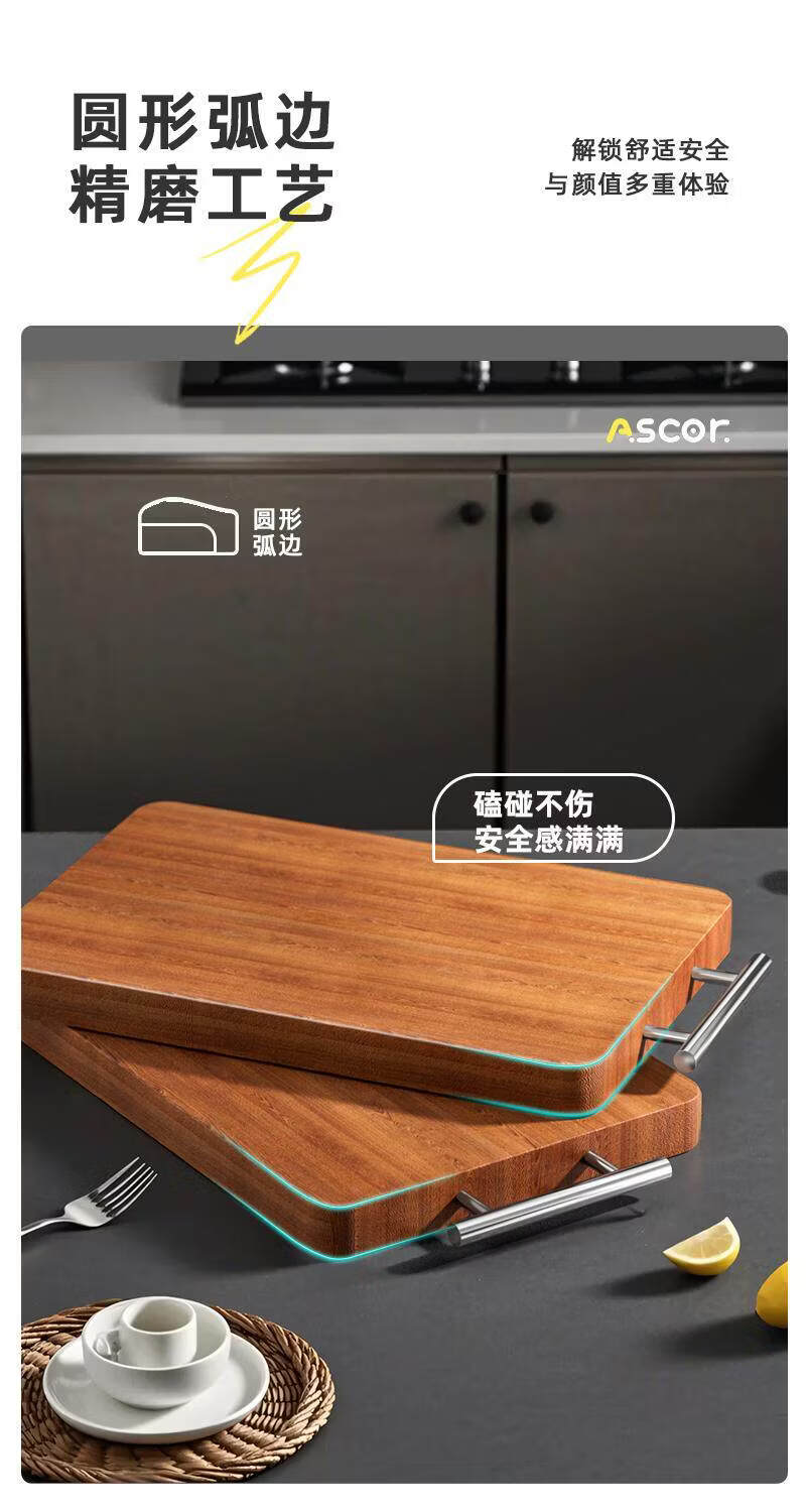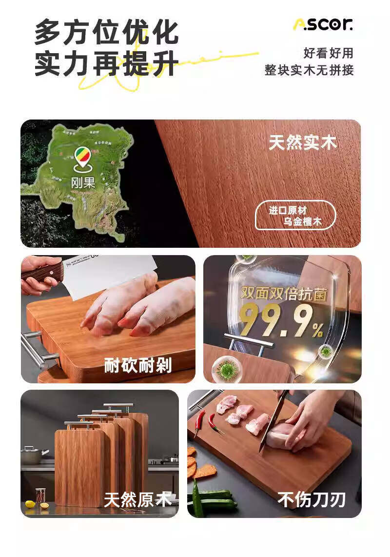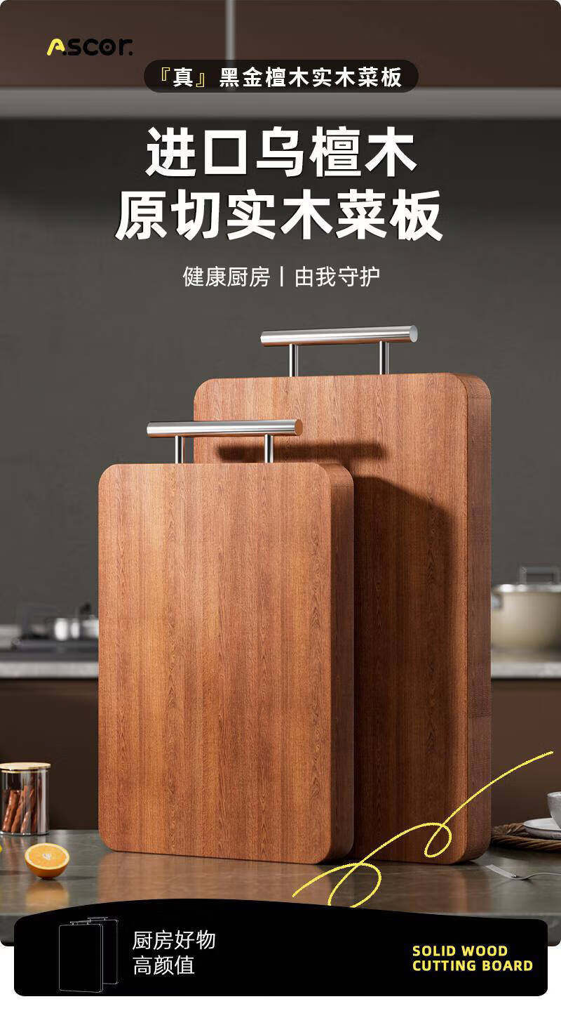艾仕可(ASCOR)乌檀木菜板抗菌防霉家用食品级实木砧板厨房专用双面切菜案板粘板 大号-双面乌檀木【推荐3~5人使用】