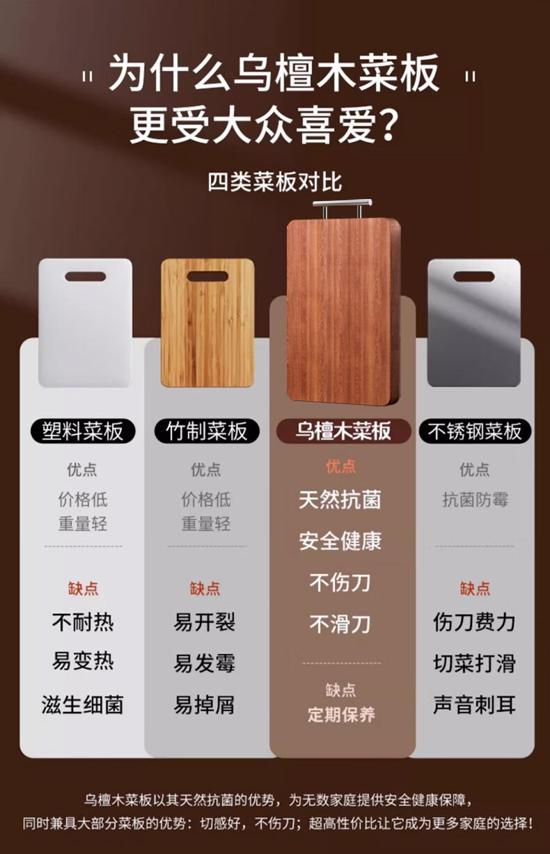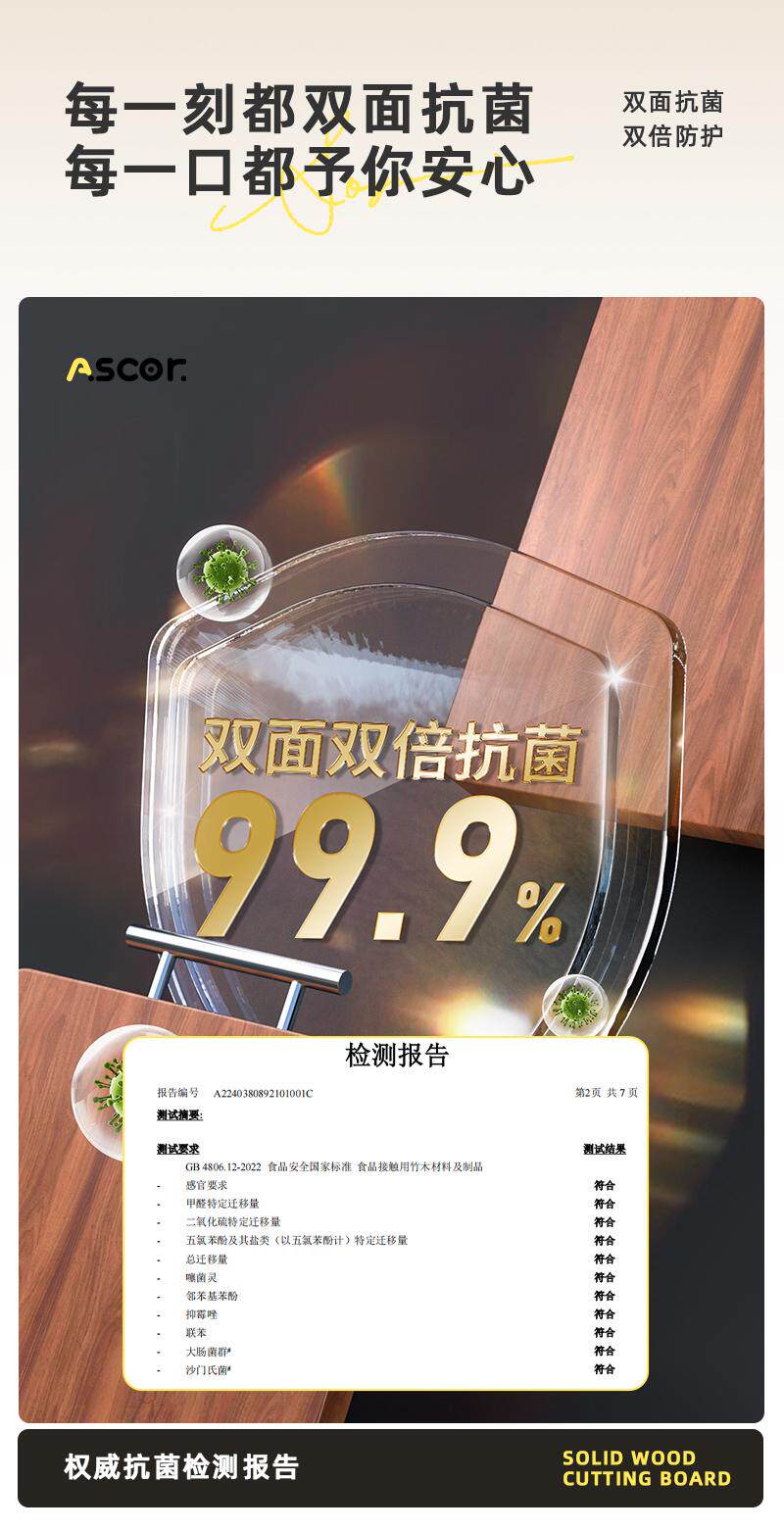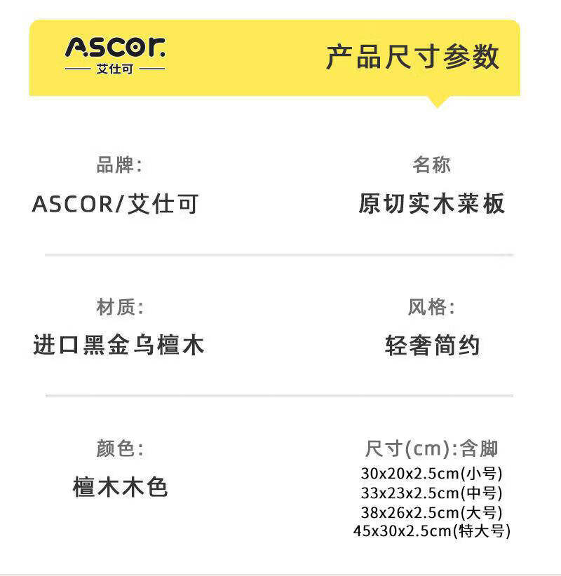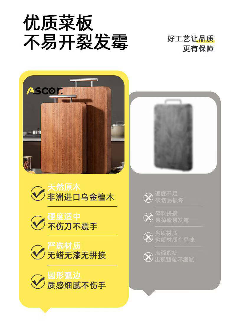 艾仕可(ASCOR)乌檀木菜板抗菌防霉家用食品级实木砧板厨房专用双面切菜案板粘板 大号-双面乌檀木【推荐3~5人使用】