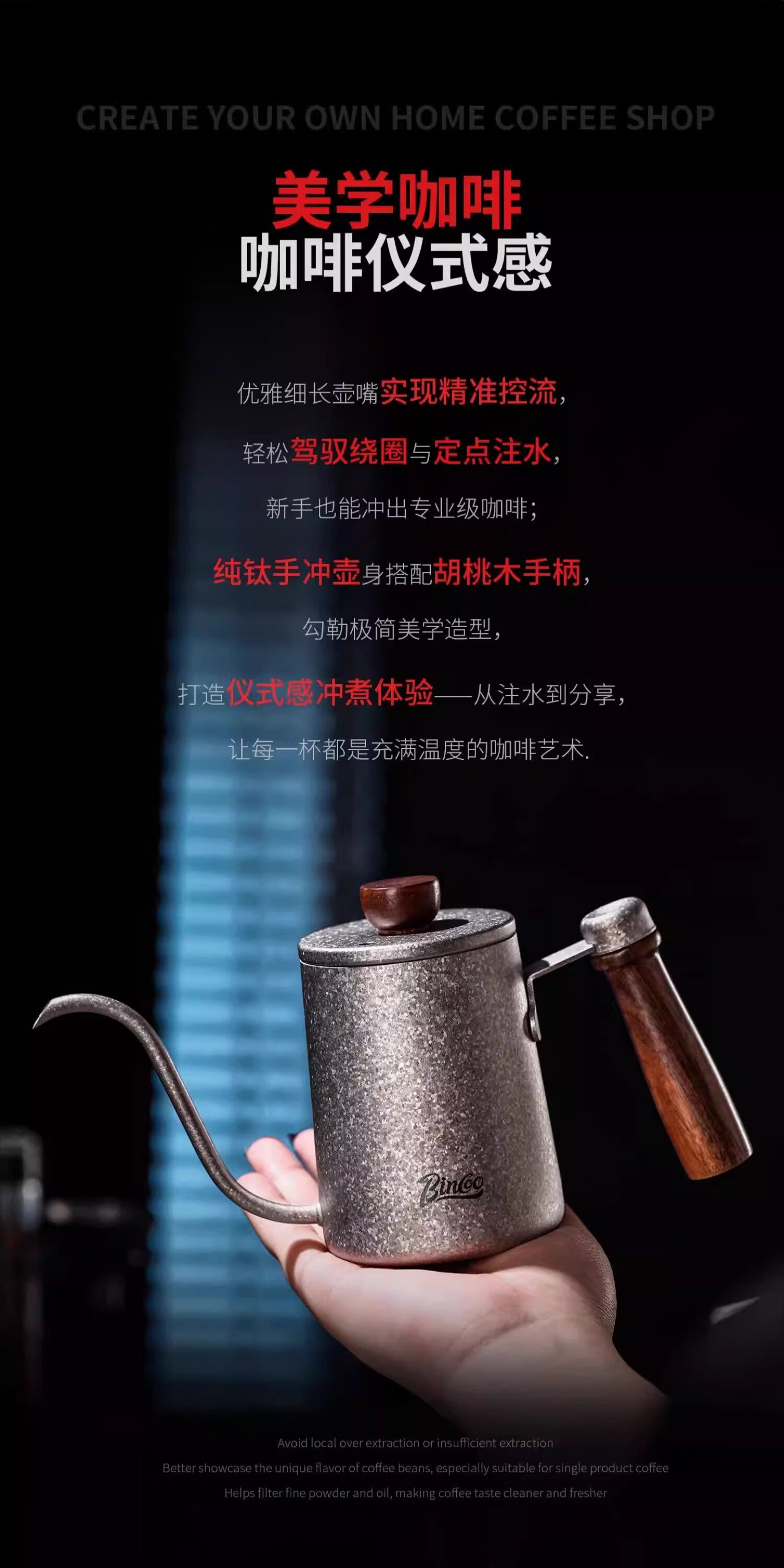 Bincoo手冲咖啡壶套装V60纯钛滤杯分享壶户外露营咖啡收纳器具 纯钛咖啡滤杯-V01