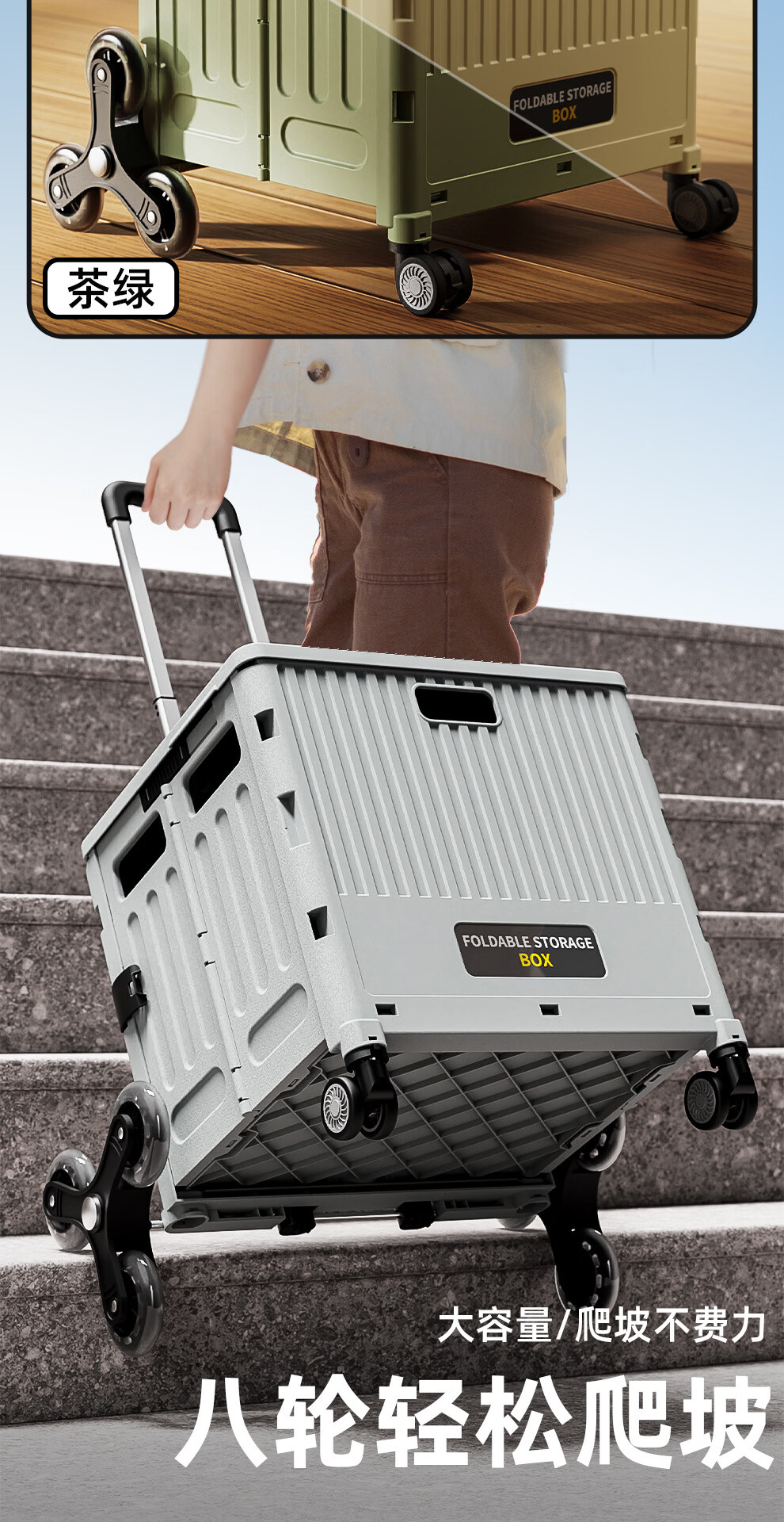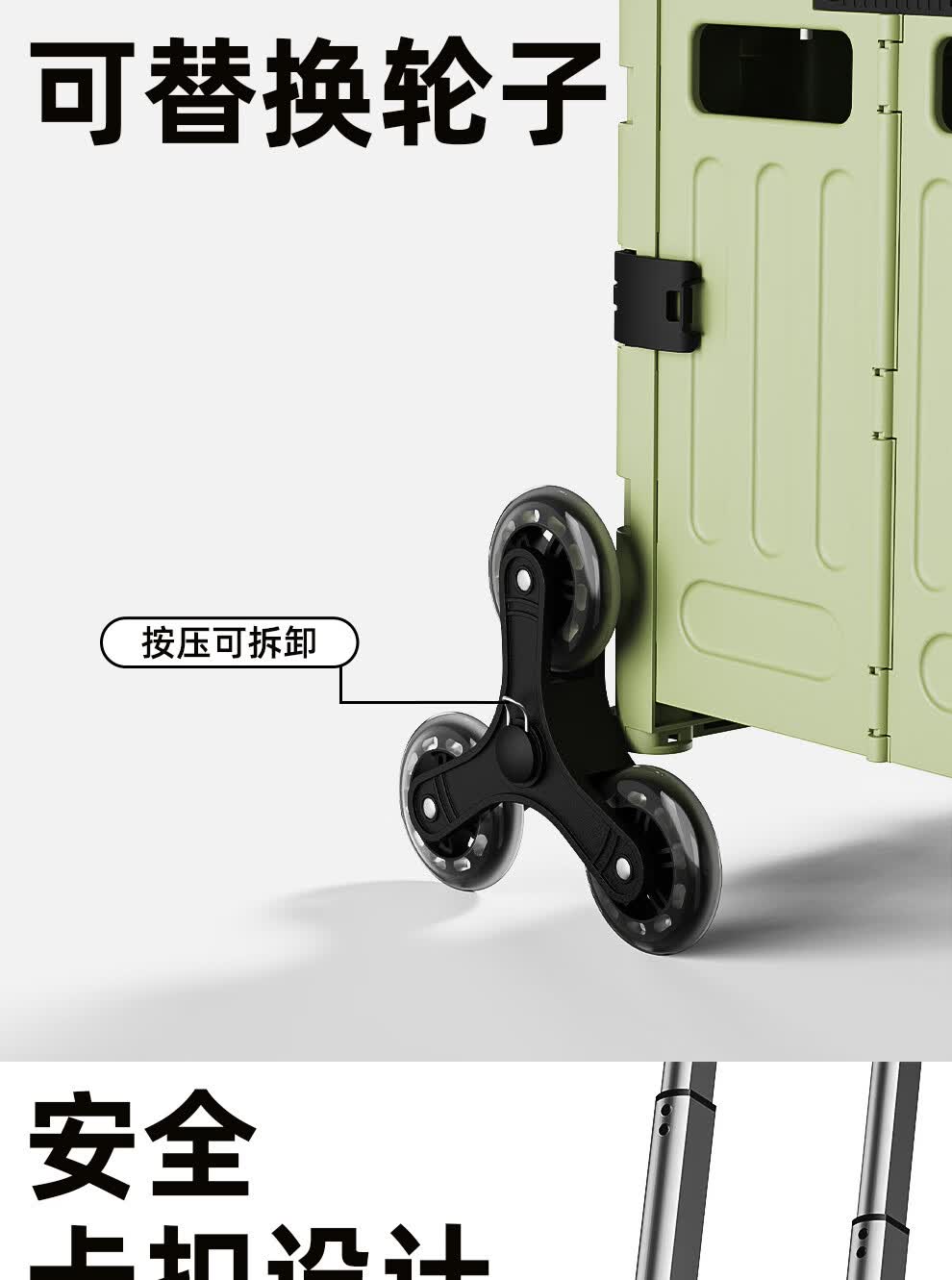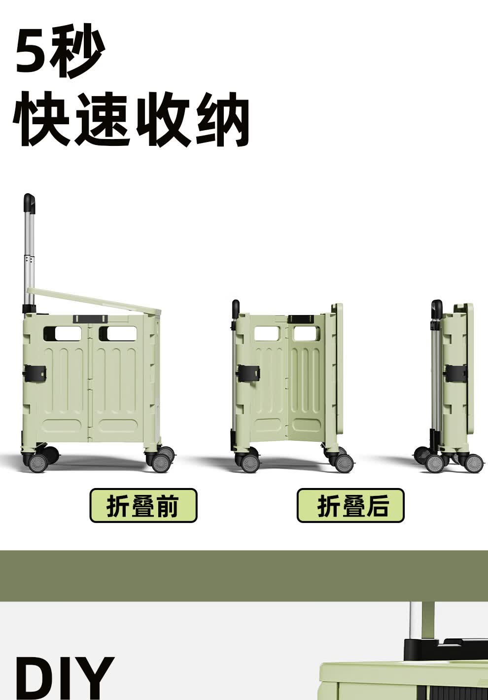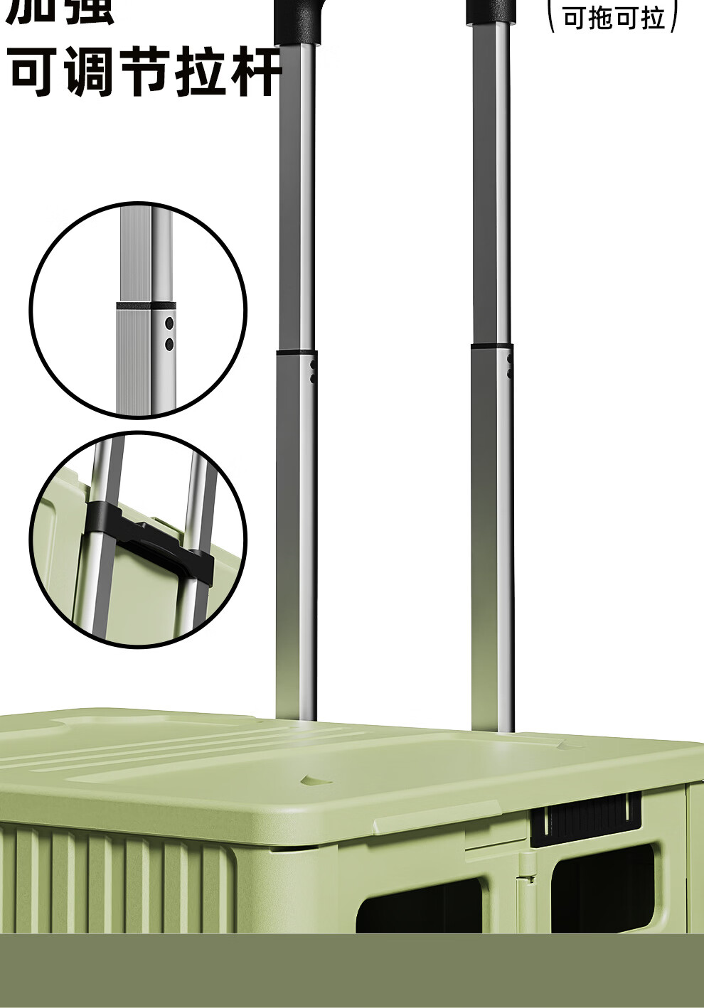 亚伦大力士买菜车可折叠小拉拖车超市购物车家庭轻便老人推车拉杆露营快递车 万向轮【特大65L】小家一车装 【浅豆绿】结构全新升级