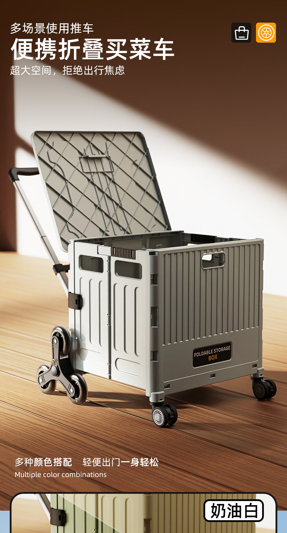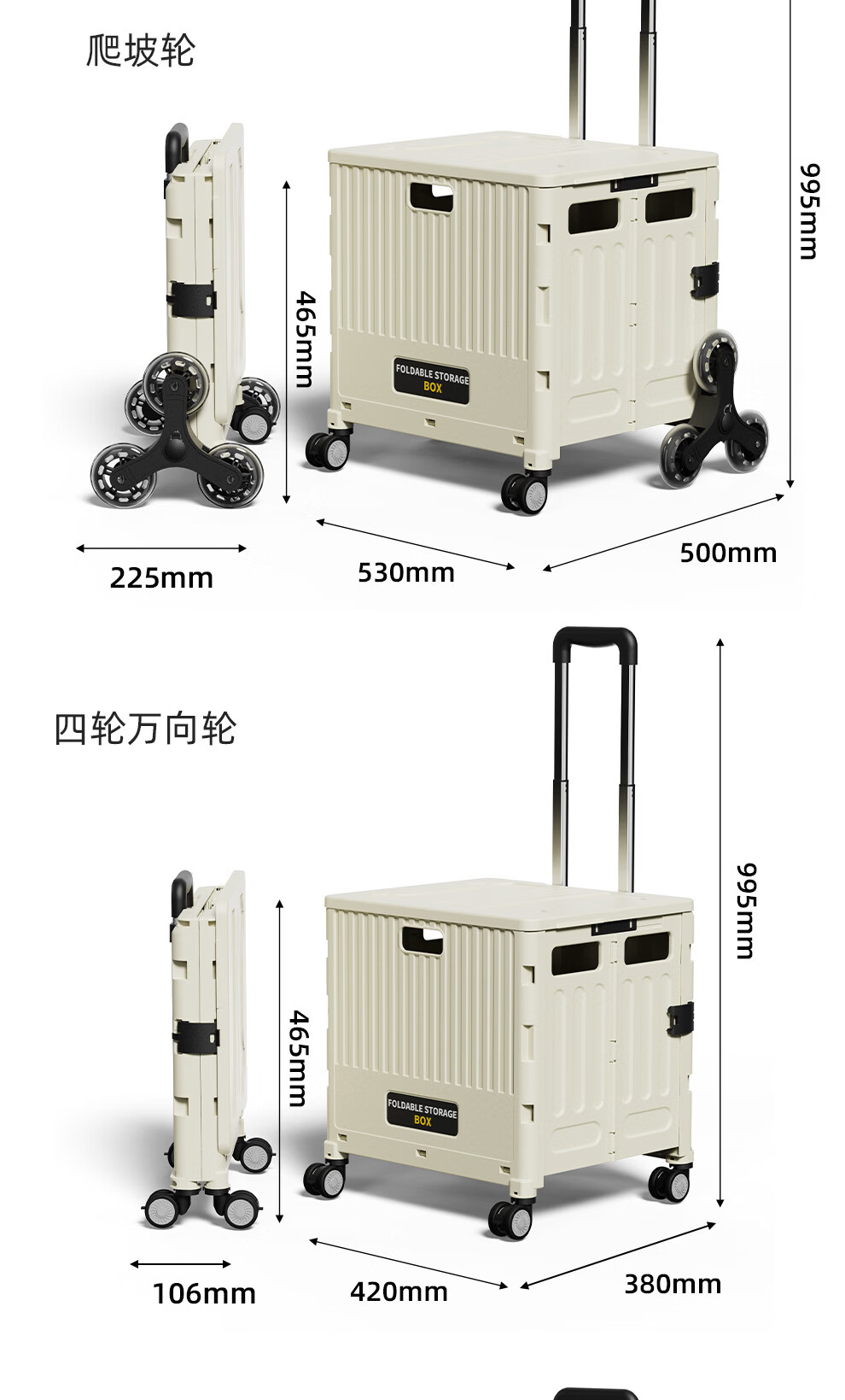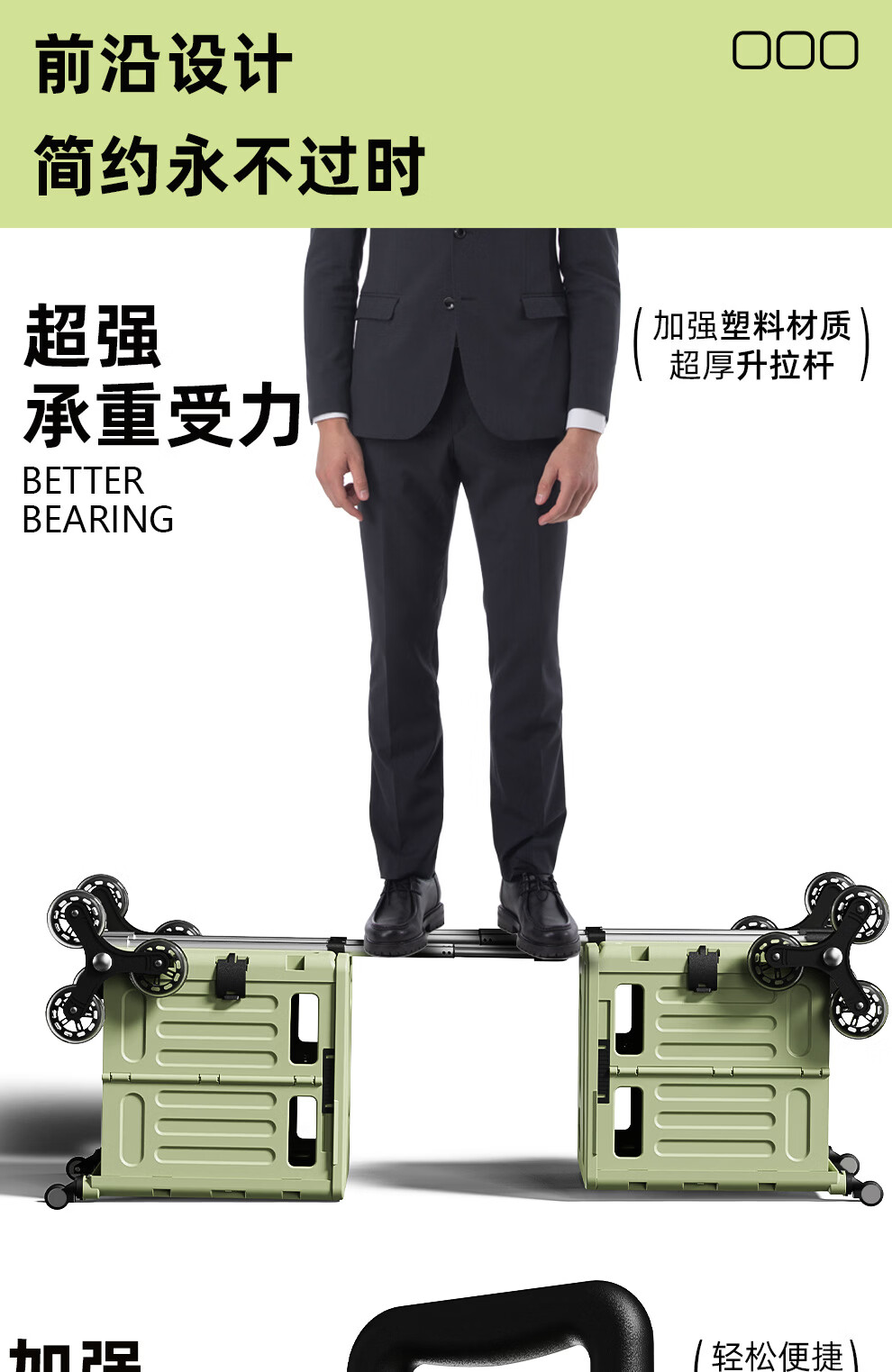 亚伦大力士买菜车可折叠小拉拖车超市购物车家庭轻便老人推车拉杆露营快递车 万向轮【特大65L】小家一车装 【浅豆绿】结构全新升级