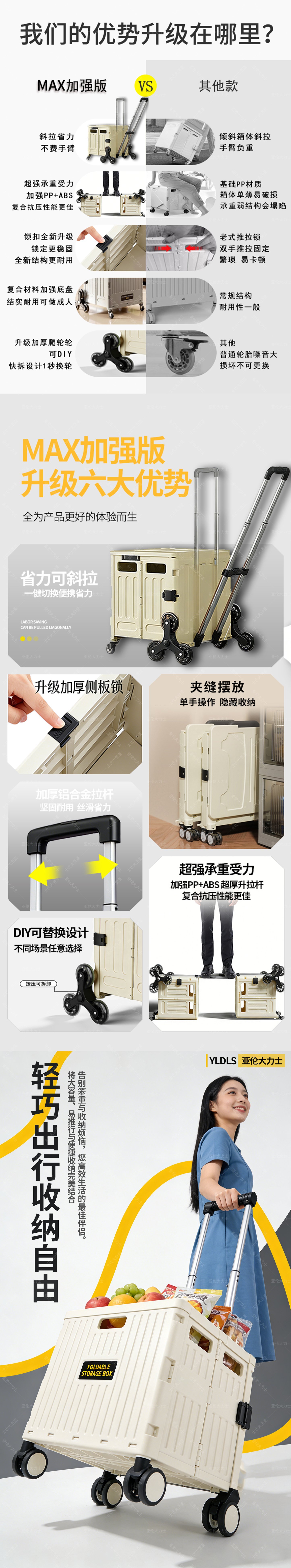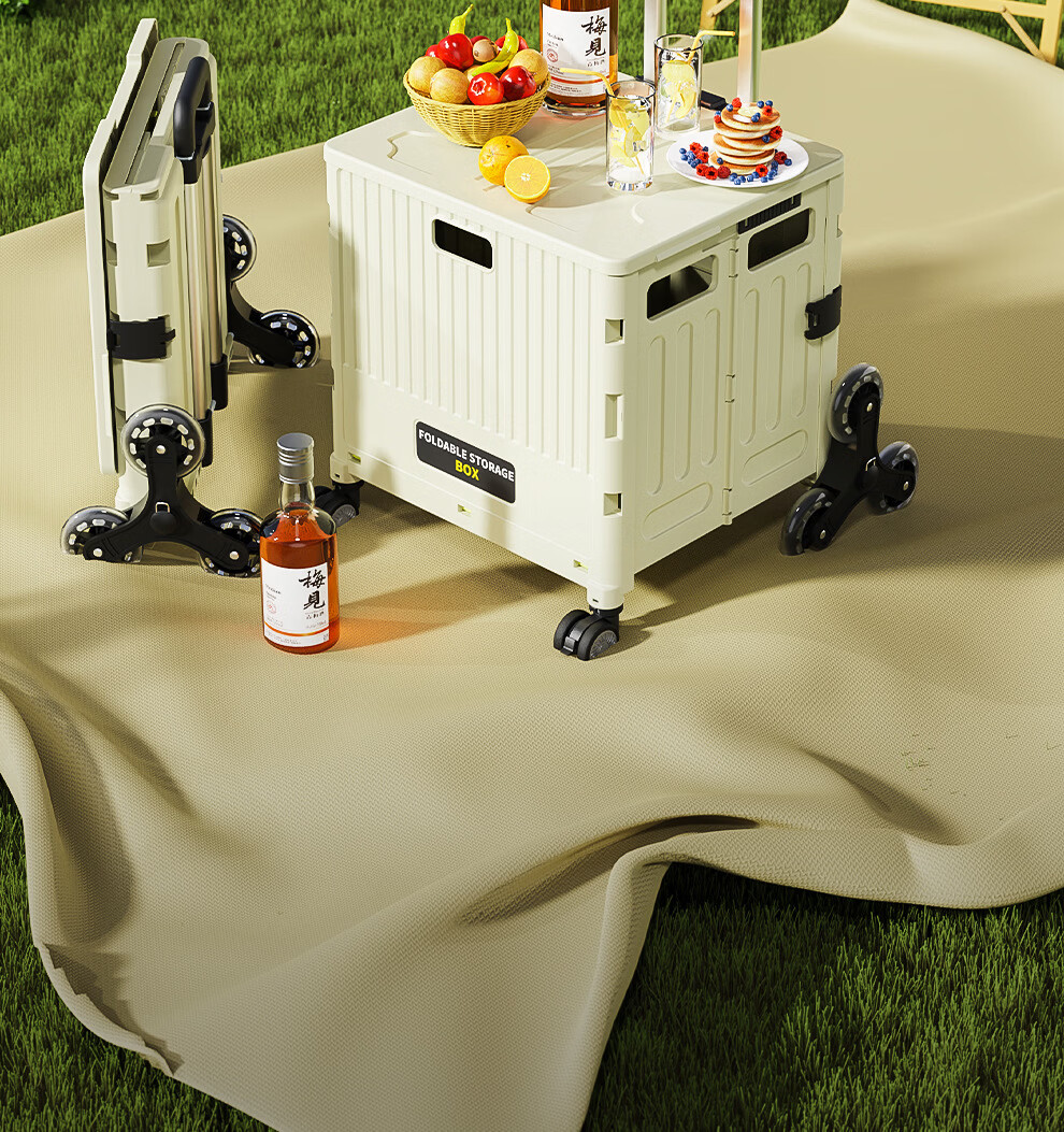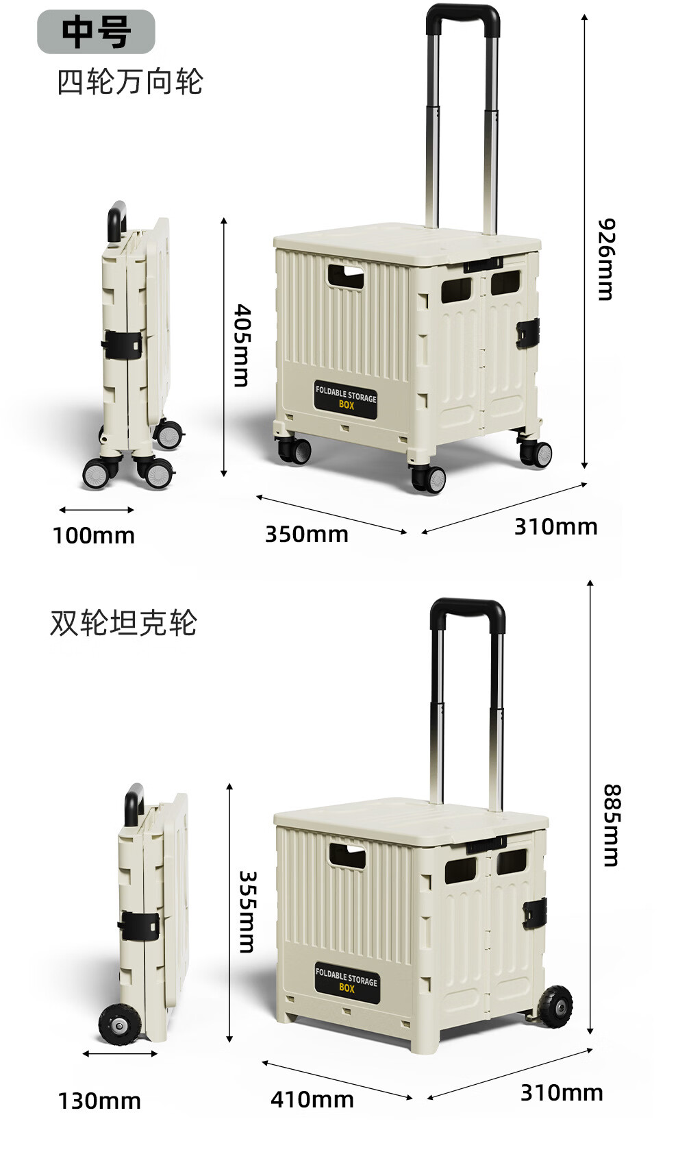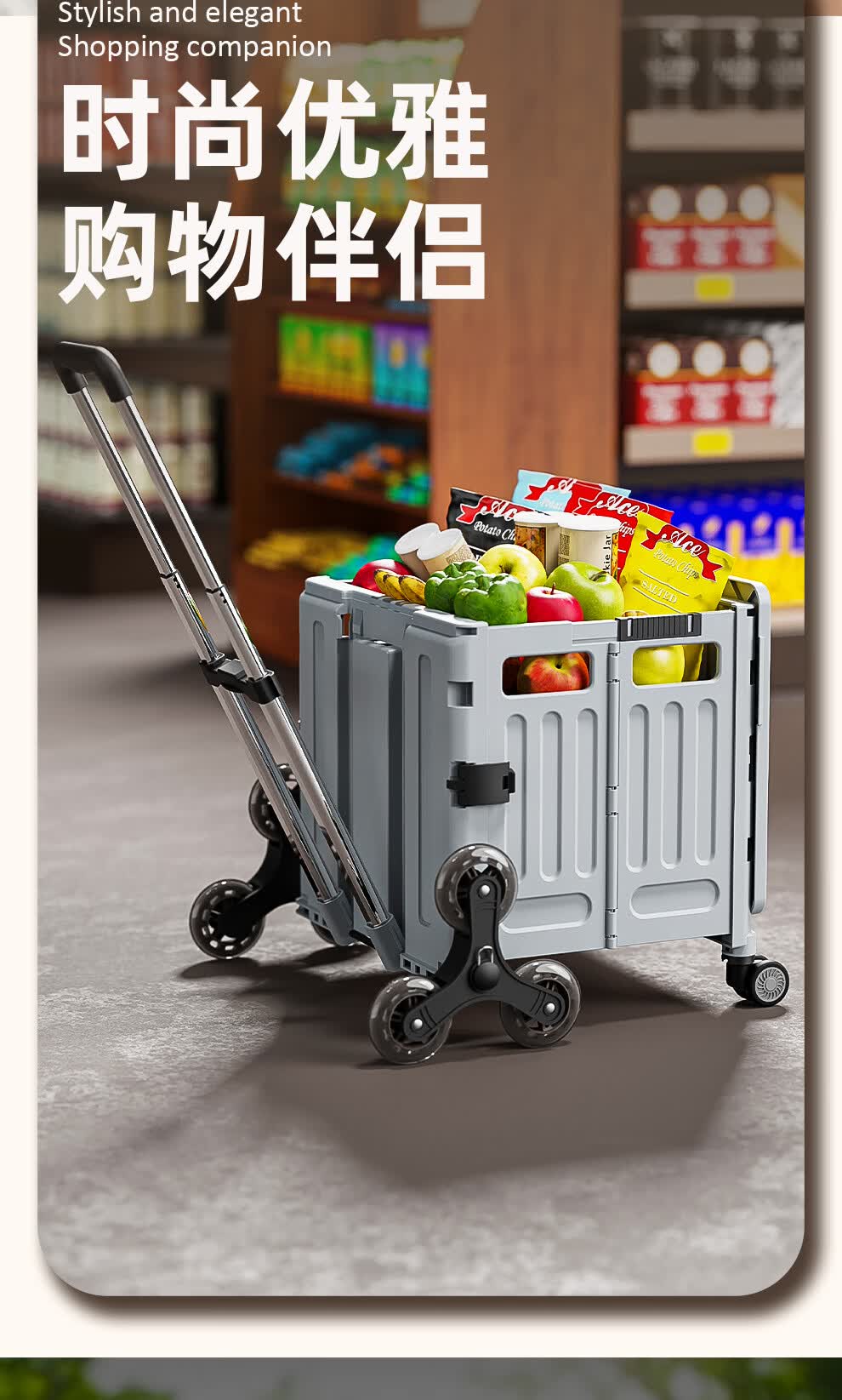 亚伦大力士买菜车可折叠小拉拖车超市购物车家庭轻便老人推车拉杆露营快递车 万向轮【特大65L】小家一车装 【浅豆绿】结构全新升级