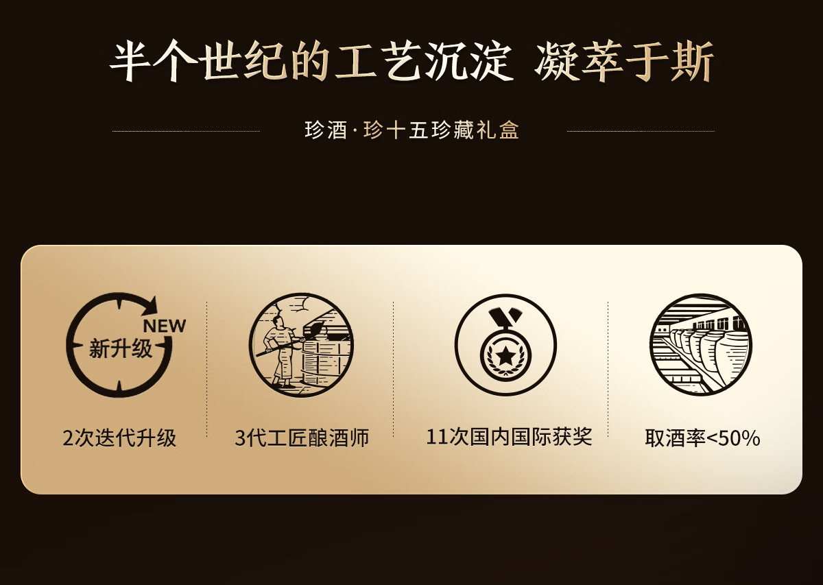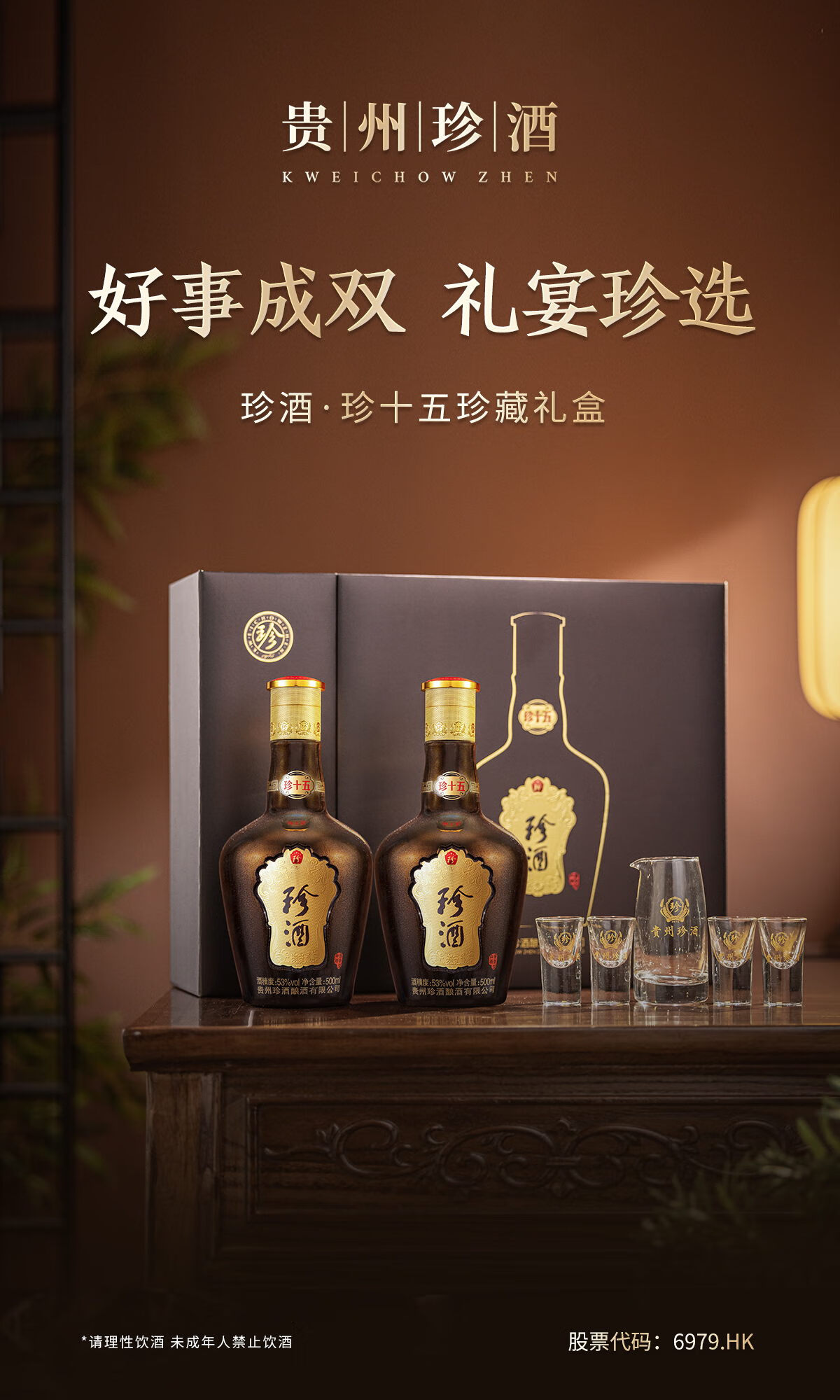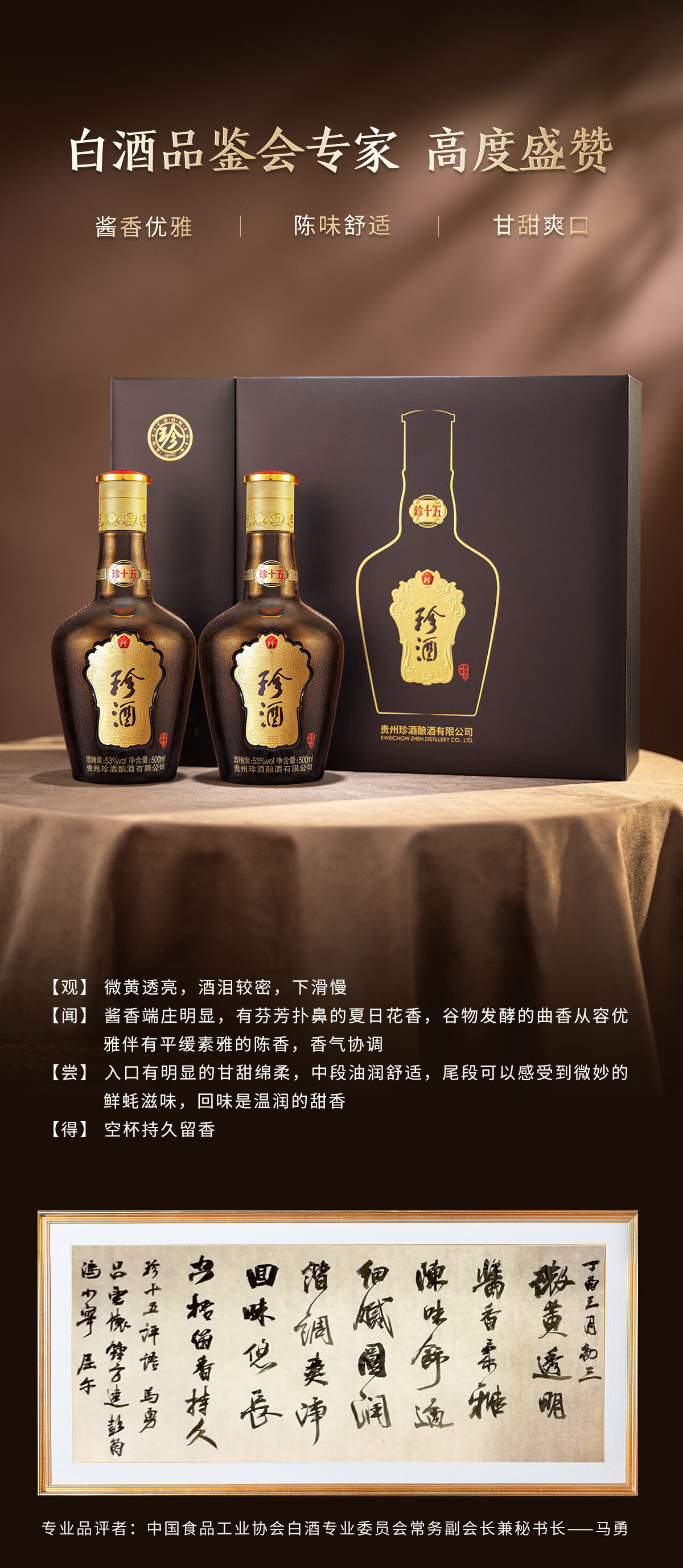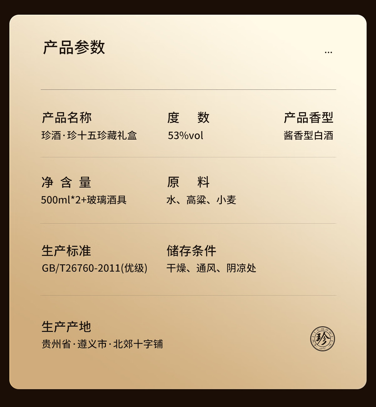 珍酒第三代珍十五珍藏礼盒 酱香型白酒 53度500ml*2瓶*2盒 礼盒整箱装