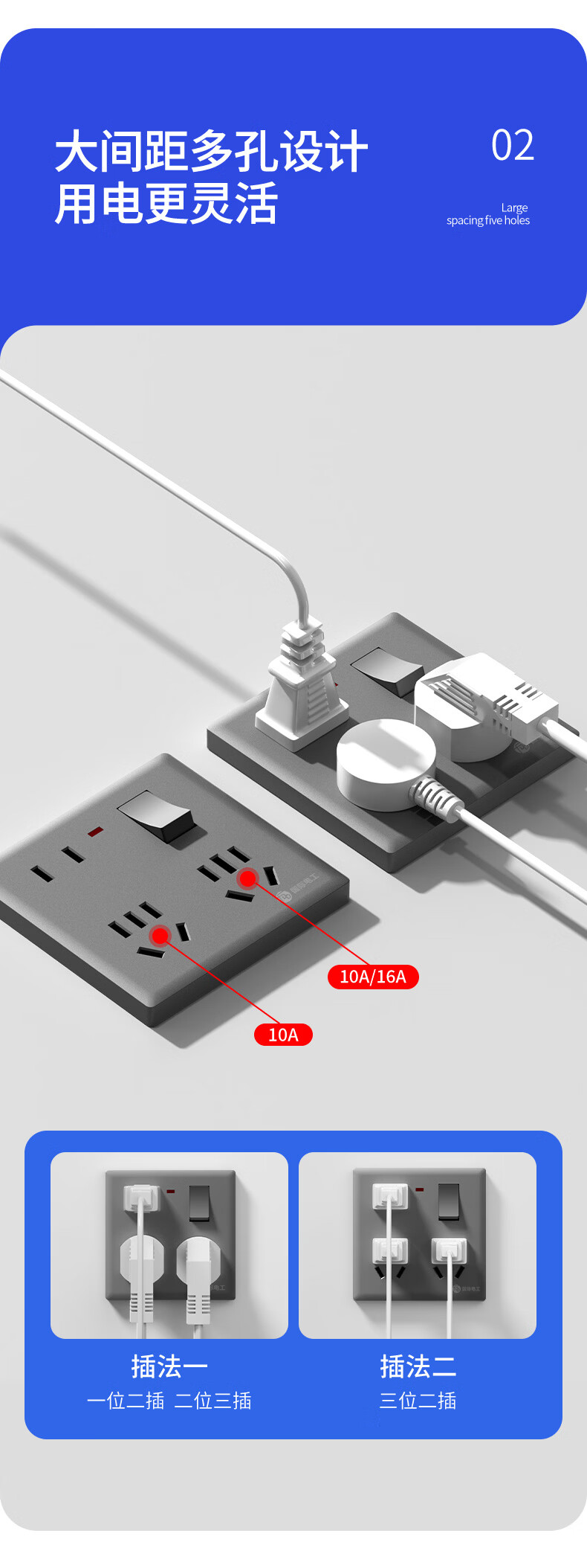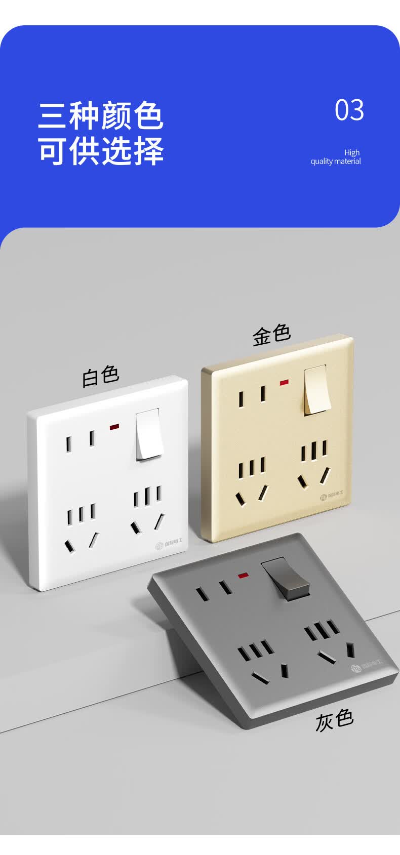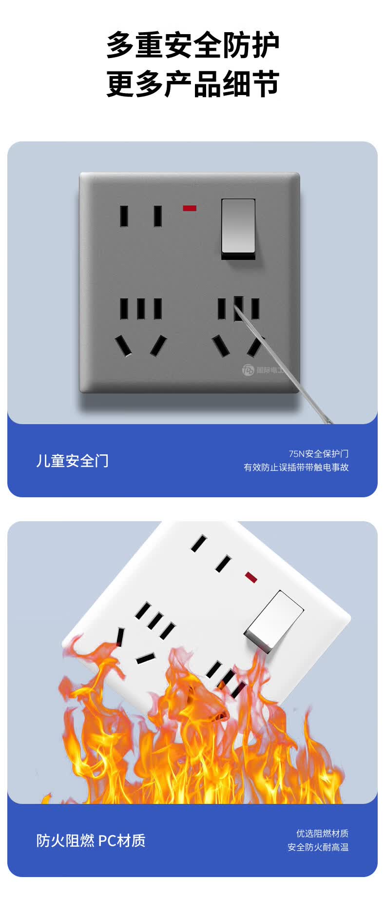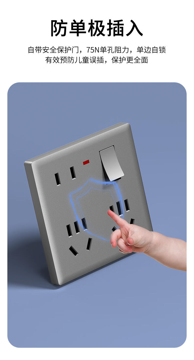 国际电工86型开关插座面板暗装经典小板家用一开五孔单双控空调16A电源插 五孔插座