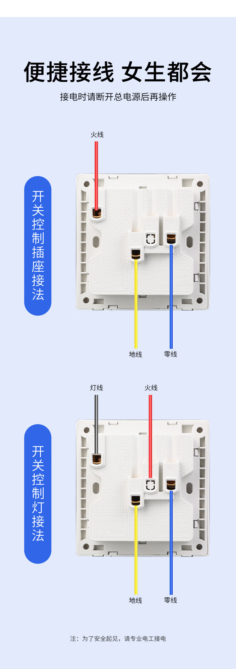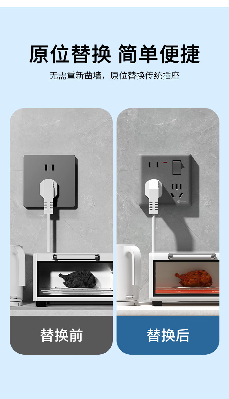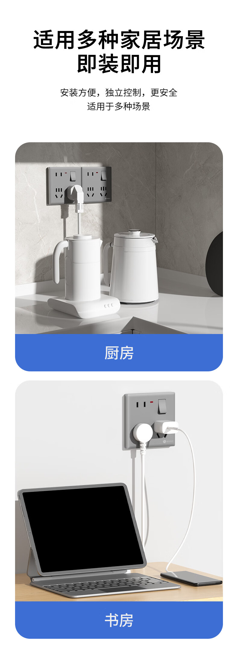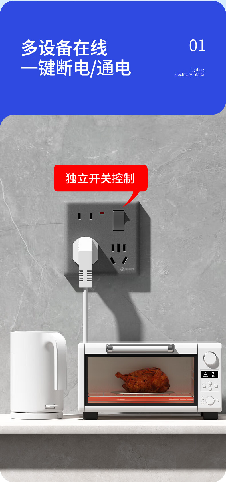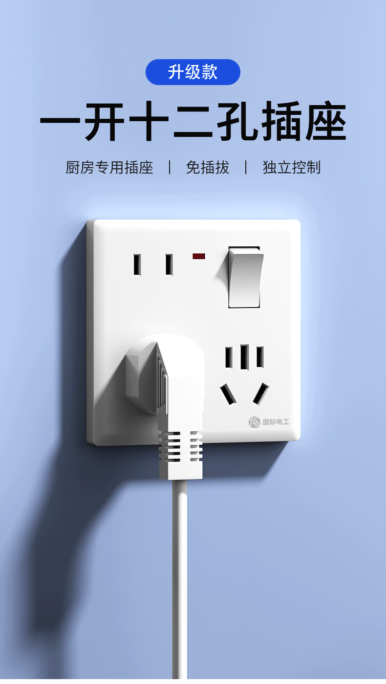 国际电工(FDD)原位扩展插座86型家用厨房分控带开关插排多功能USB快充拓展排插 白色带USB-三开21孔-向左扩展(2.1A)