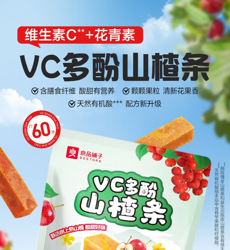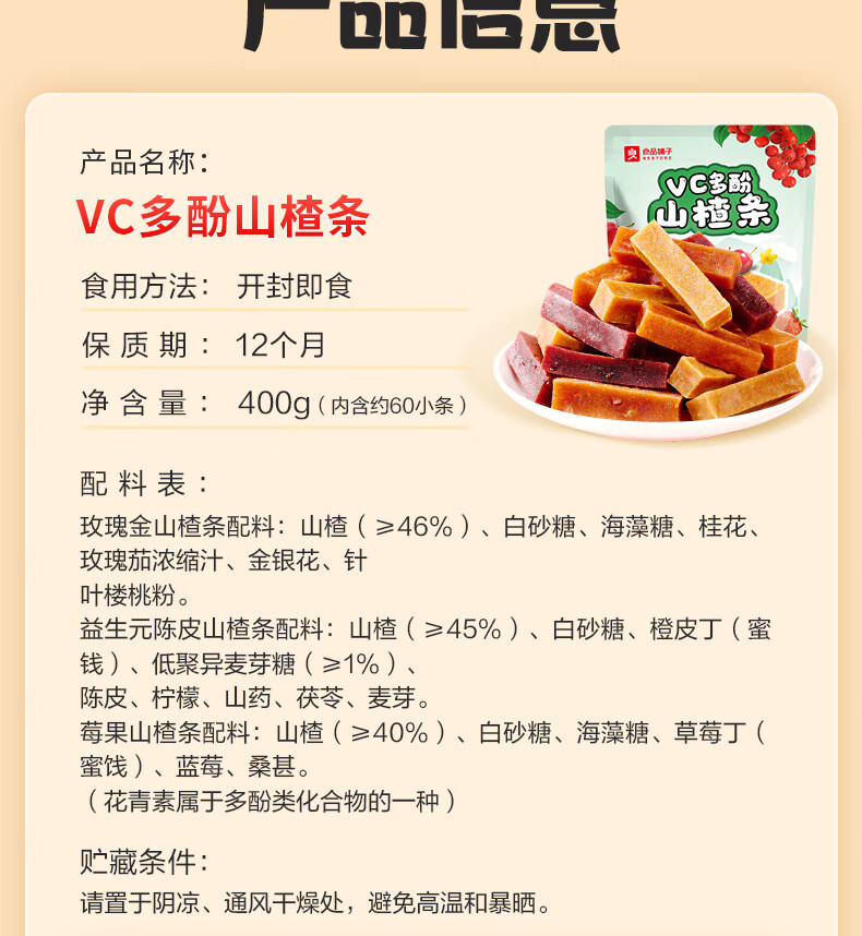 良品铺子VC多酚山楂条400g酸甜果干果脯蜜饯果干解馋无添加办公室小零食