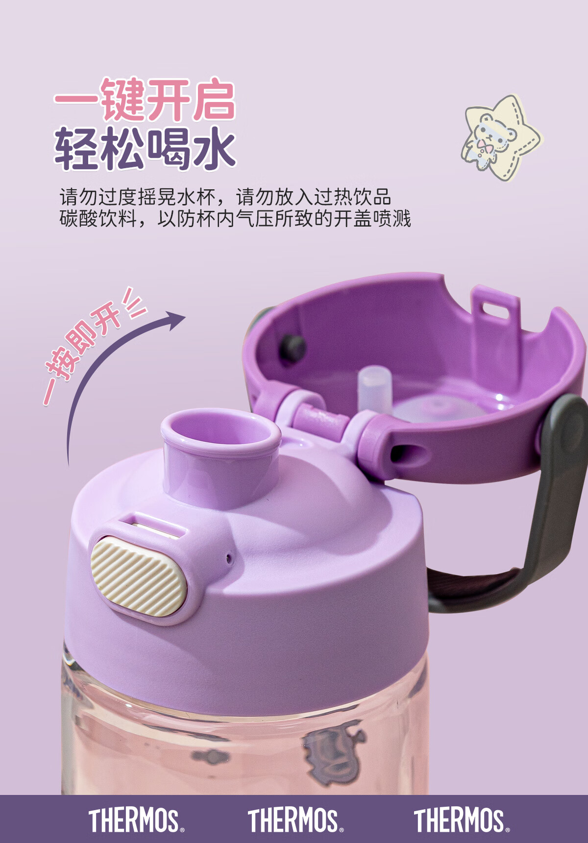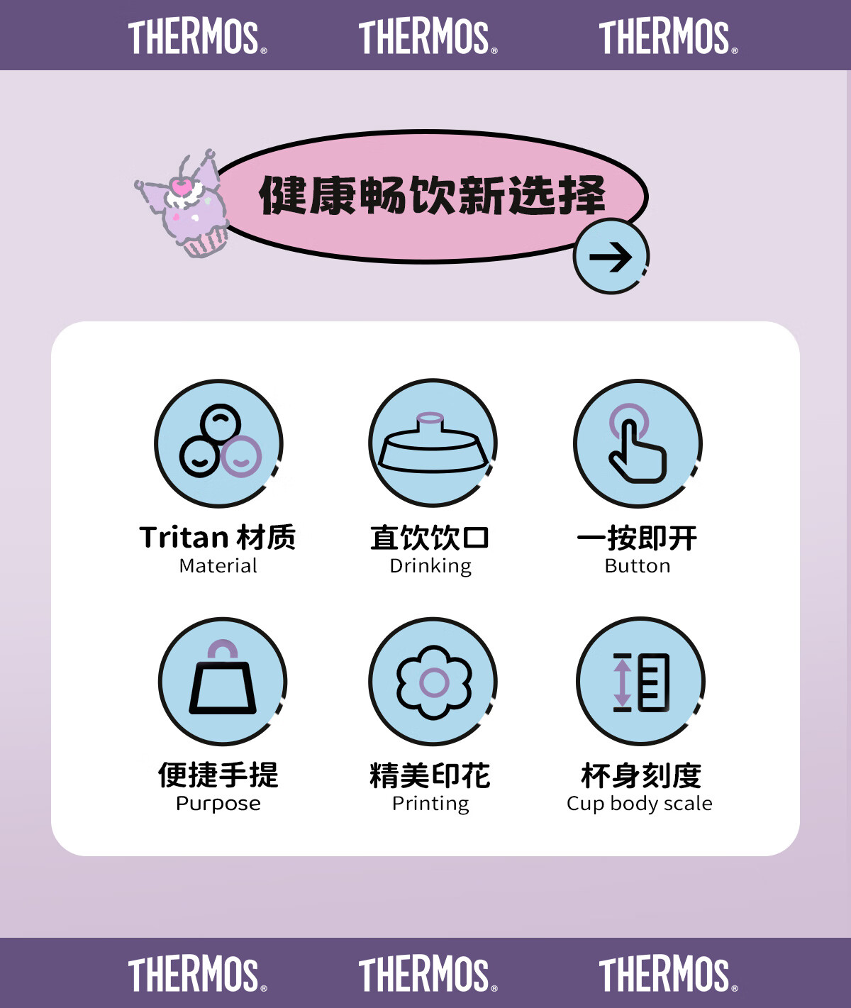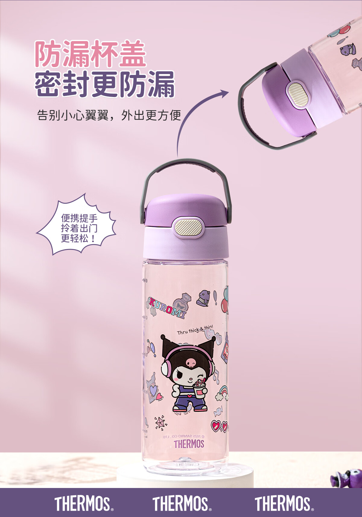 膳魔师(THERMOS)三丽鸥Tritan运动水杯直饮杯儿童学生塑料杯600ml粉