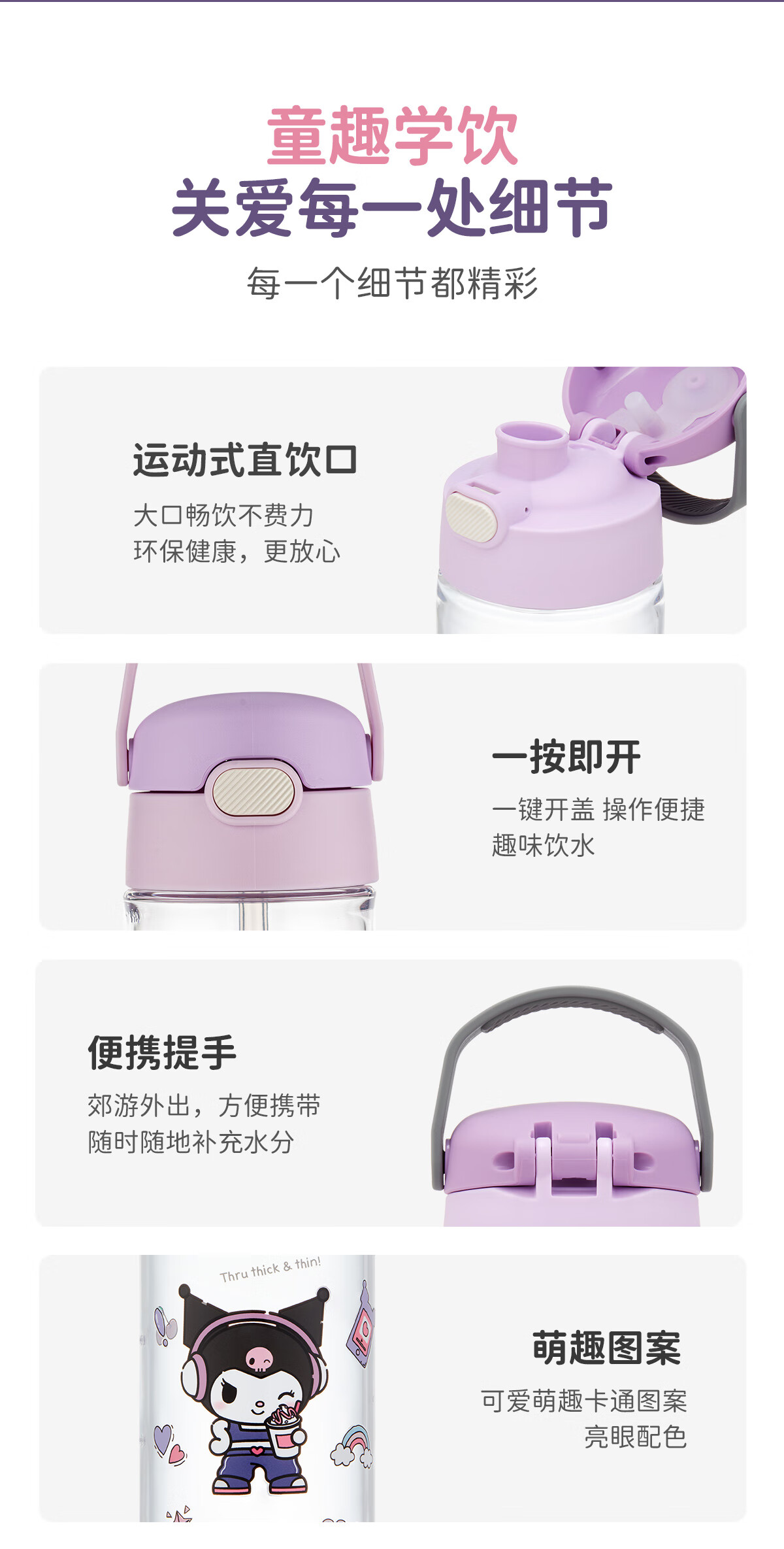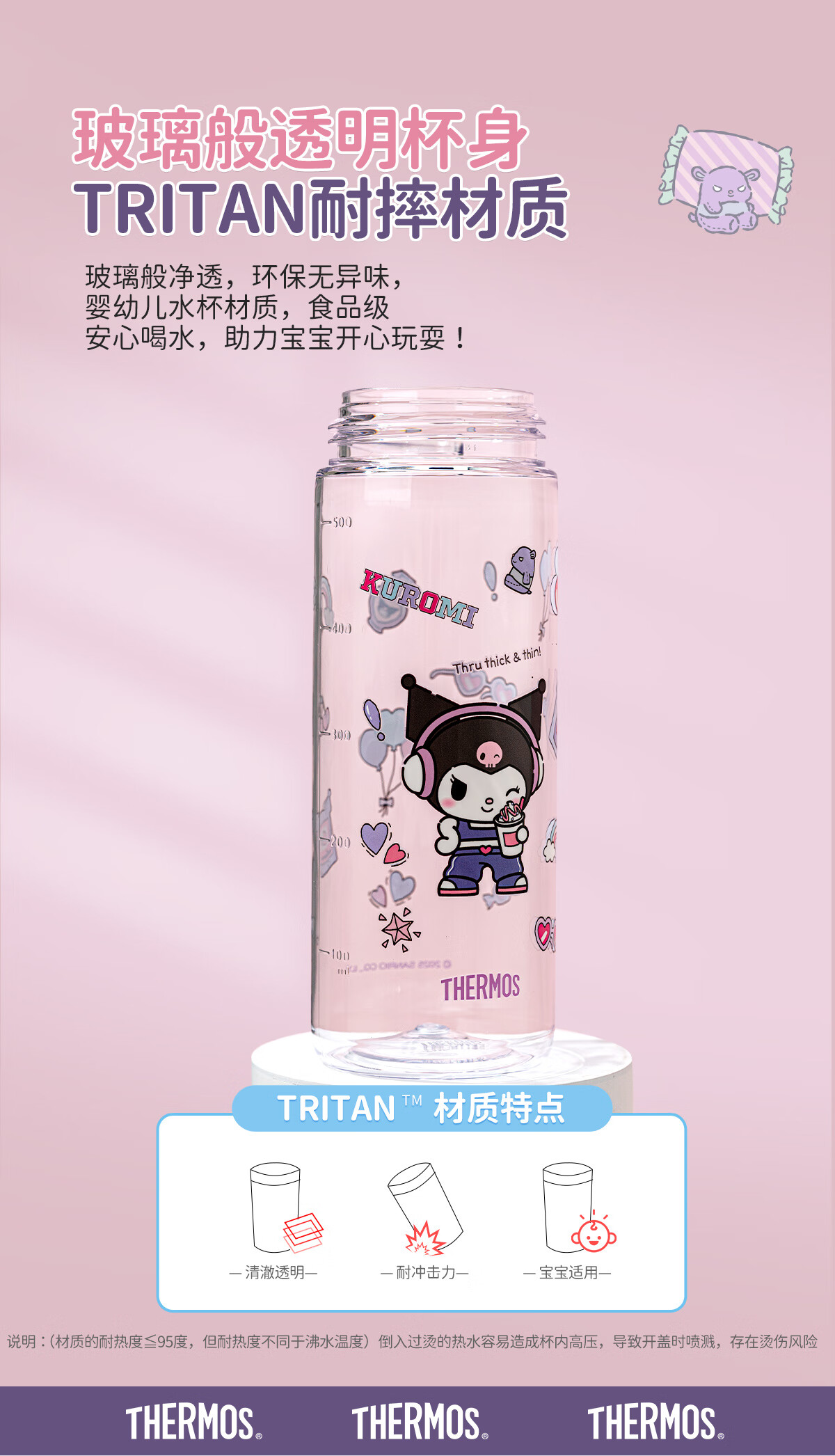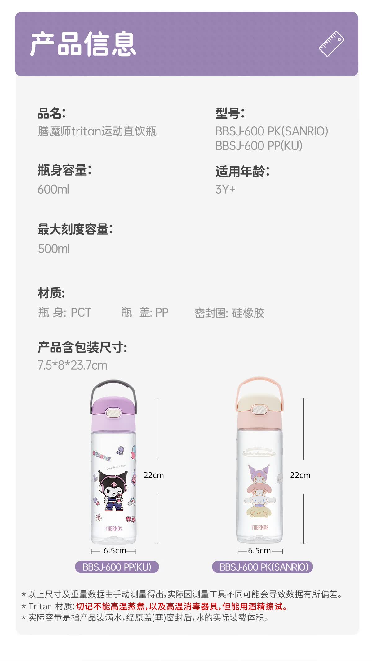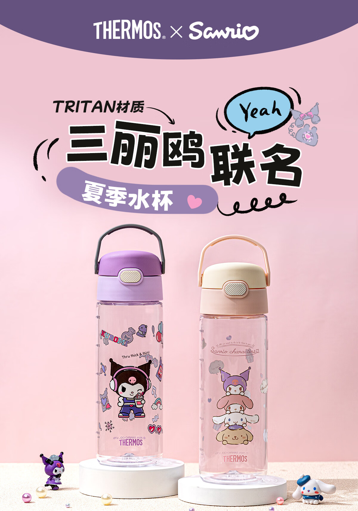 膳魔师(THERMOS)三丽鸥Tritan运动水杯直饮杯儿童学生塑料杯600ml粉