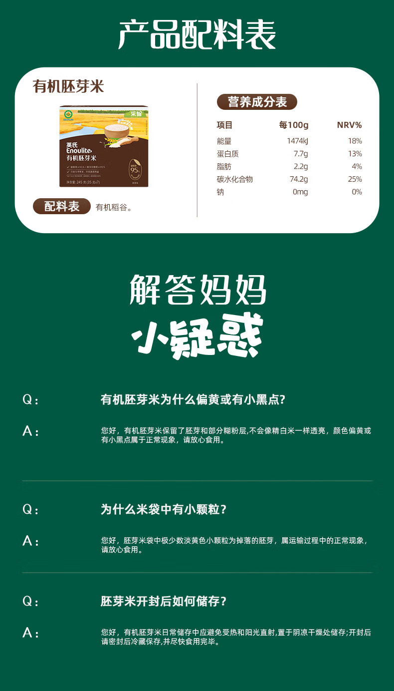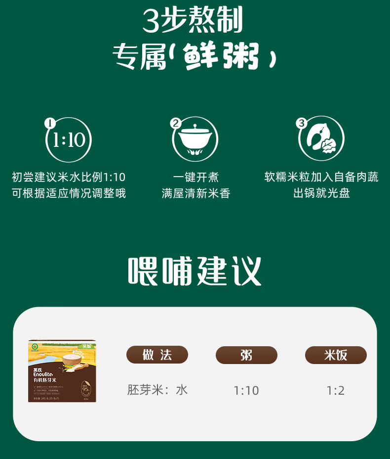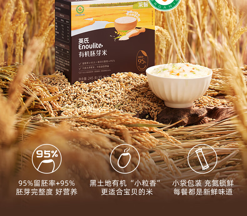 英氏有机胚芽米245g 营养粥大米粥 婴幼儿可食用谷物自制辅食
