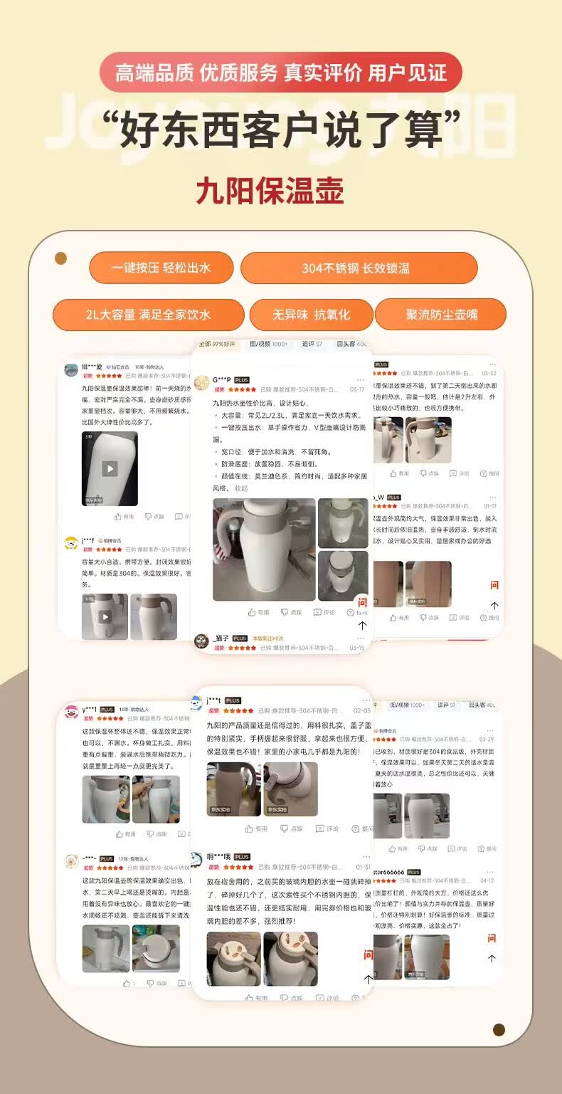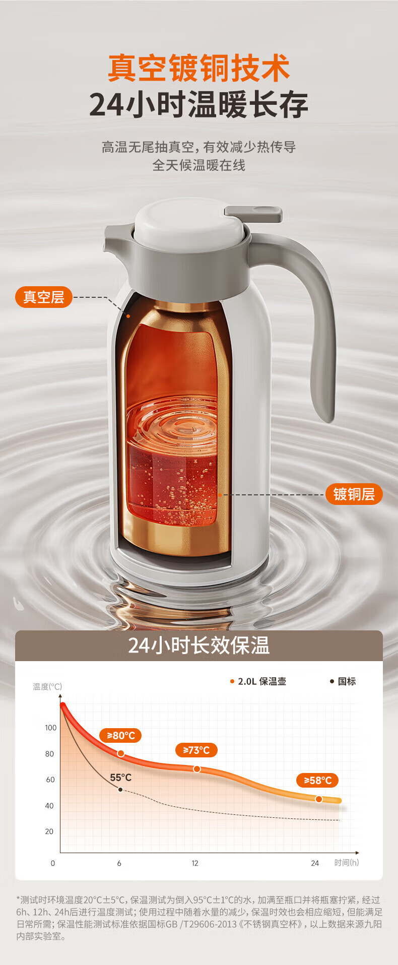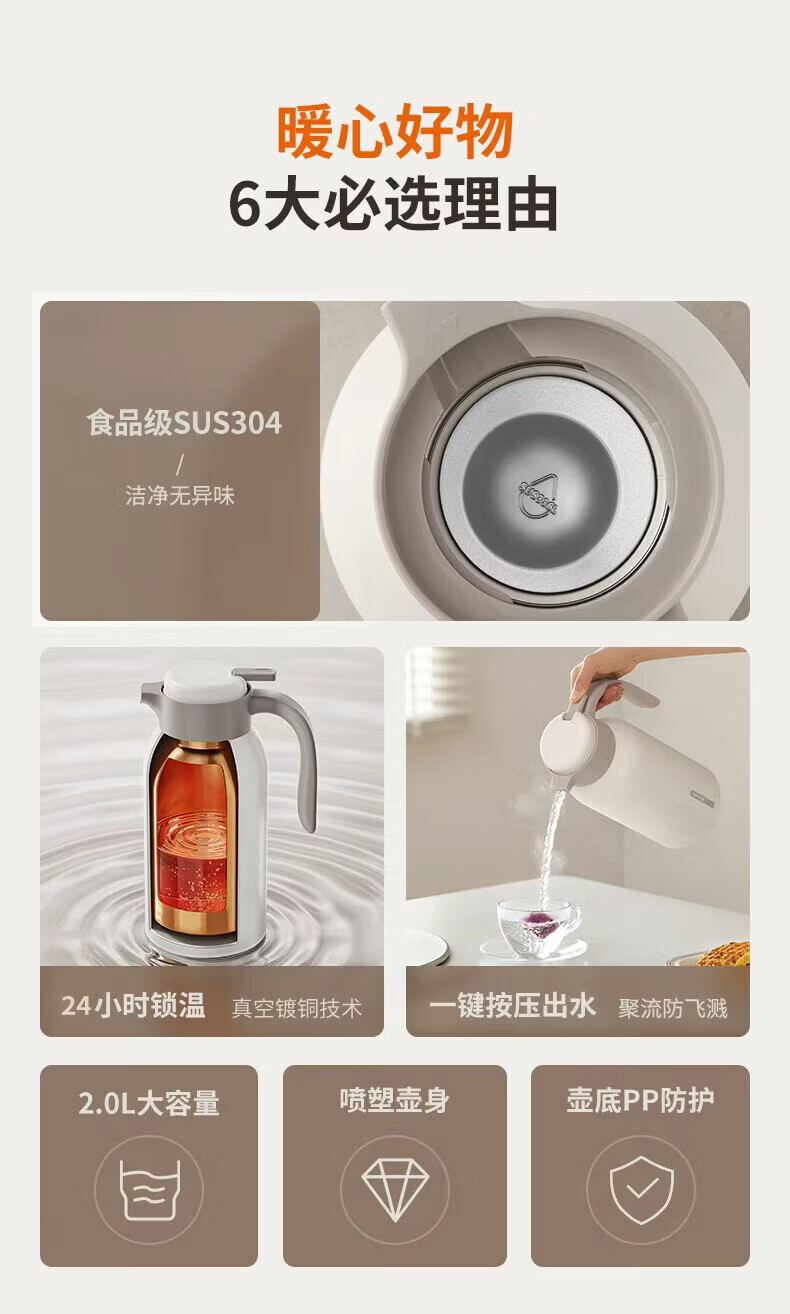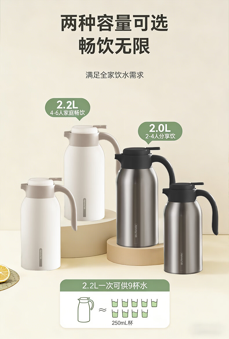 九阳(Joyoung)保温壶家用304不锈钢保温水壶家居暖水瓶户外大容量2L