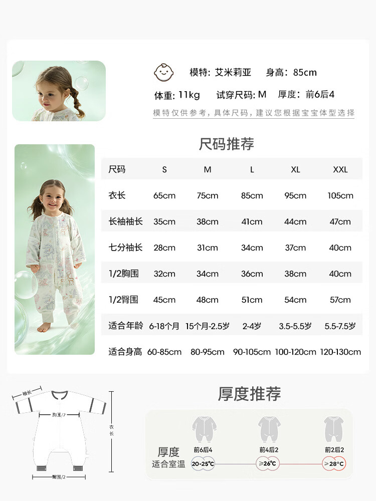 贝肽斯婴儿睡袋春夏胎脂皮儿童分腿睡袋婴幼儿防踢被睡衣前6后4 林声XL