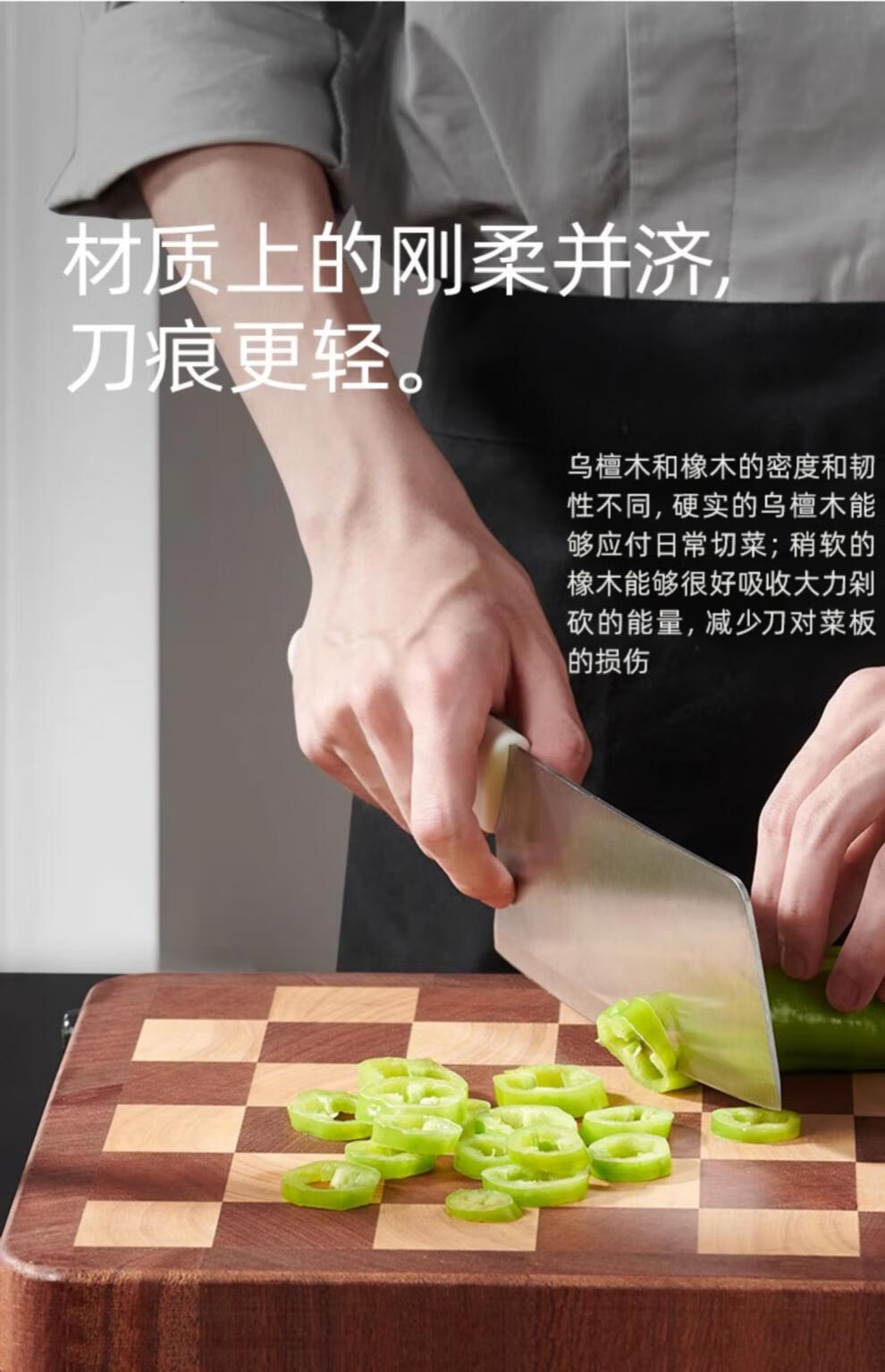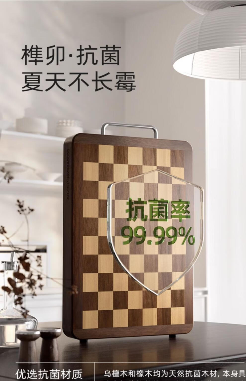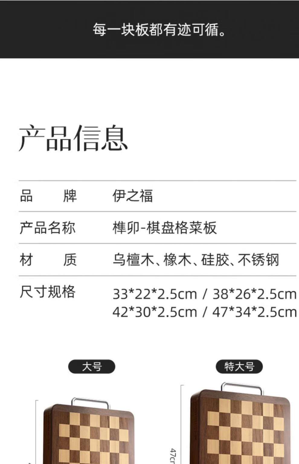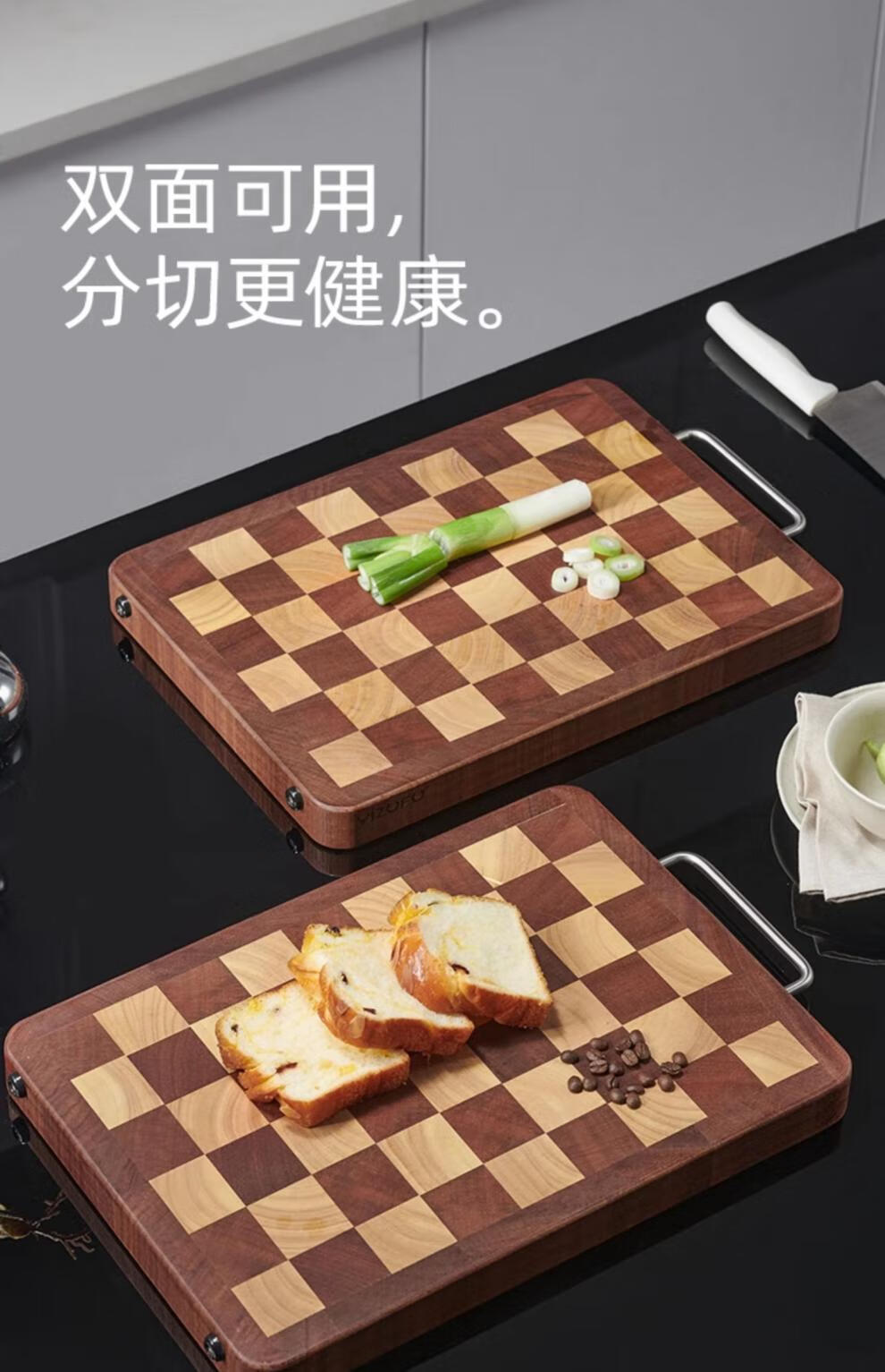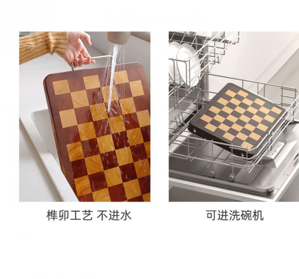 日本乌檀木菜板防霉家用实木砧板双面切菜案板榫卯棋盘格 小号33*22cm 榫卯不开裂 1-2人