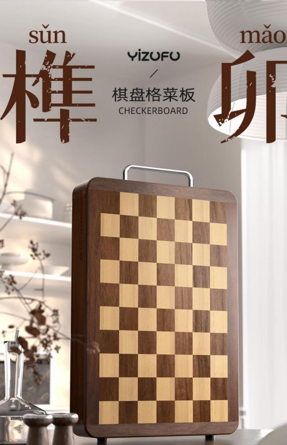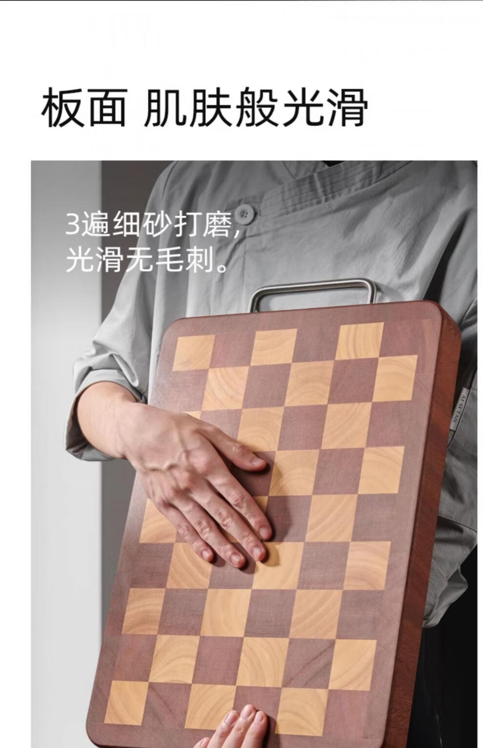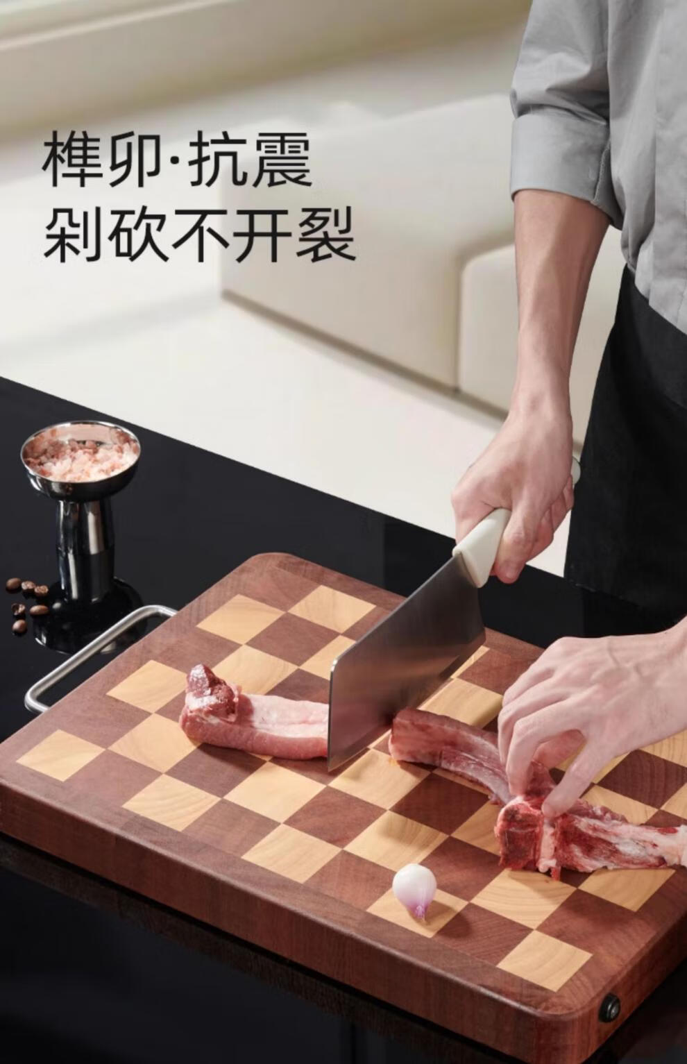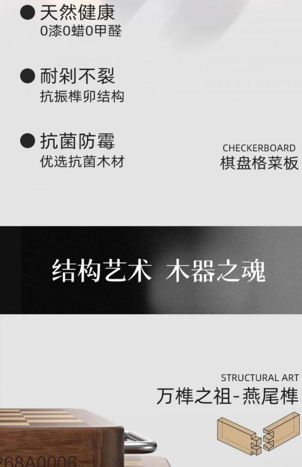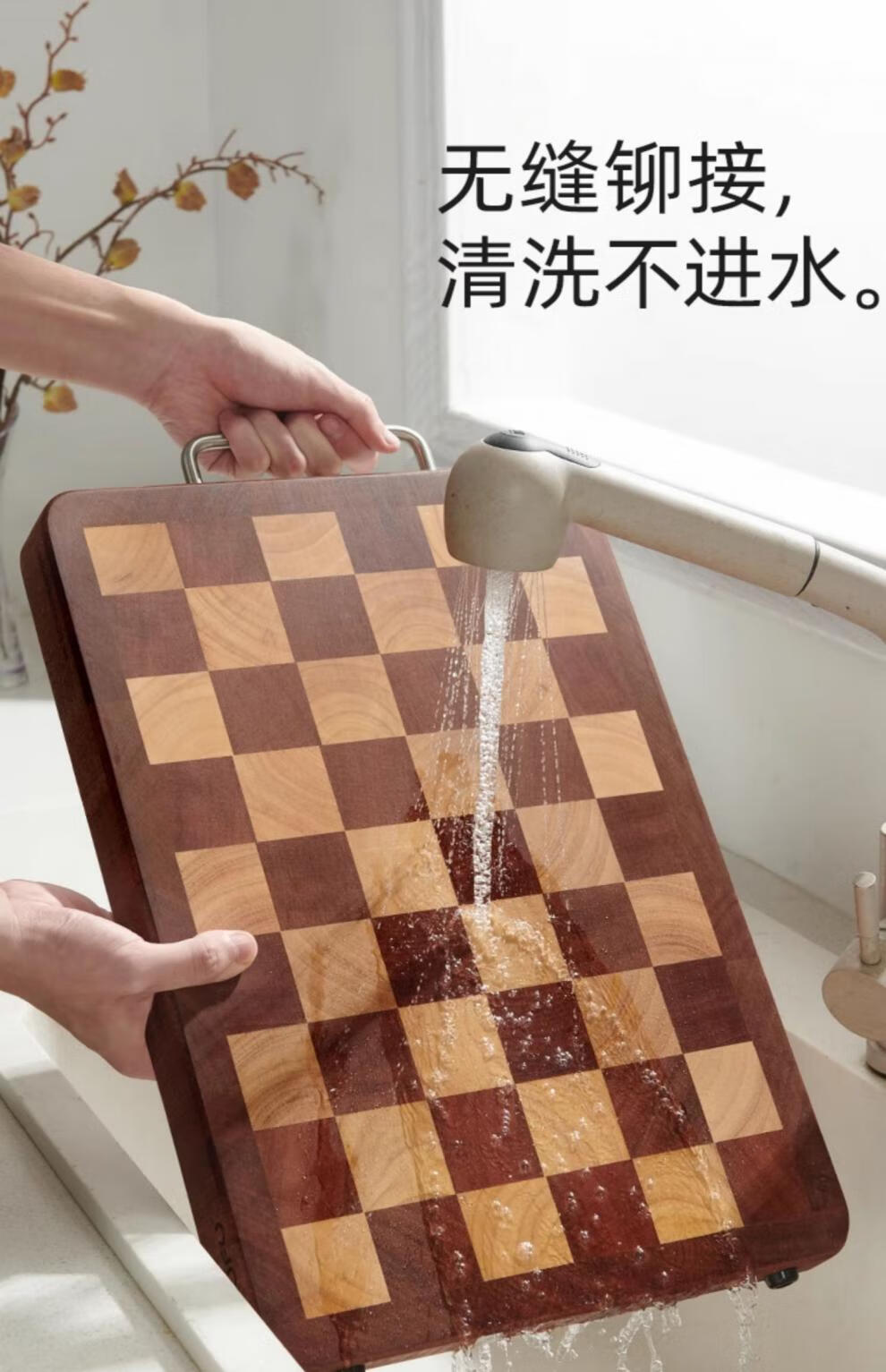 日本乌檀木菜板防霉家用实木砧板双面切菜案板榫卯棋盘格 小号33*22cm 榫卯不开裂 1-2人