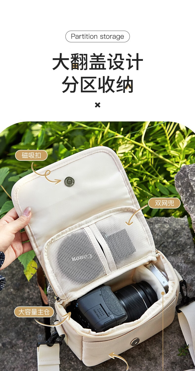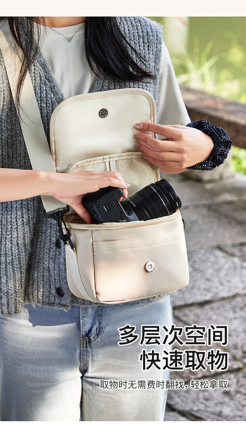 相伴一生单反相机包单肩小包休闲包斜挎摄影包微单包便携收纳包袋 黑色-中号 【一机两镜】