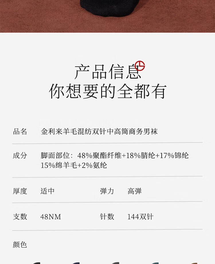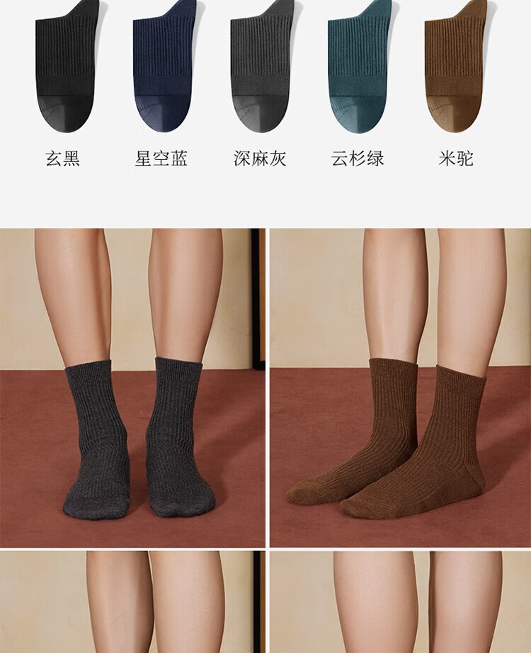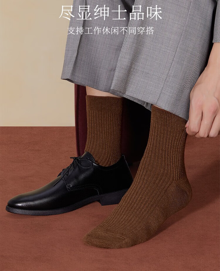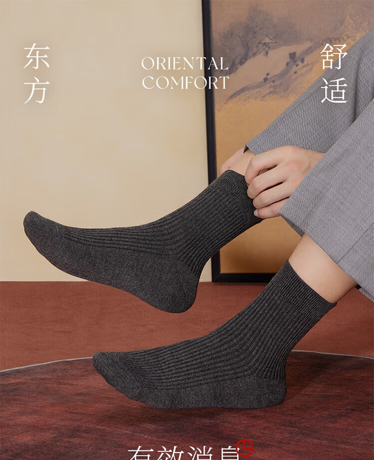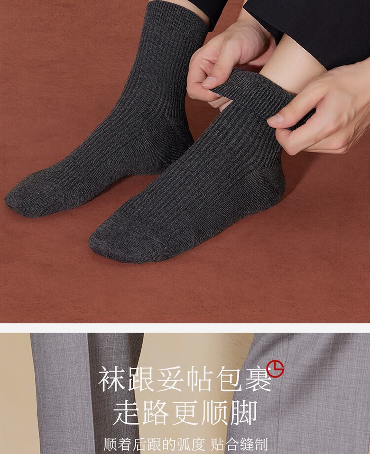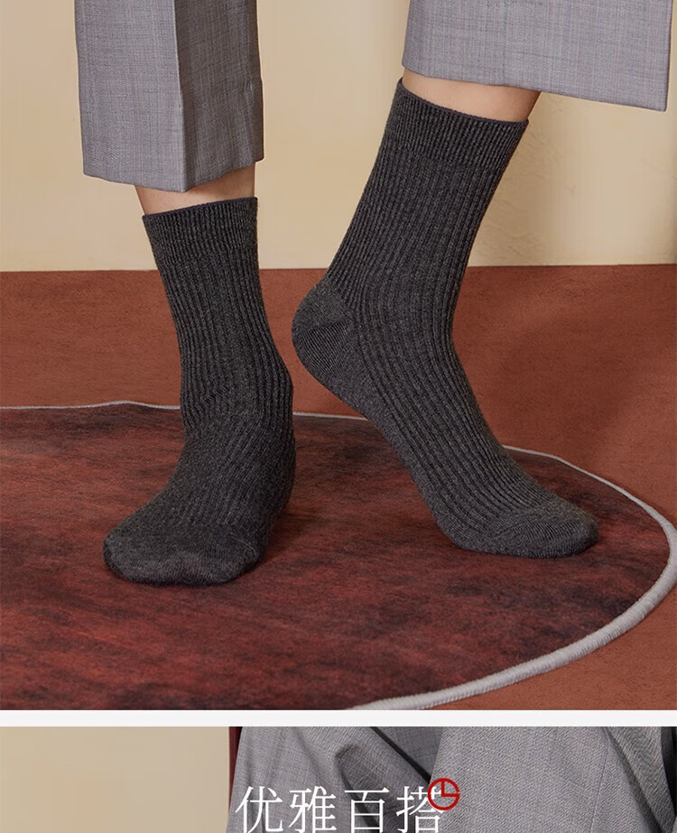金利来(Goldlion)袜子男中筒袜男士抽条双针长袜秋冬含羊毛保暖商务袜吸汗新 (黑色*2、藏青*2 ) 均码