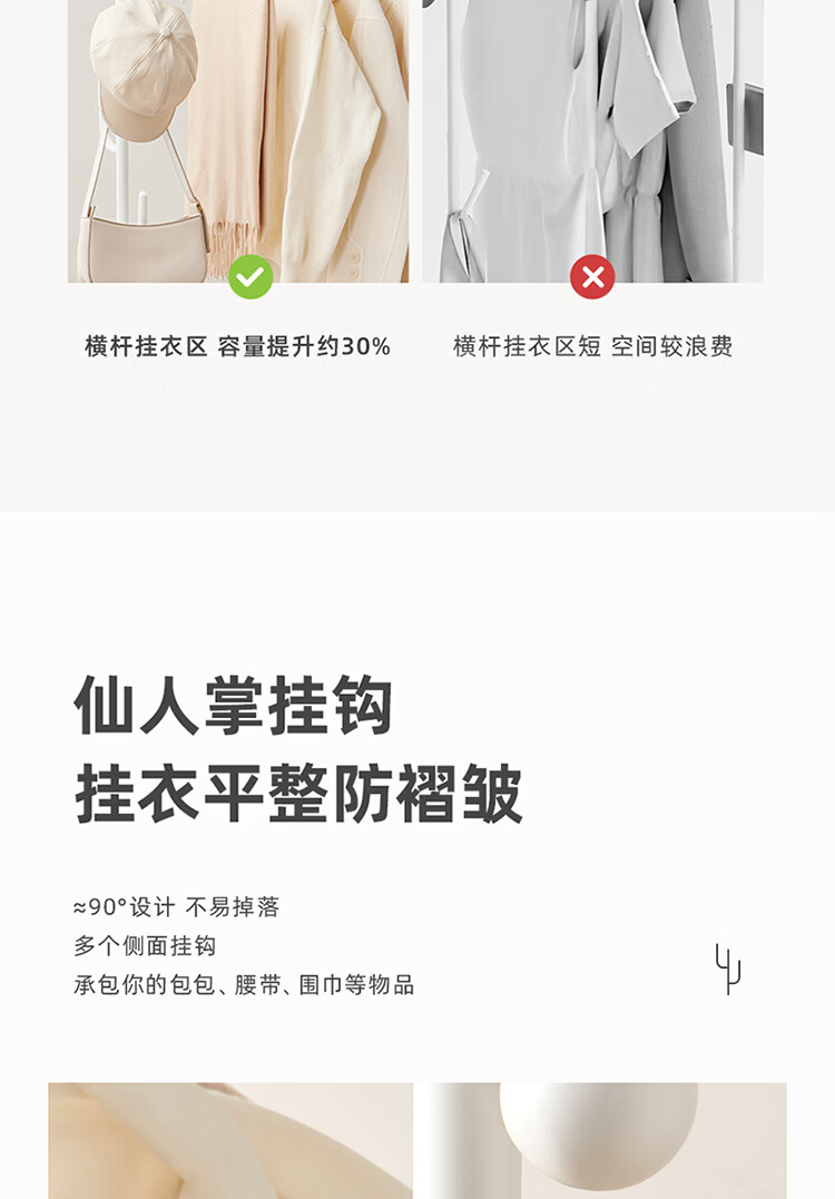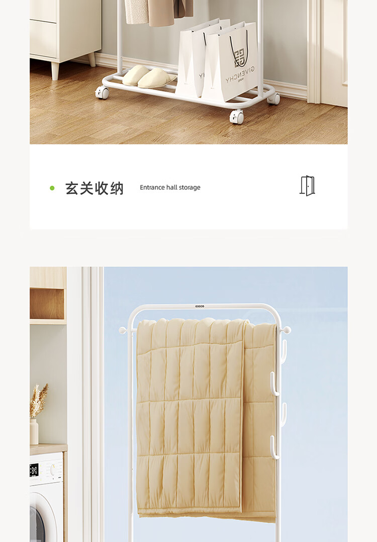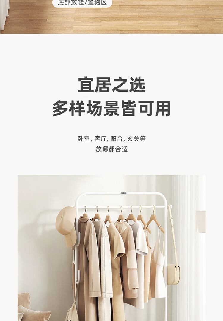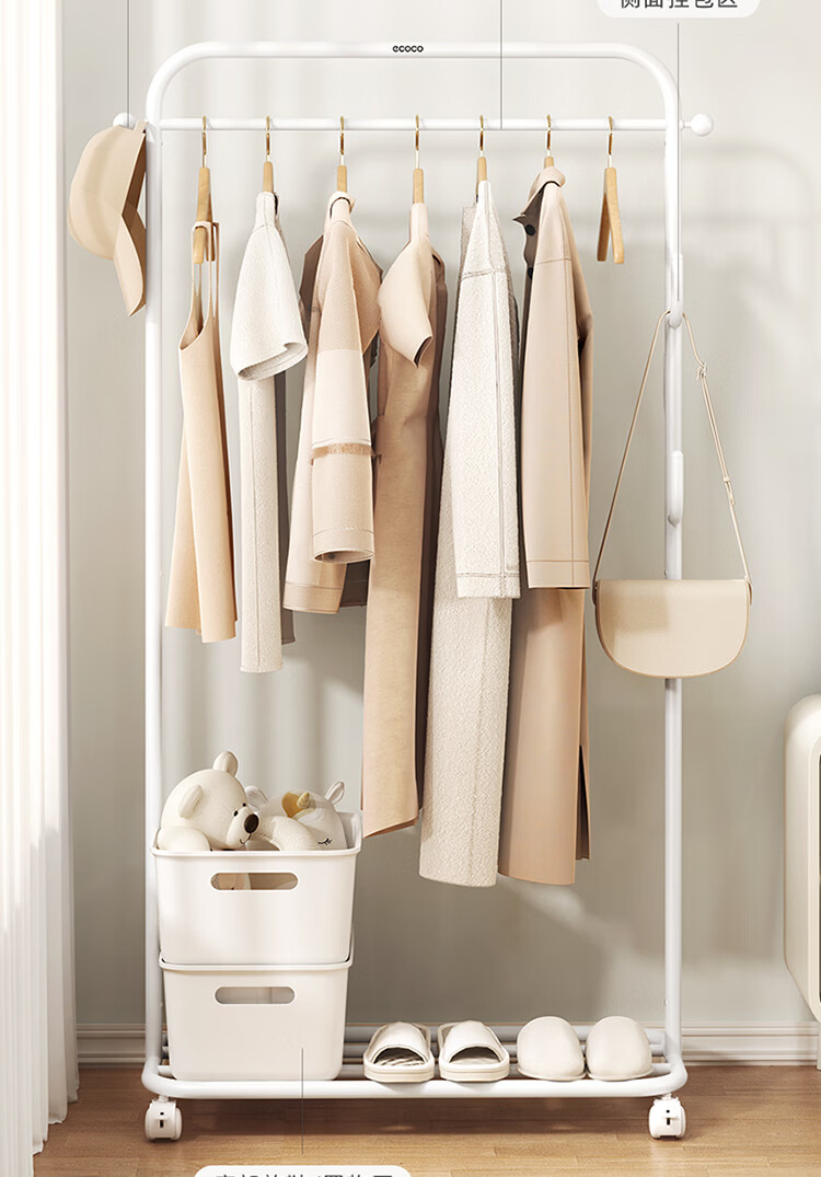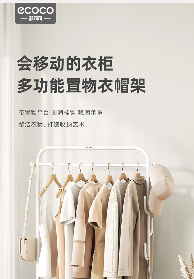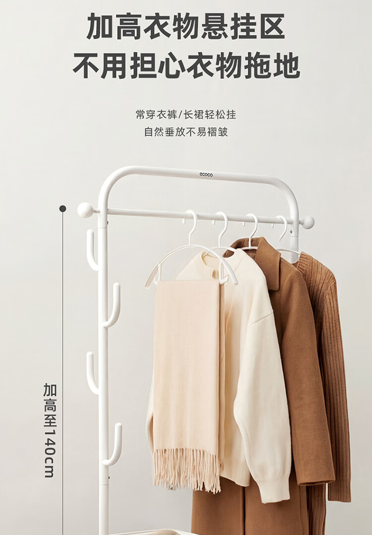 ecoco落地衣帽架卧室多功能加粗加厚结实鞋柜衣帽架一体轻奢挂衣架 60cm【加粗钢管+仙人掌挂钩】
