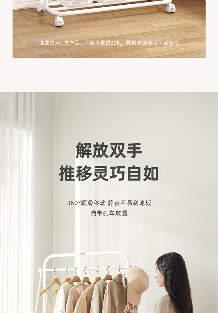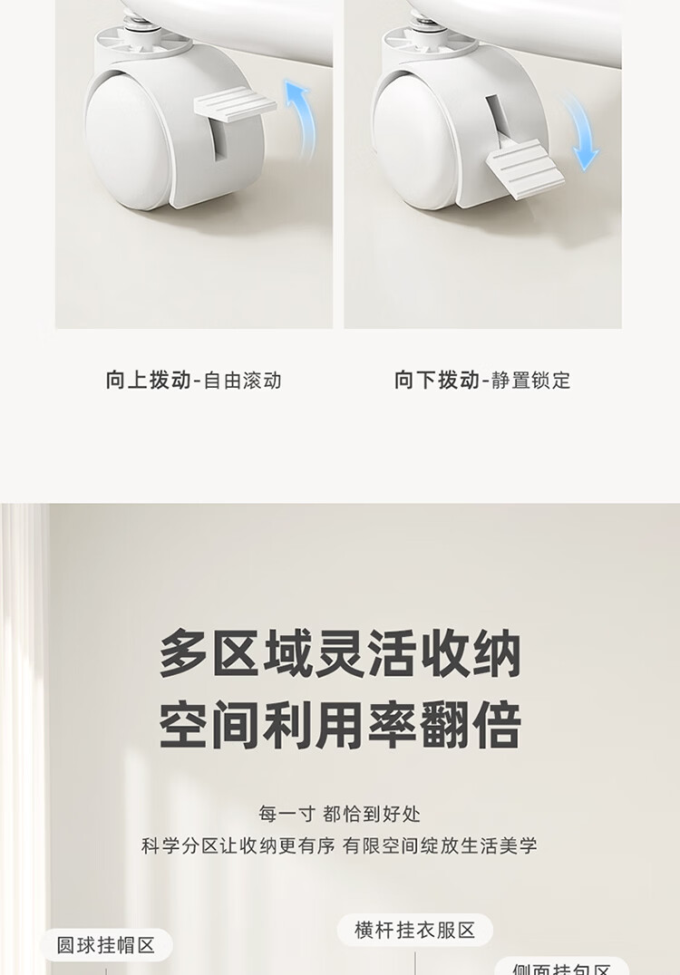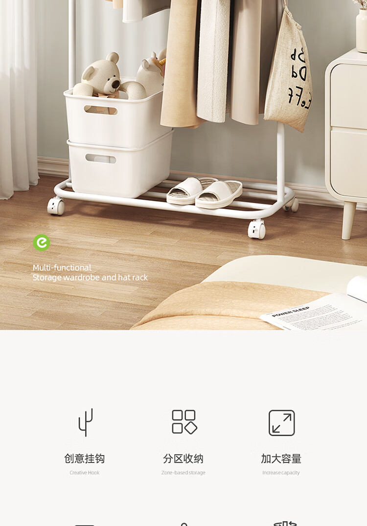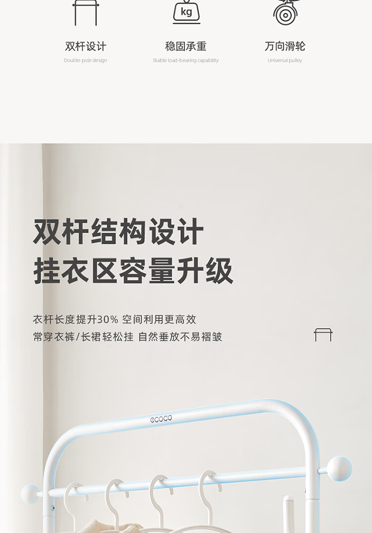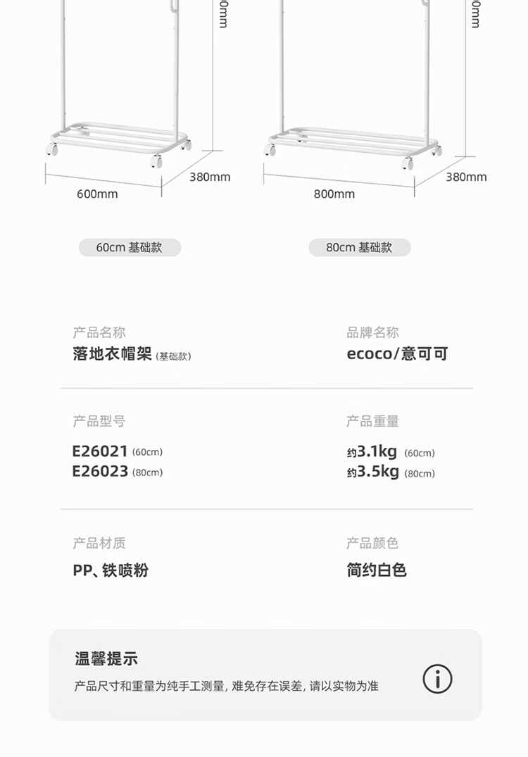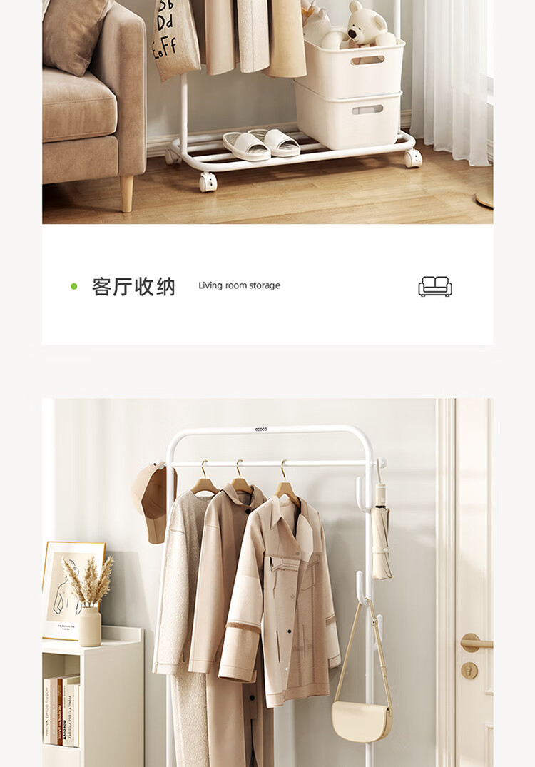ecoco落地衣帽架卧室多功能加粗加厚结实鞋柜衣帽架一体轻奢挂衣架 60cm【加粗钢管+仙人掌挂钩】