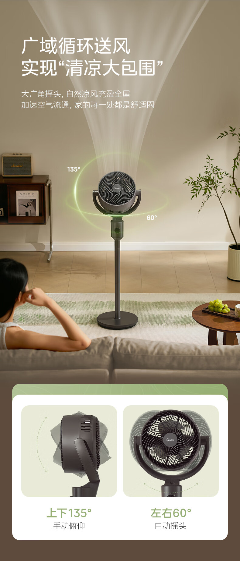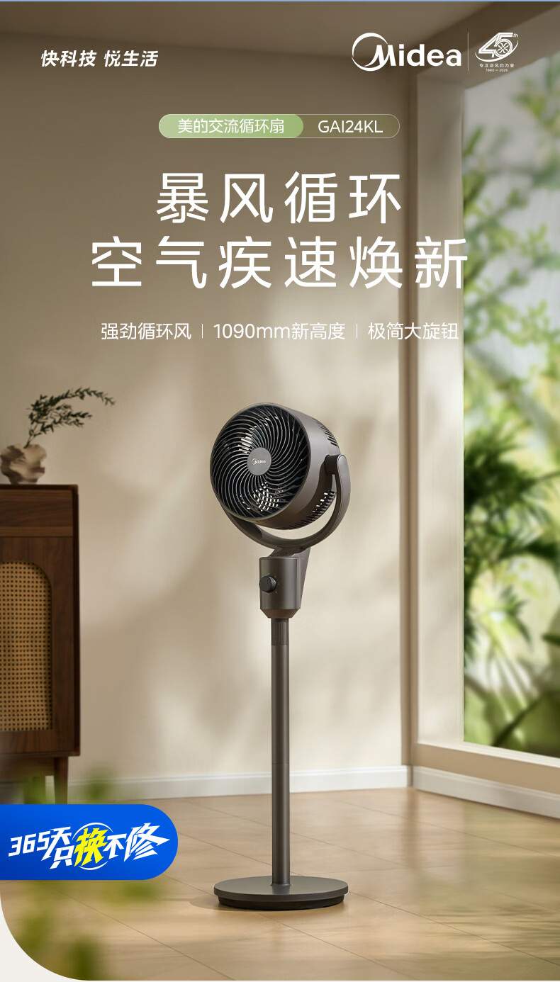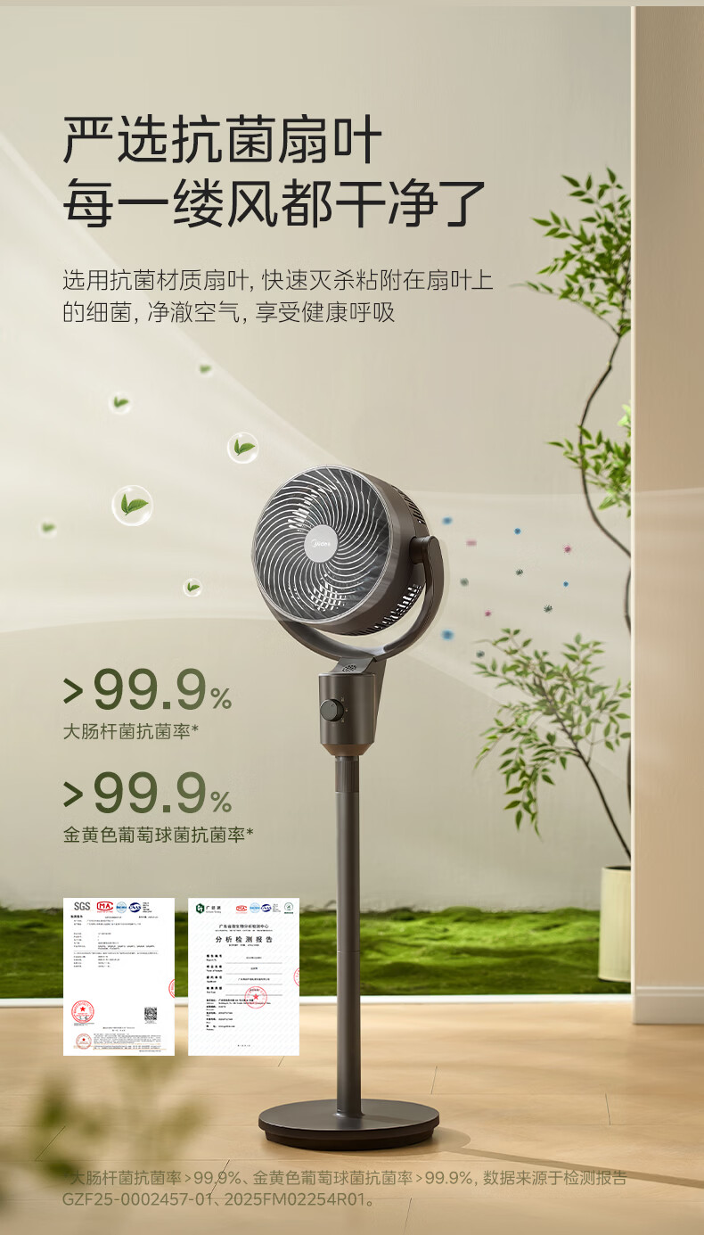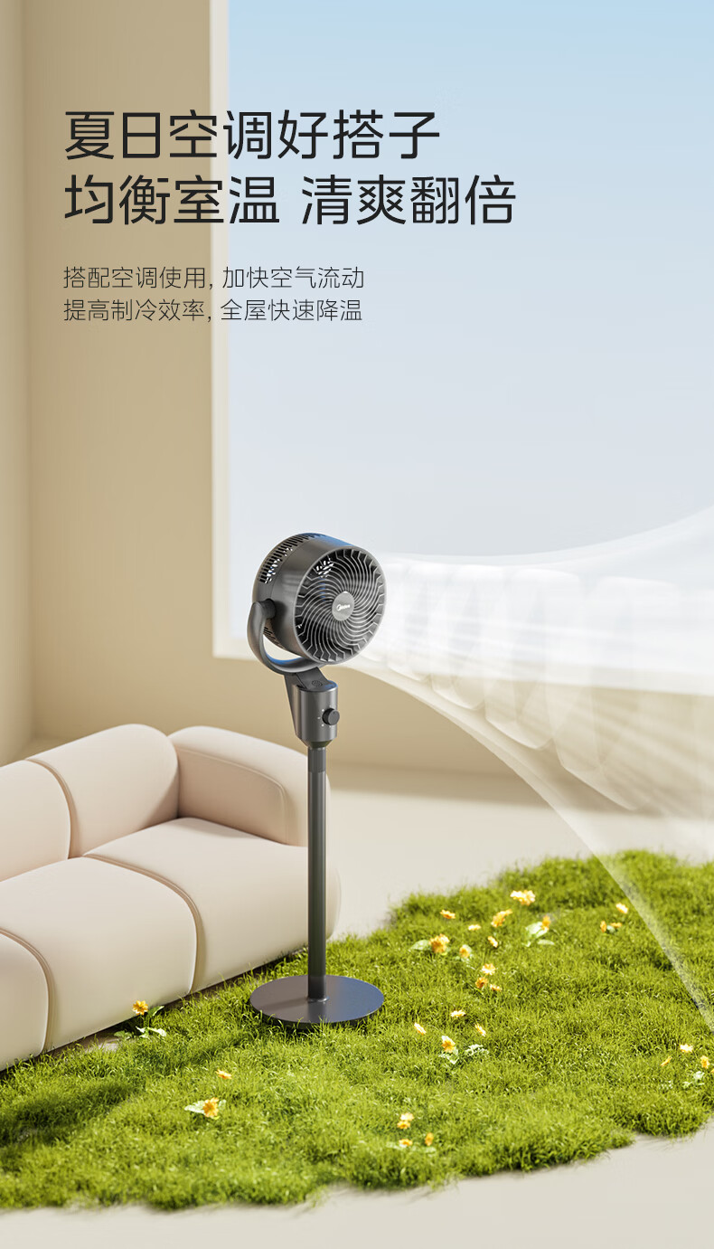 美的(Midea)空气循环扇 电风扇大风量家用立式升级加高落地扇卧室宿舍轻音净化抗菌桌面小型台式风扇 GAI24KL