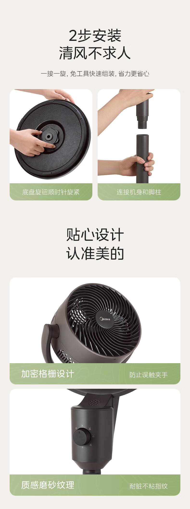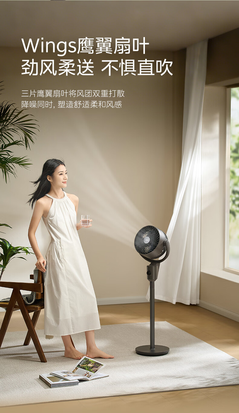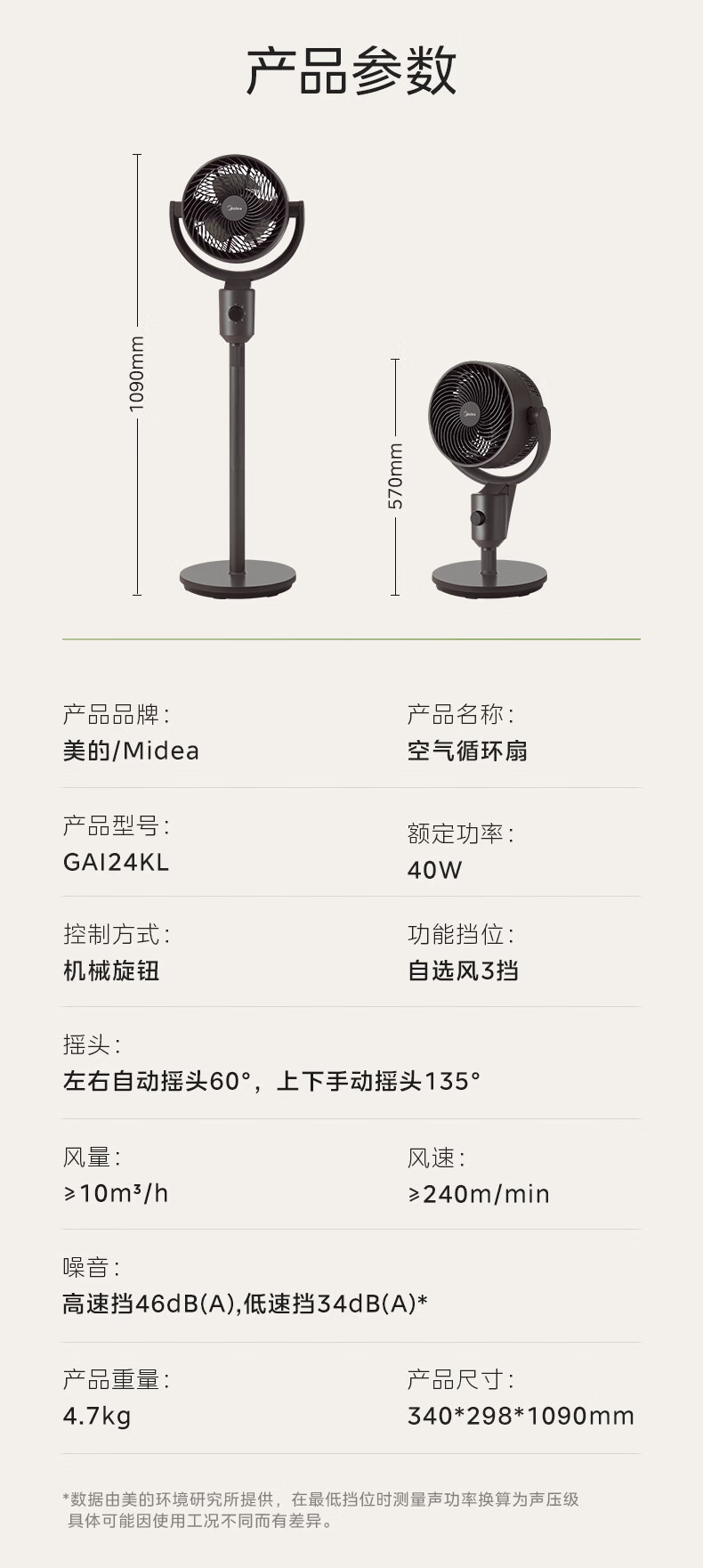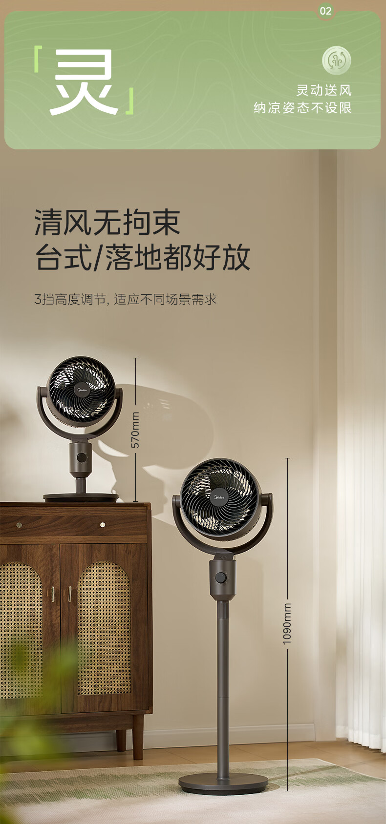 美的(Midea)空气循环扇 电风扇大风量家用立式升级加高落地扇卧室宿舍轻音净化抗菌桌面小型台式风扇 GAI24KL