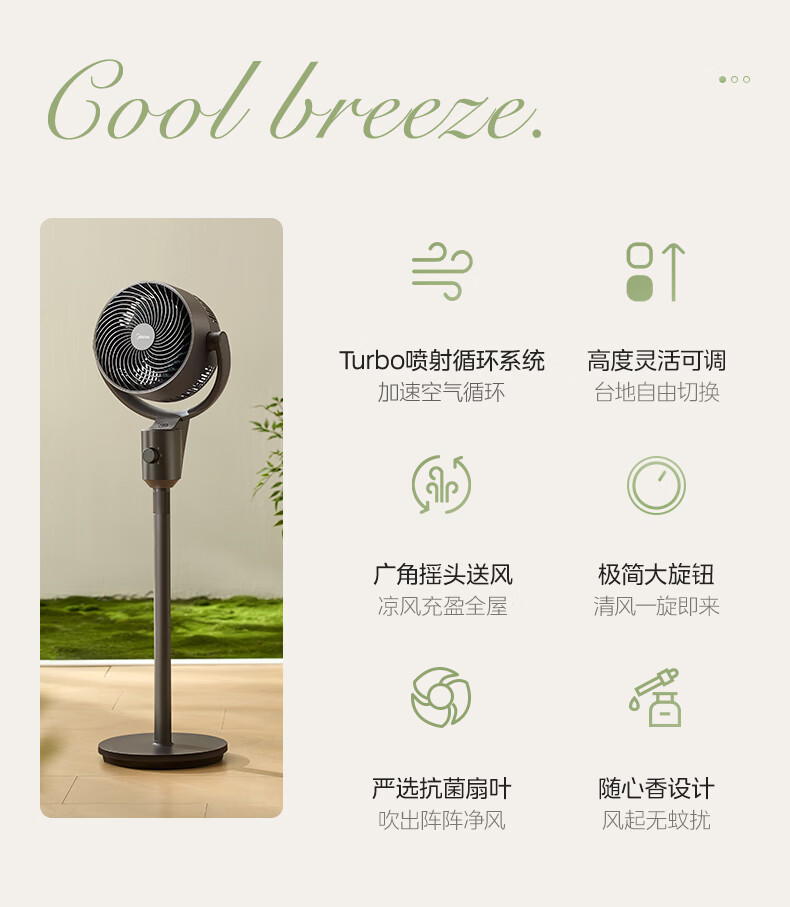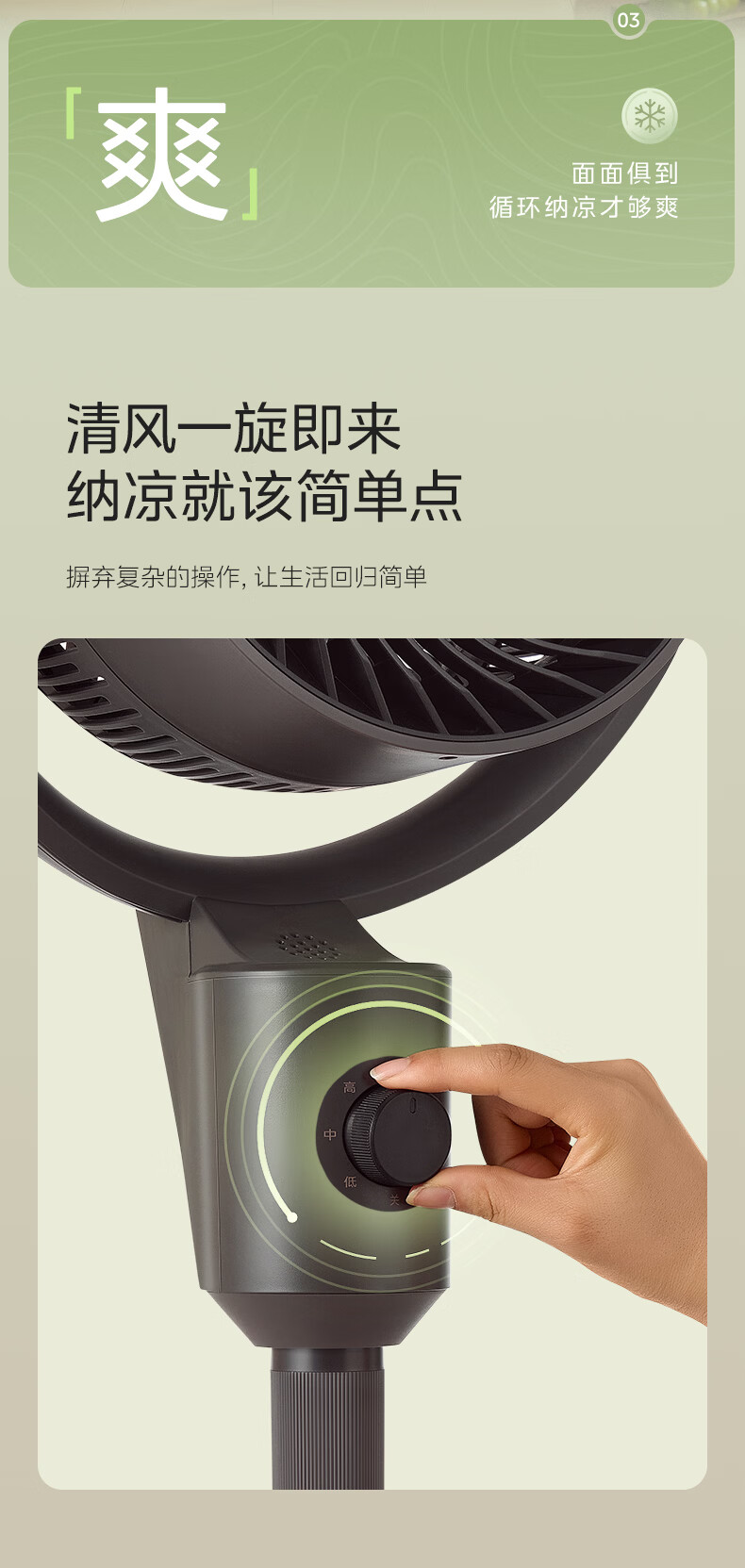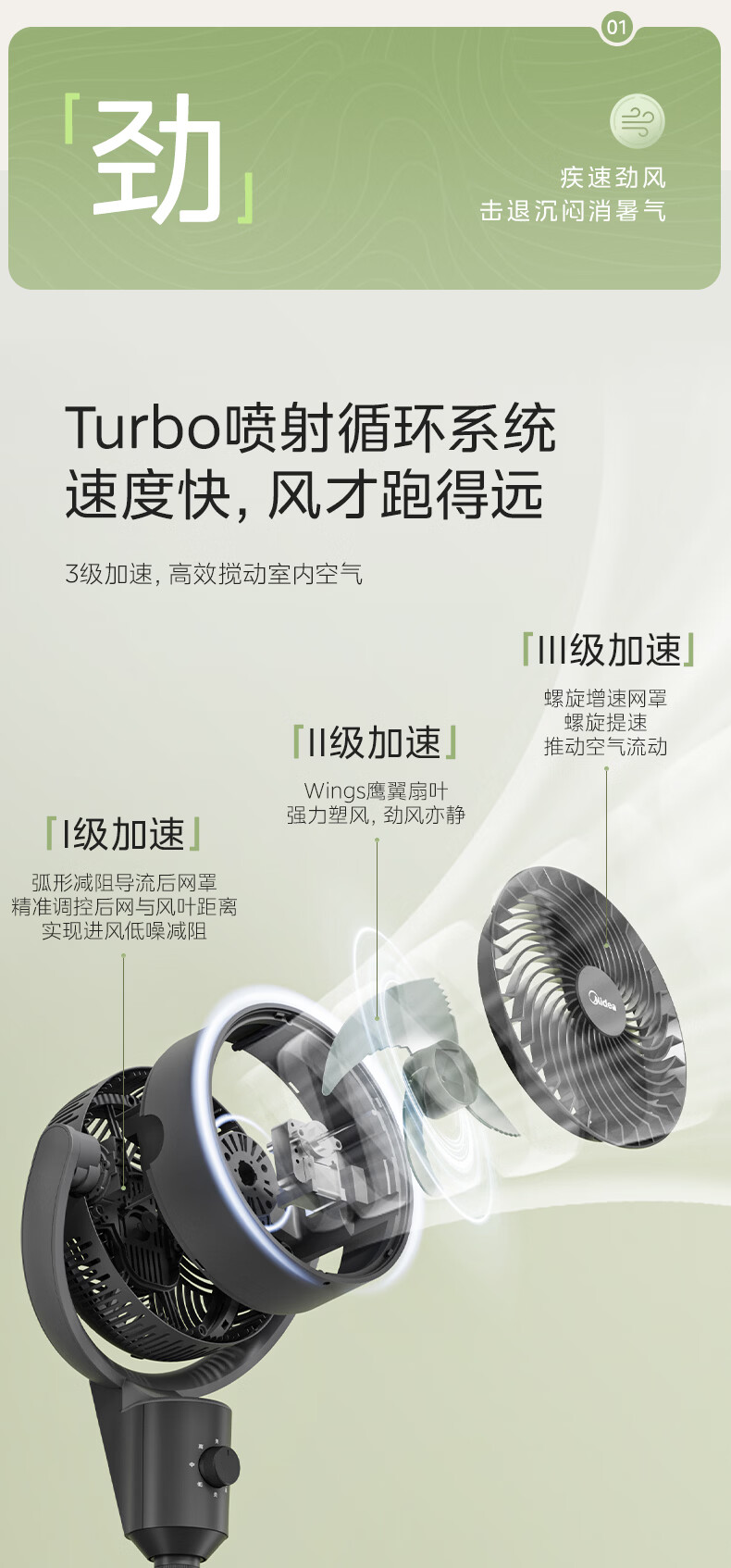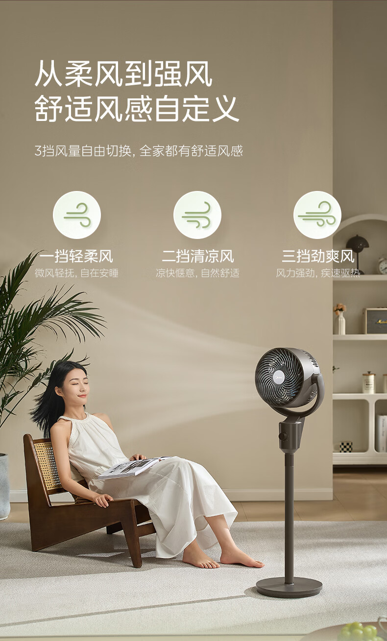 美的(Midea)空气循环扇 电风扇大风量家用立式升级加高落地扇卧室宿舍轻音净化抗菌桌面小型台式风扇 GAI24KL