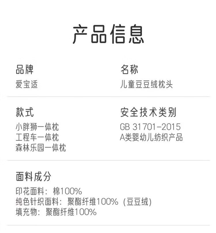 爱宝适儿童枕头午睡枕1-10岁小学生豆豆绒枕幼儿园枕头可水洗工程车S416