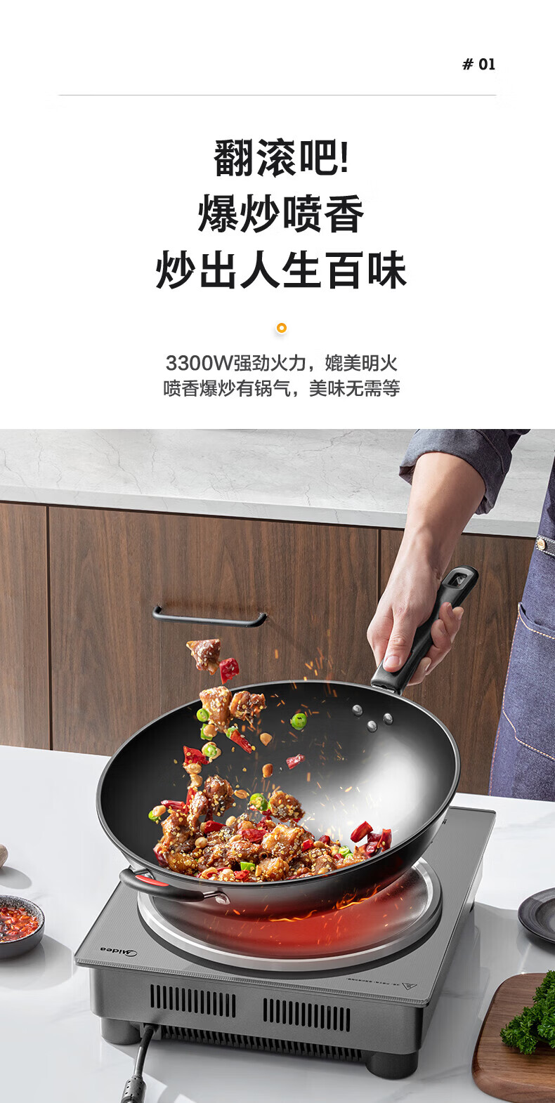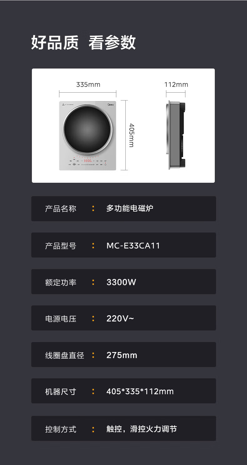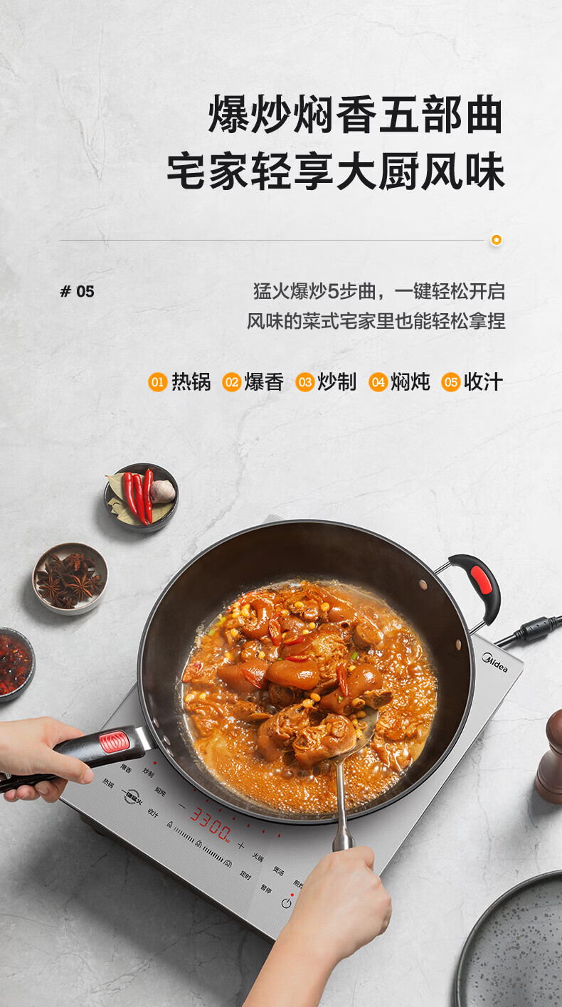 美的(Midea)凹面电磁炉 家用3500W大功率多功能大面板电陶炉电磁灶火锅炉烧水炒菜锅智能预约定时速热炒锅一体 【银色裸机款】3300W/3500W+凹灶