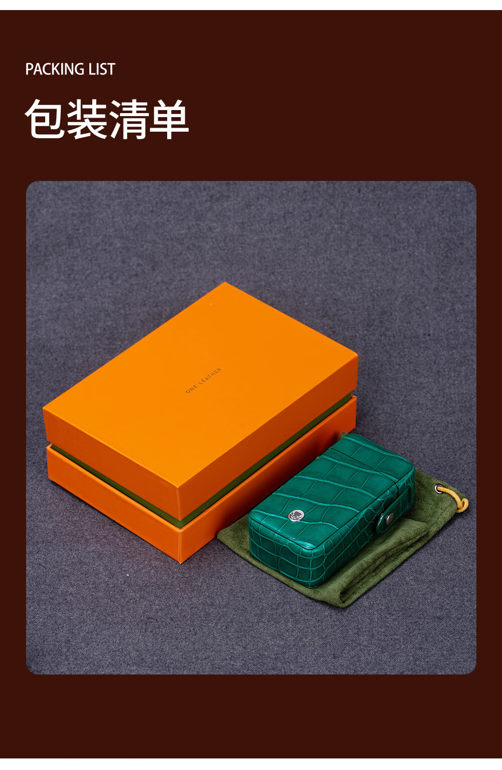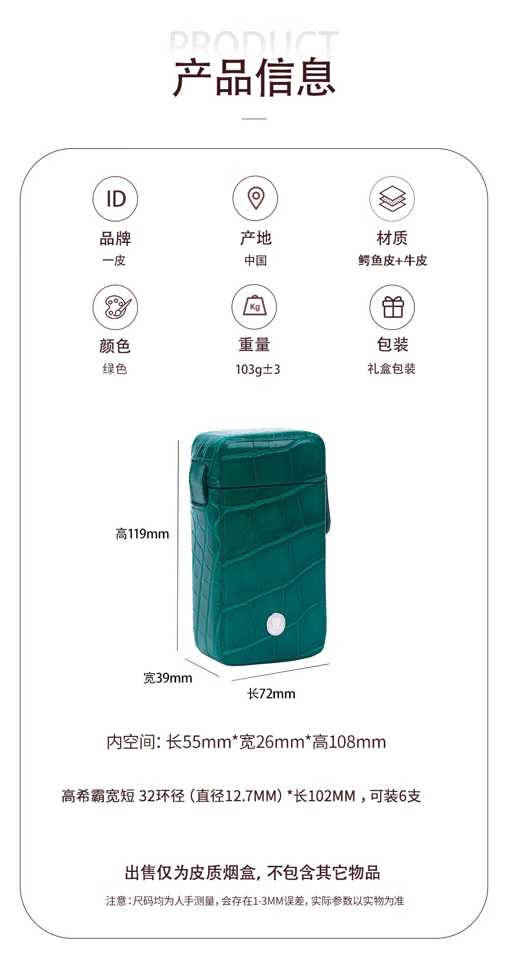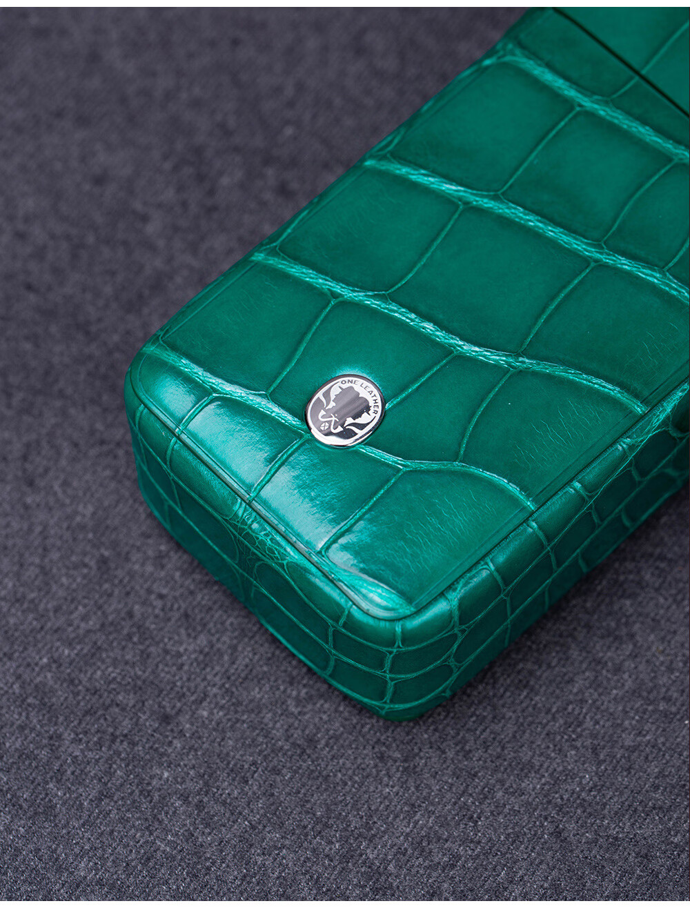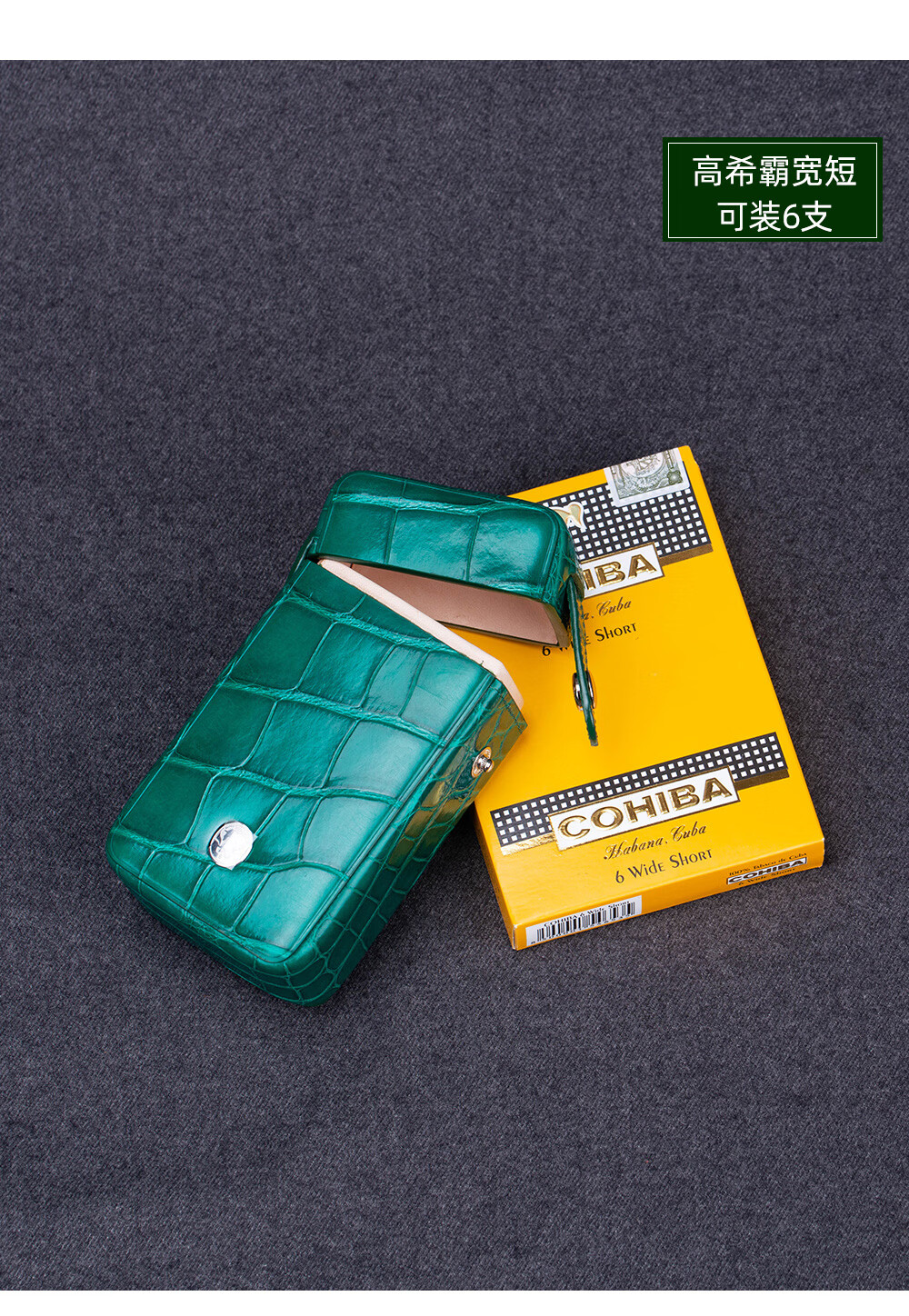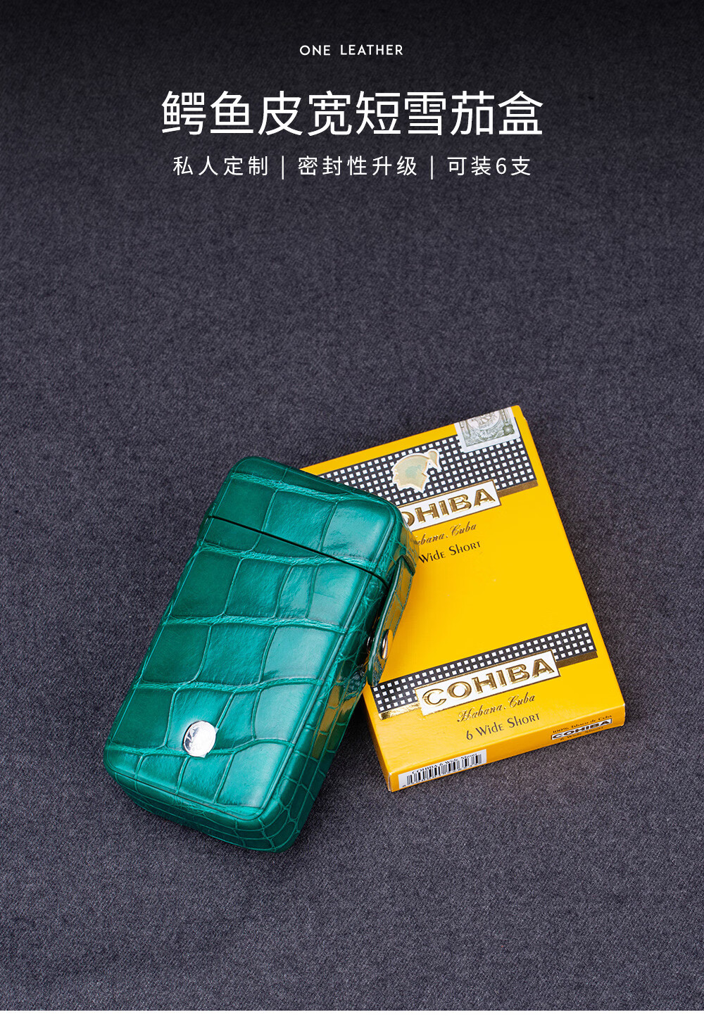一皮(ONE LEATHER)雪茄盒6支装 高希霸宽短普拉图雪茄便携盒 鳄鱼皮定制高级雪茄盒 绿色 6支 现货