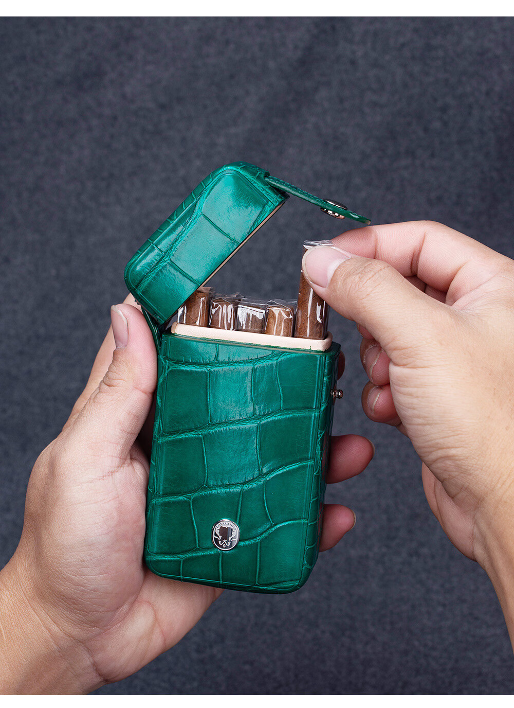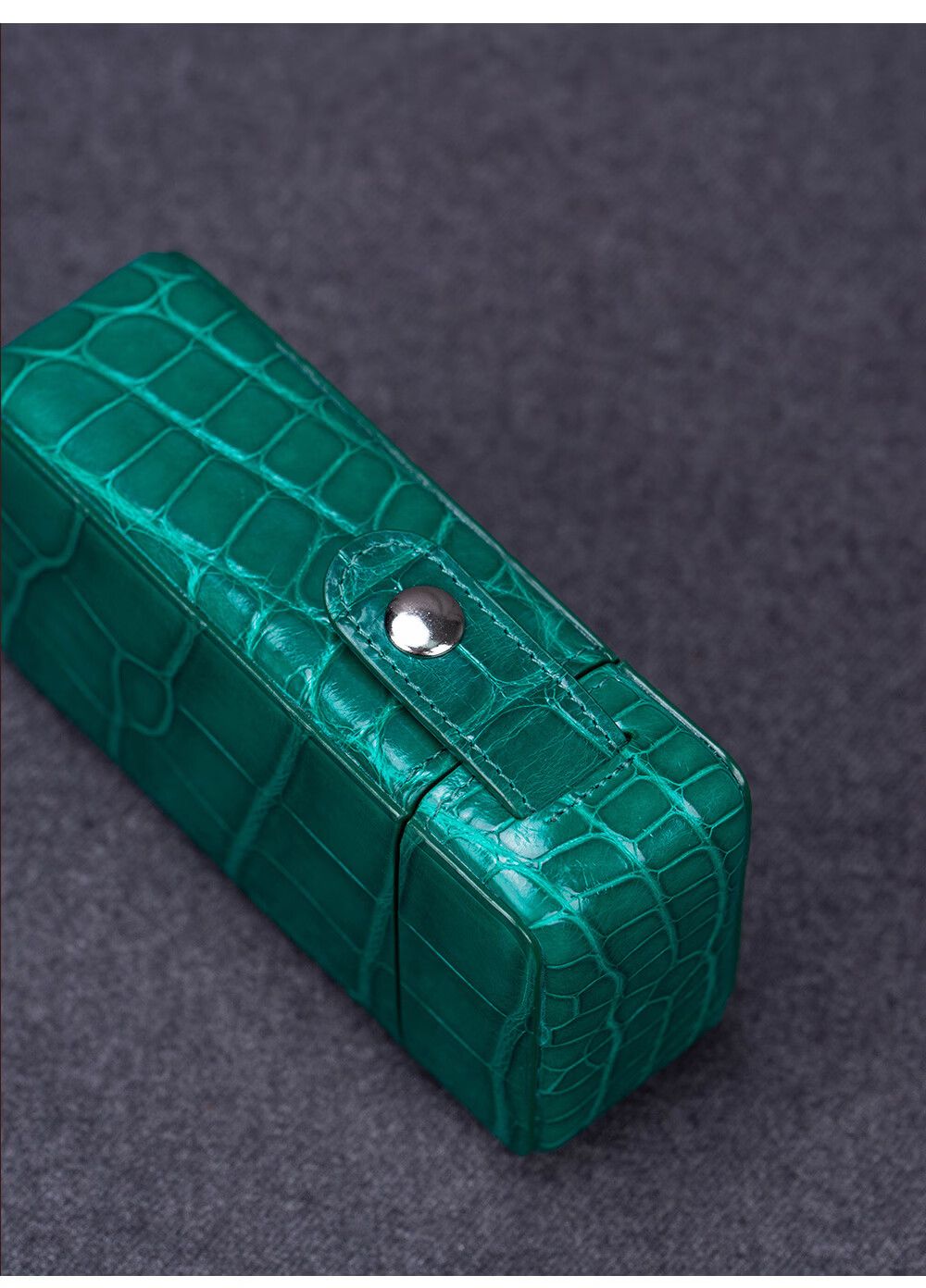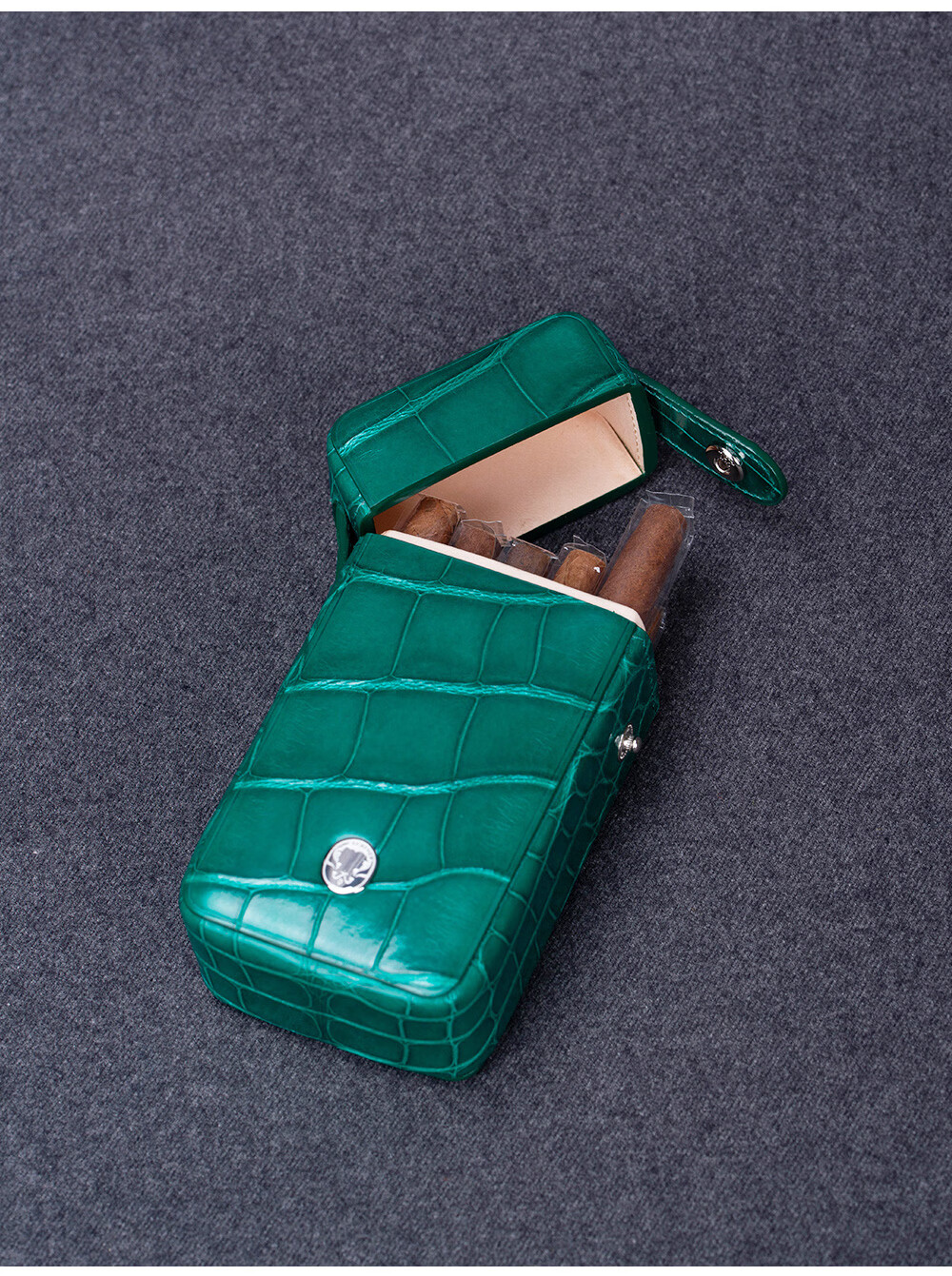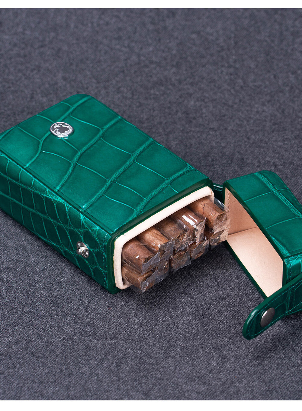 一皮(ONE LEATHER)雪茄盒6支装 高希霸宽短普拉图雪茄便携盒 鳄鱼皮定制高级雪茄盒 绿色 6支 现货