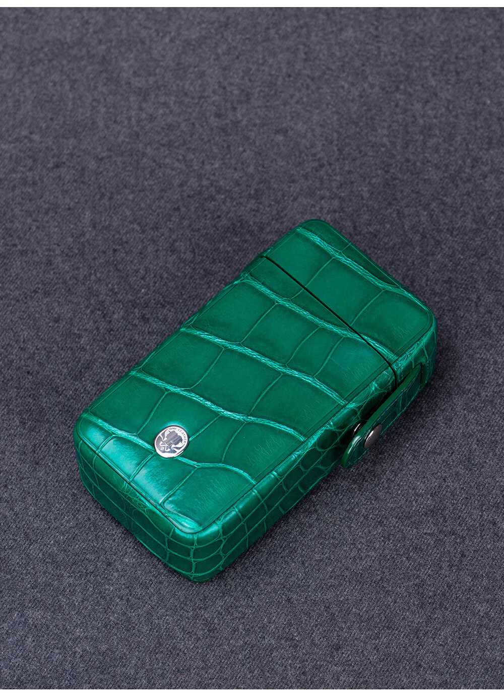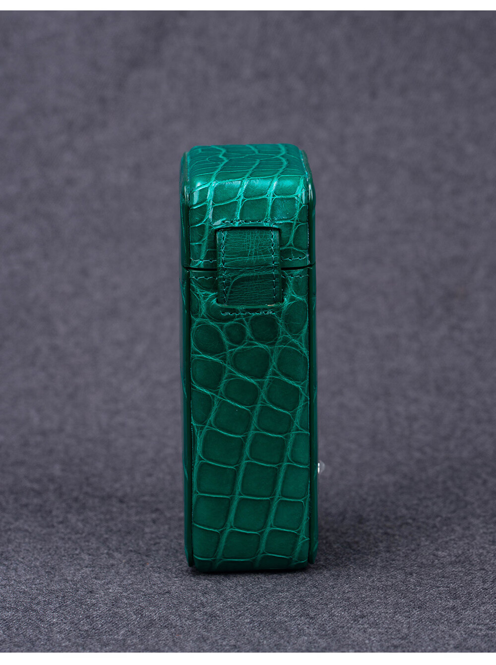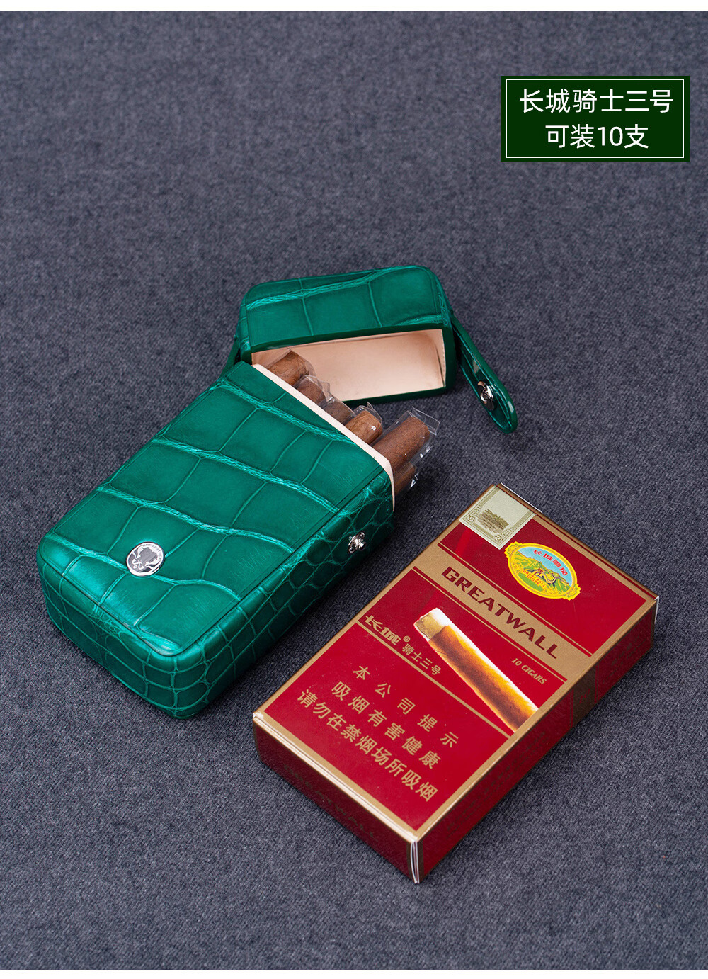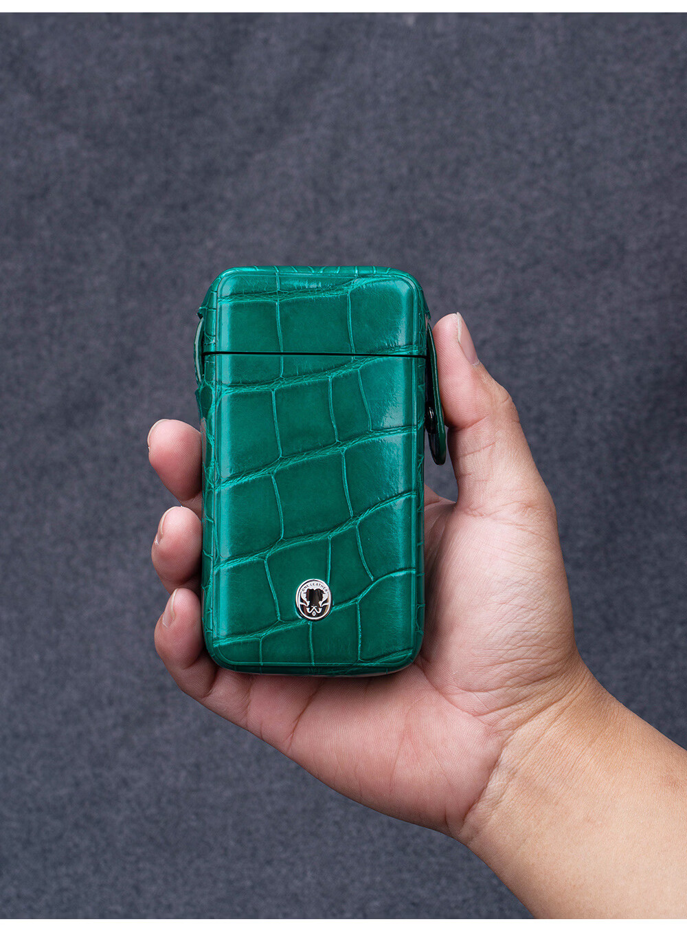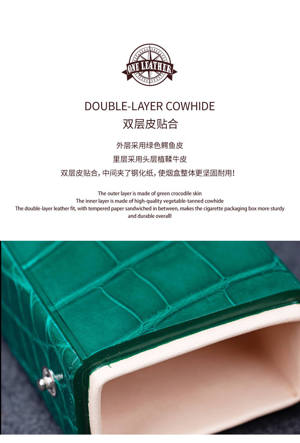 一皮(ONE LEATHER)雪茄盒6支装 高希霸宽短普拉图雪茄便携盒 鳄鱼皮定制高级雪茄盒 绿色 6支 现货