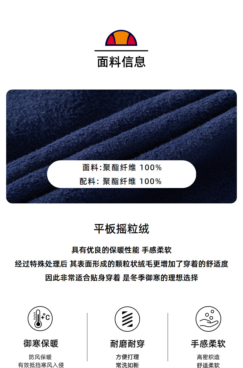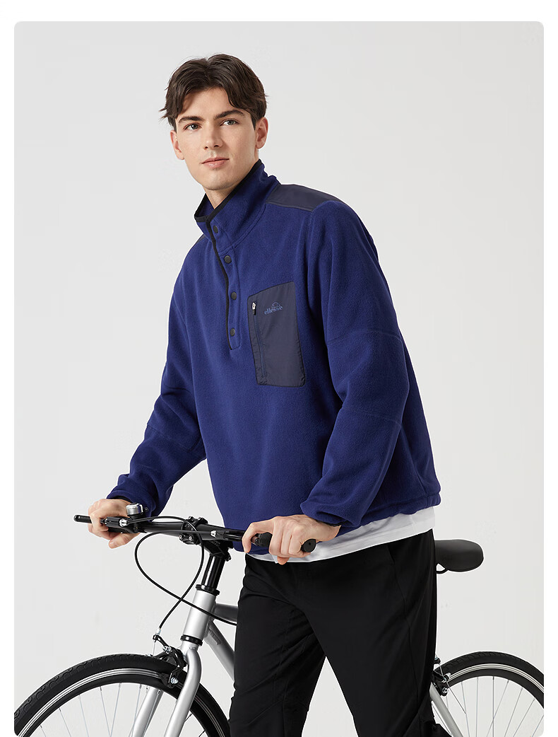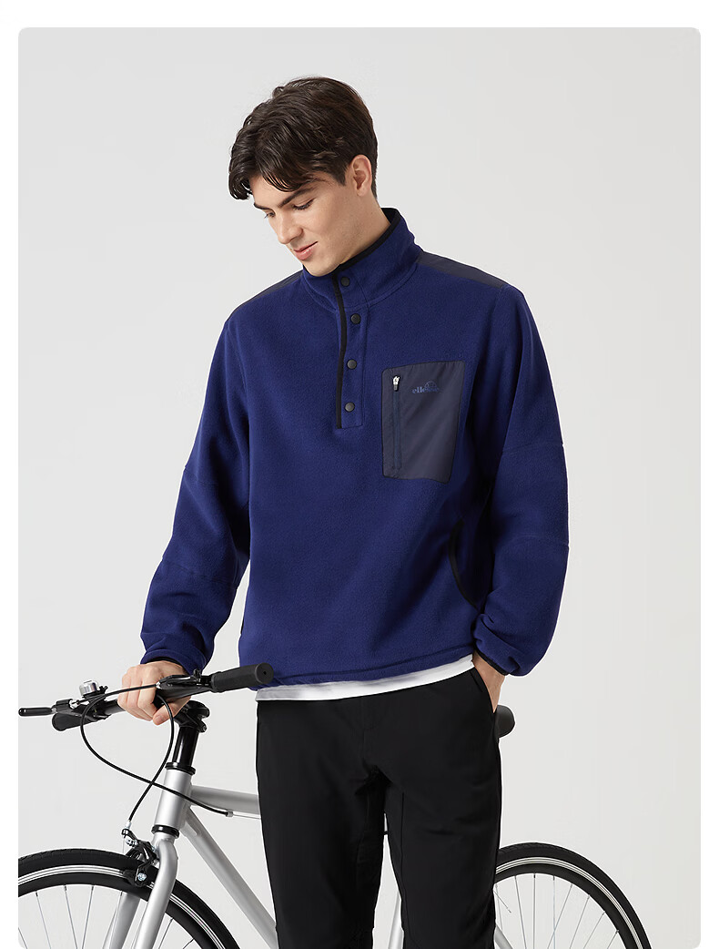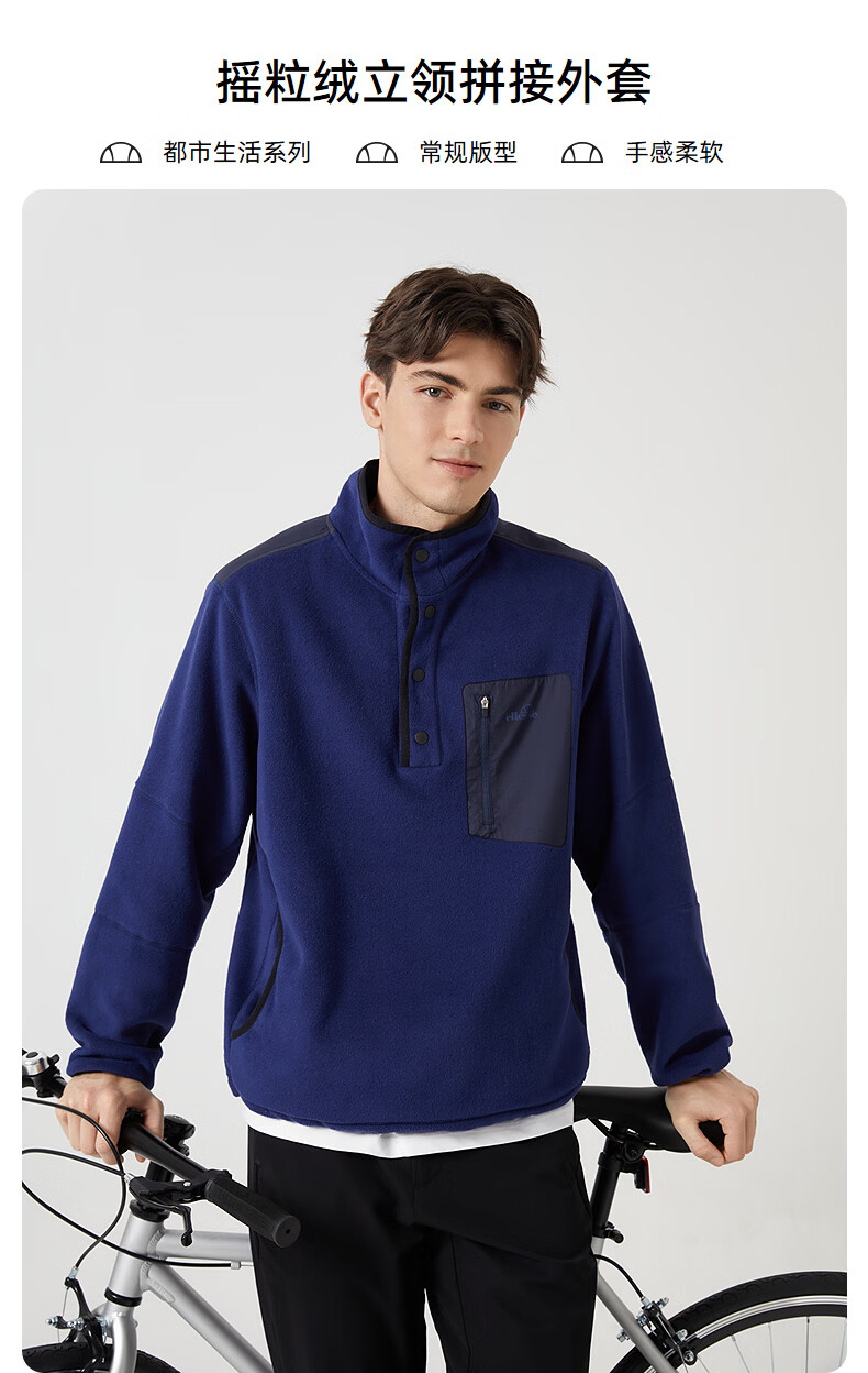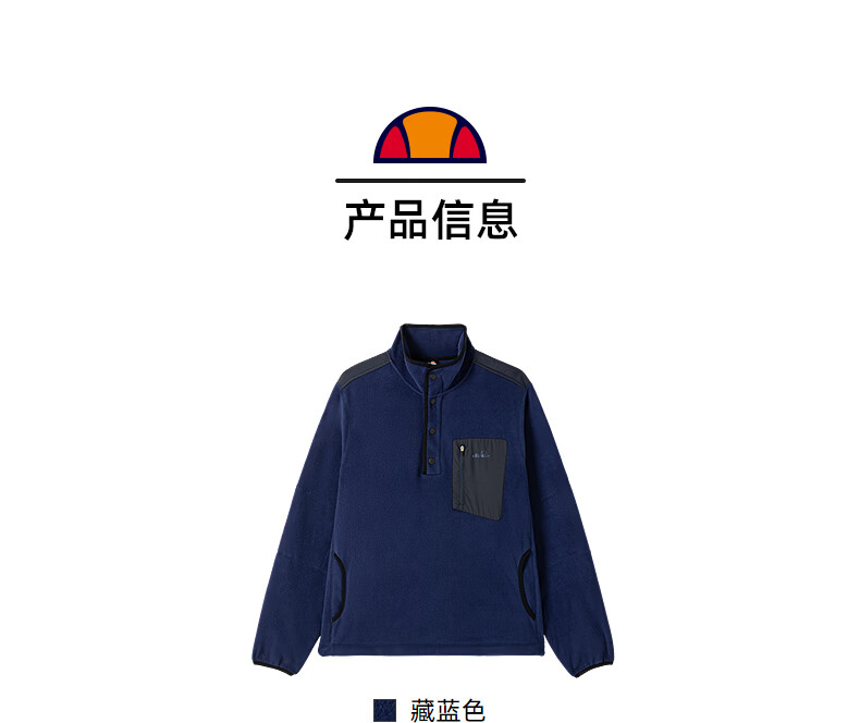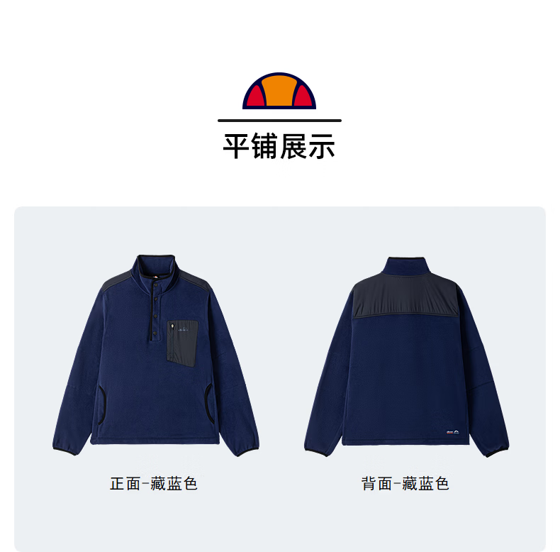 ellesse小贝壳官方运动卫衣男春季新款摇粒绒半拉链针织套头衫 藏蓝色 S