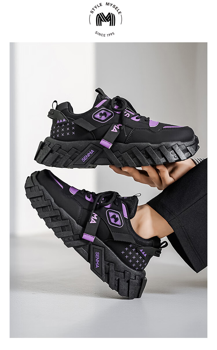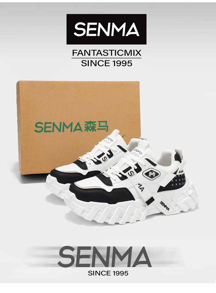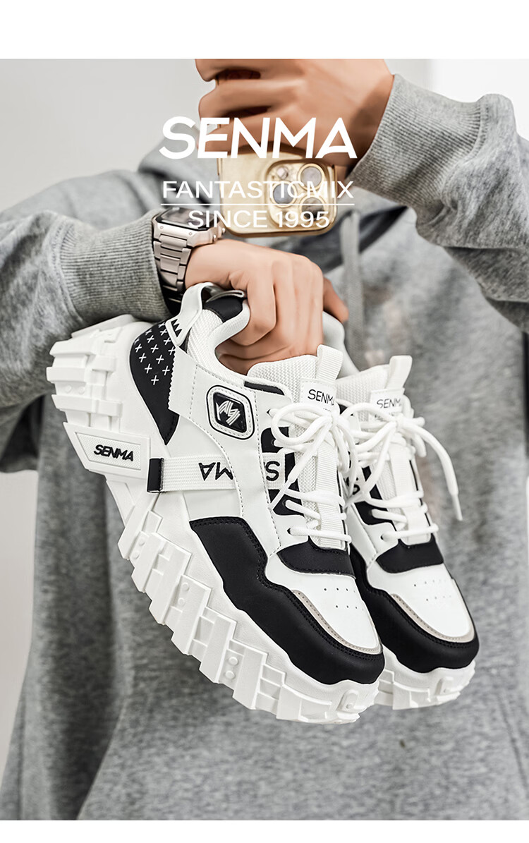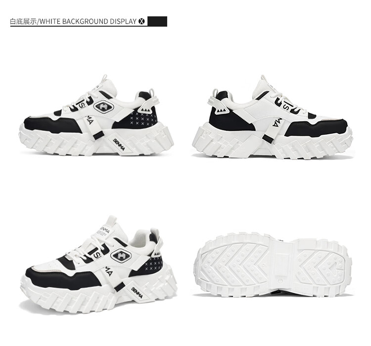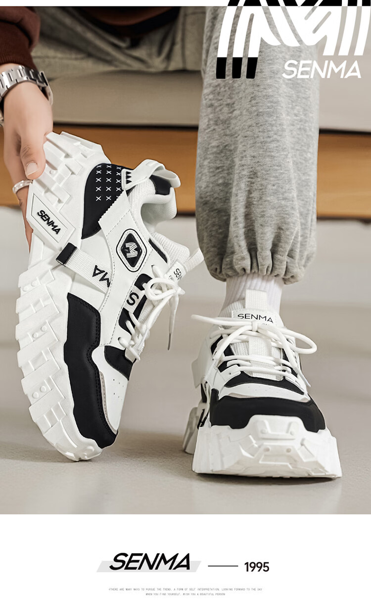 森馬网红爆款男鞋2026春季运动休闲跑步鞋男士厚底增高皮面百搭老爹鞋 白绿【基础款】 39 标准码数/现货秒发