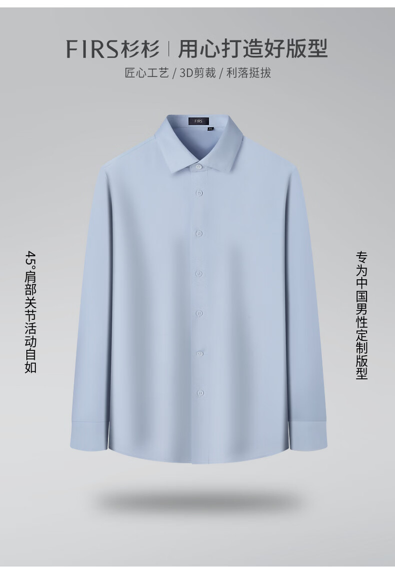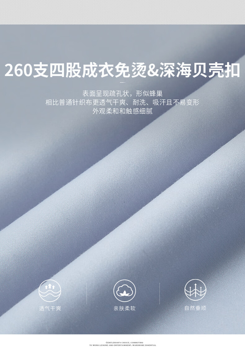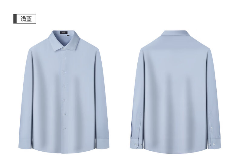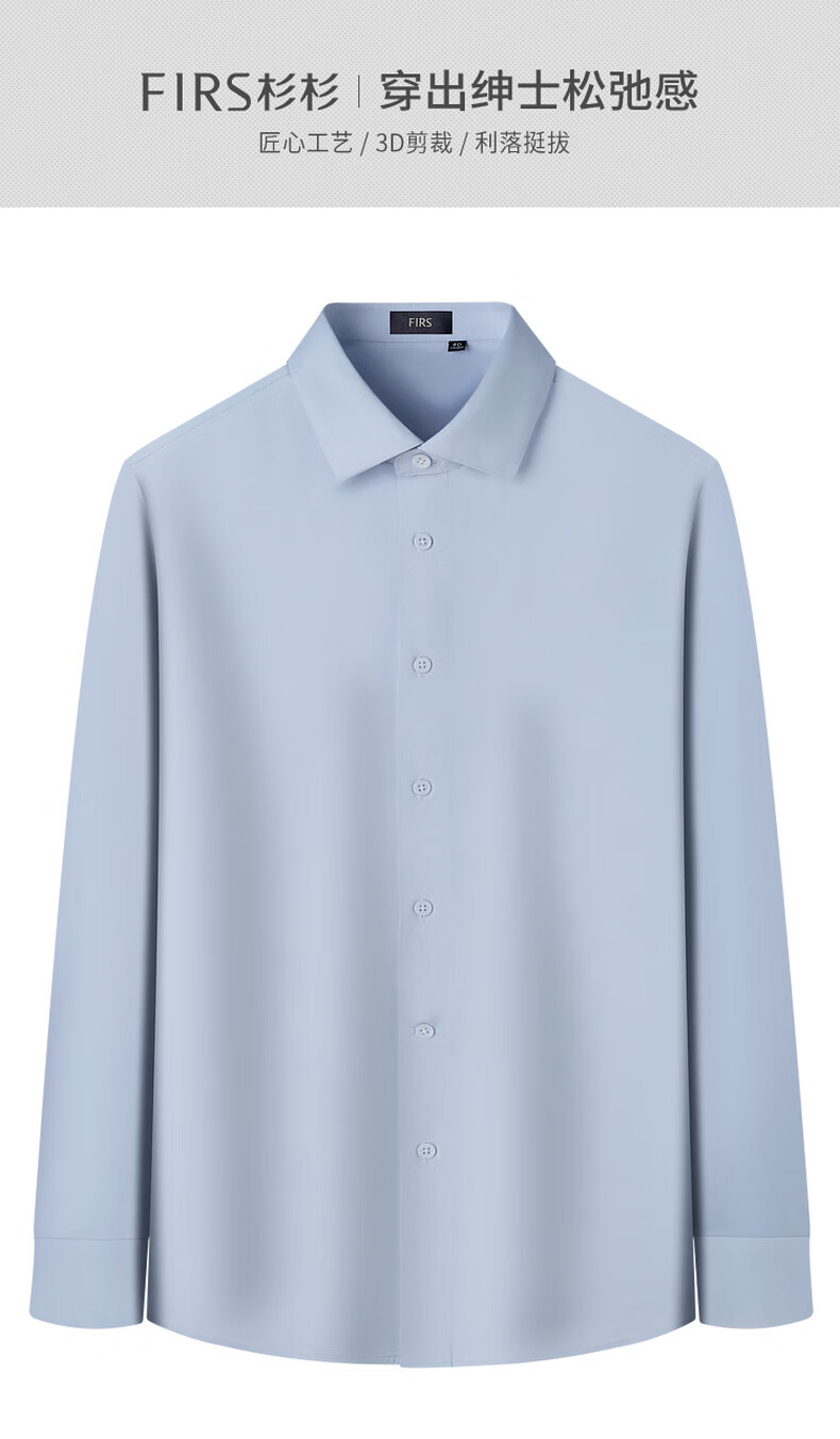 杉杉【260支四股成衣免烫 】春季纯棉高级易打理感商务休闲长袖衬衫男 浅蓝 39